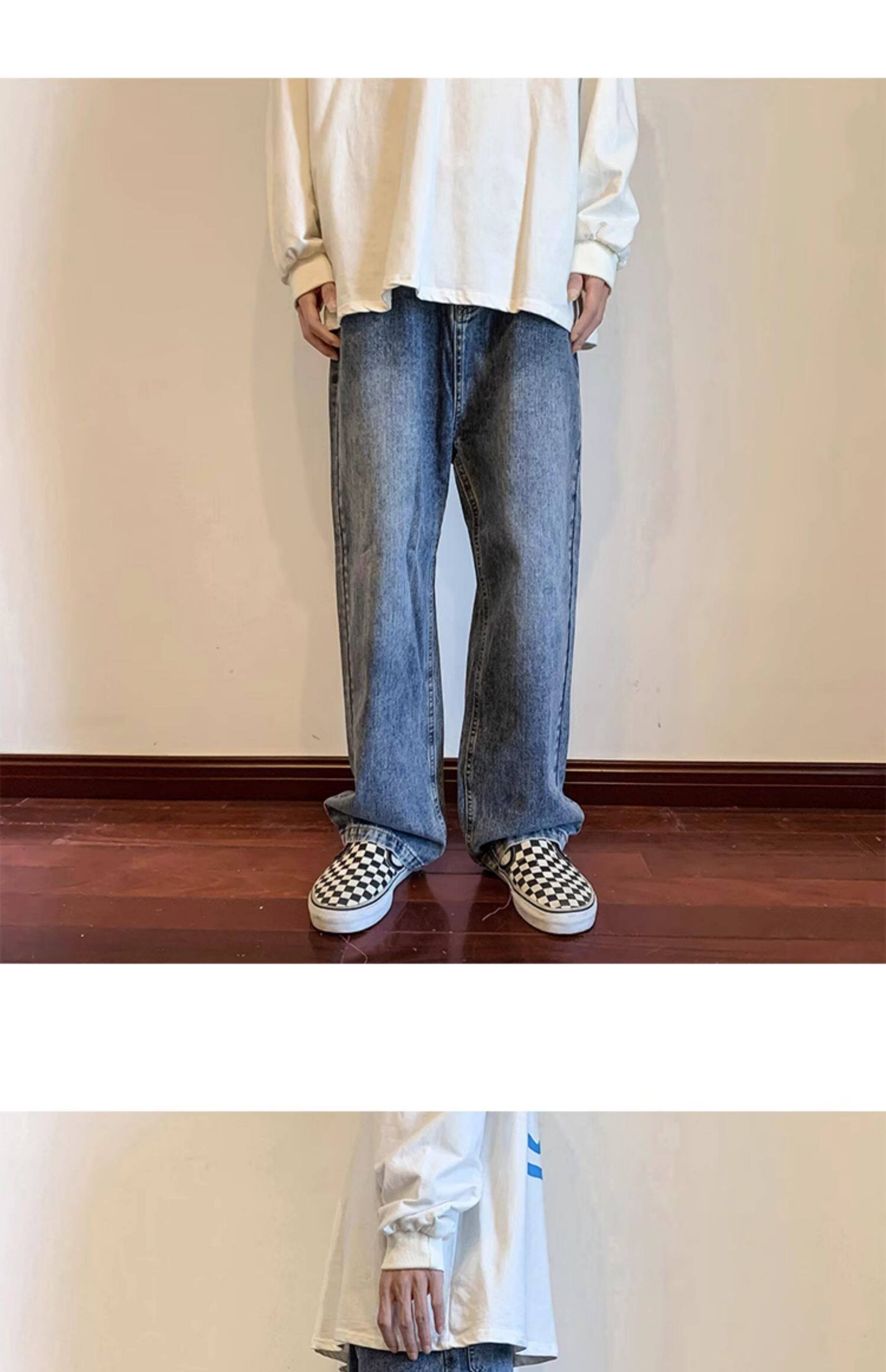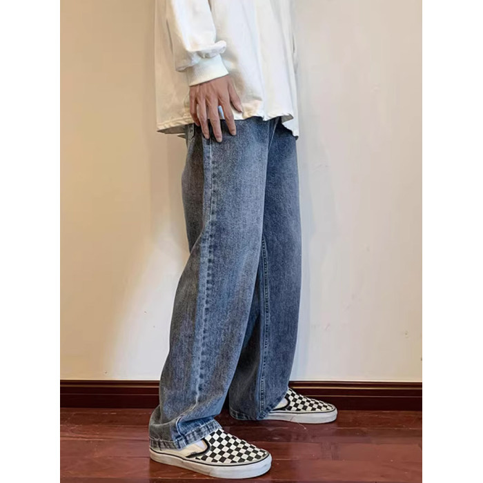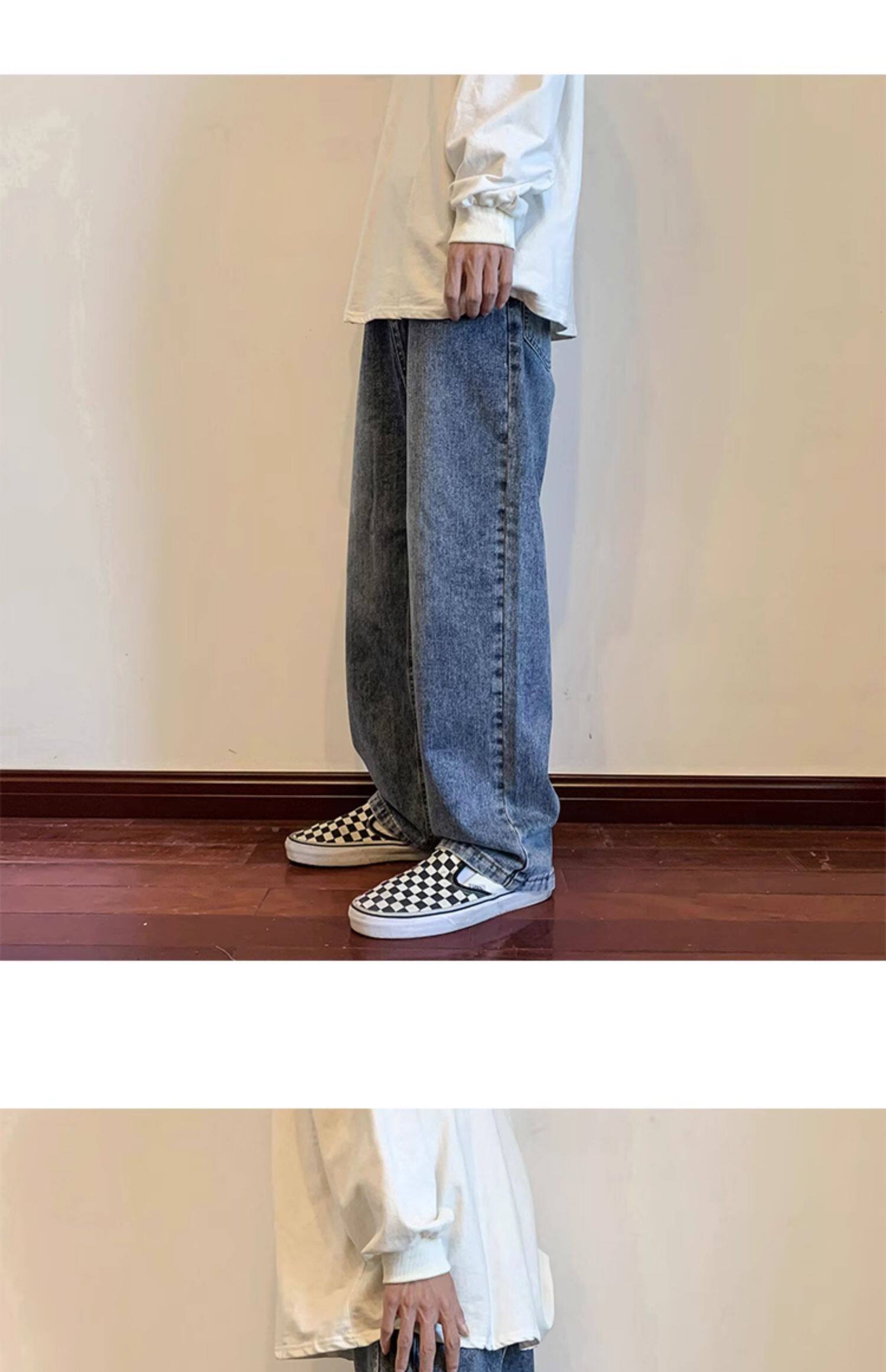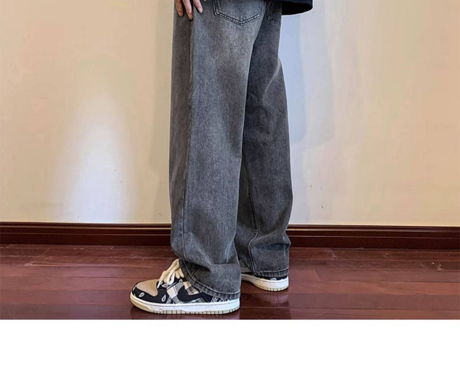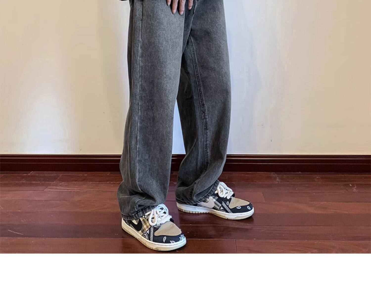 美式高街vibe黑色牛仔褲男款潮牌寬鬆水洗直筒褲冬季濶腿拖地長褲