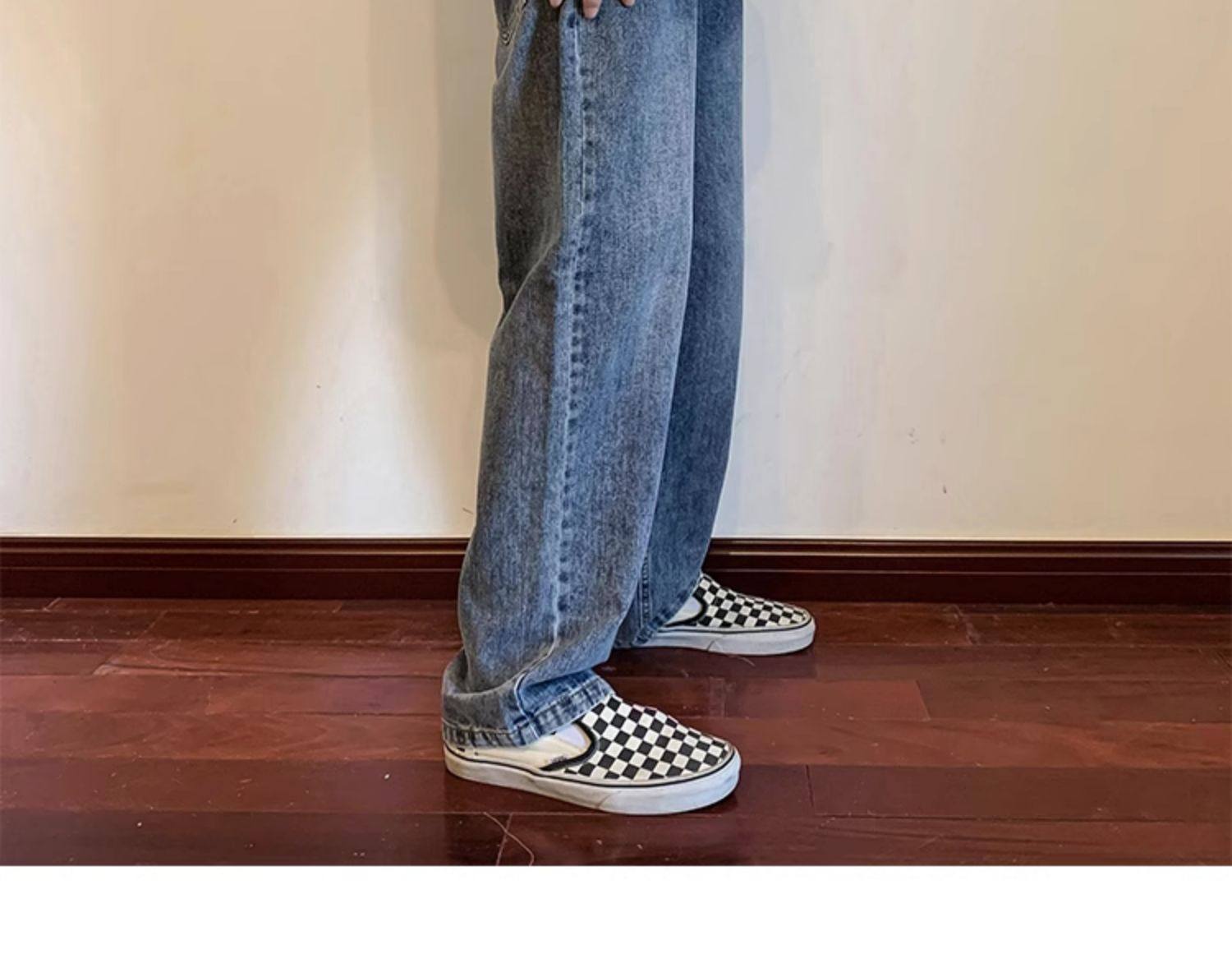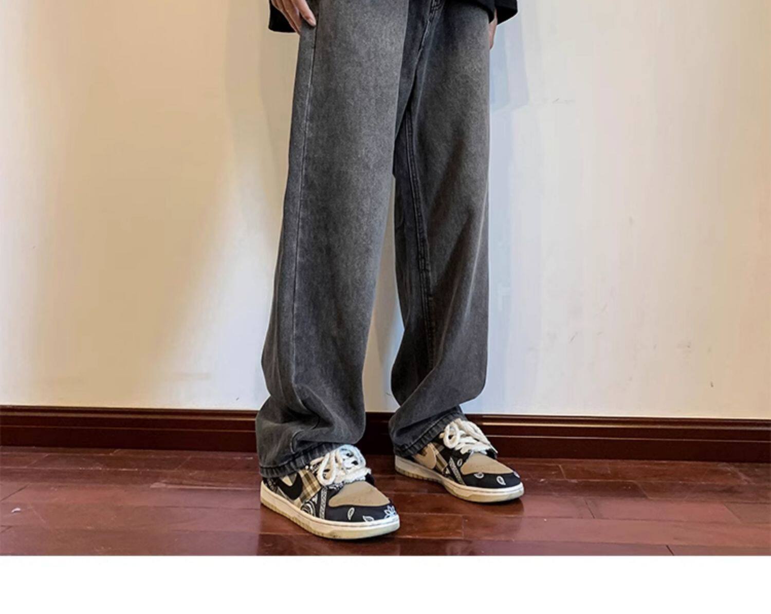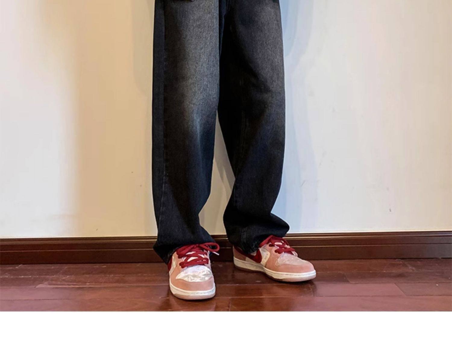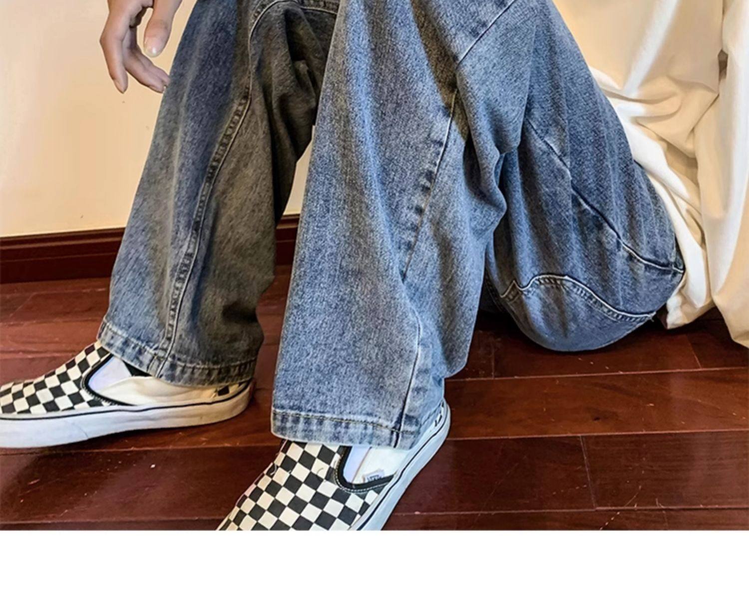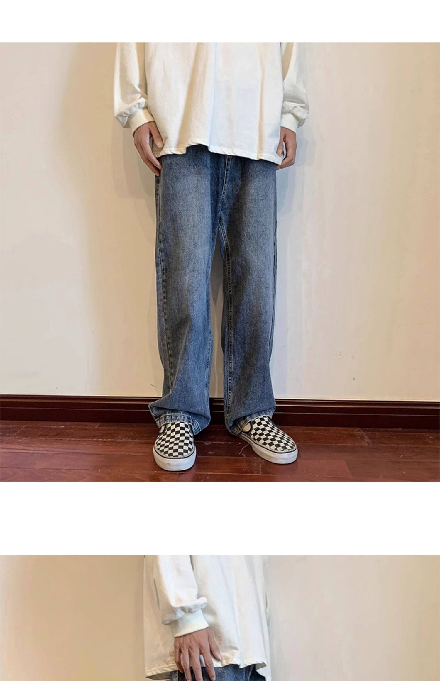 美式高街vibe黑色牛仔褲男款潮牌寬鬆水洗直筒褲冬季濶腿拖地長褲