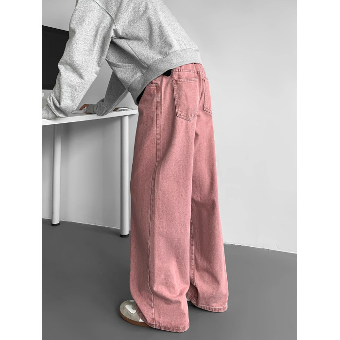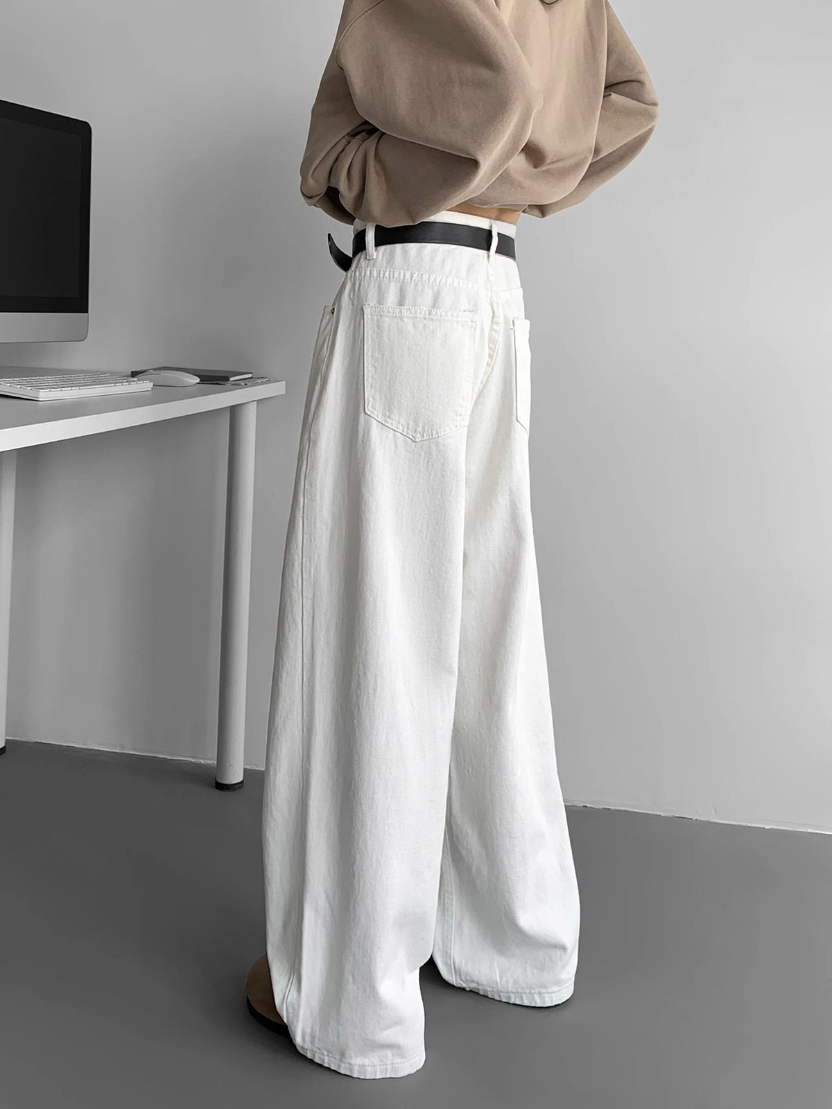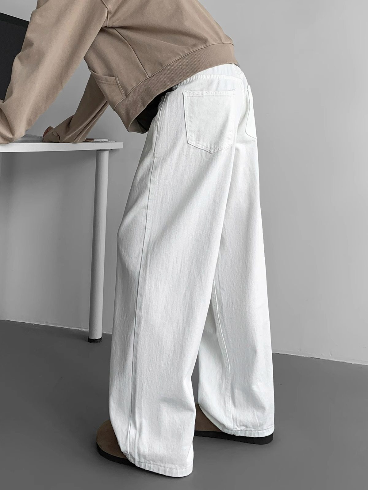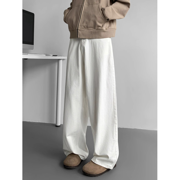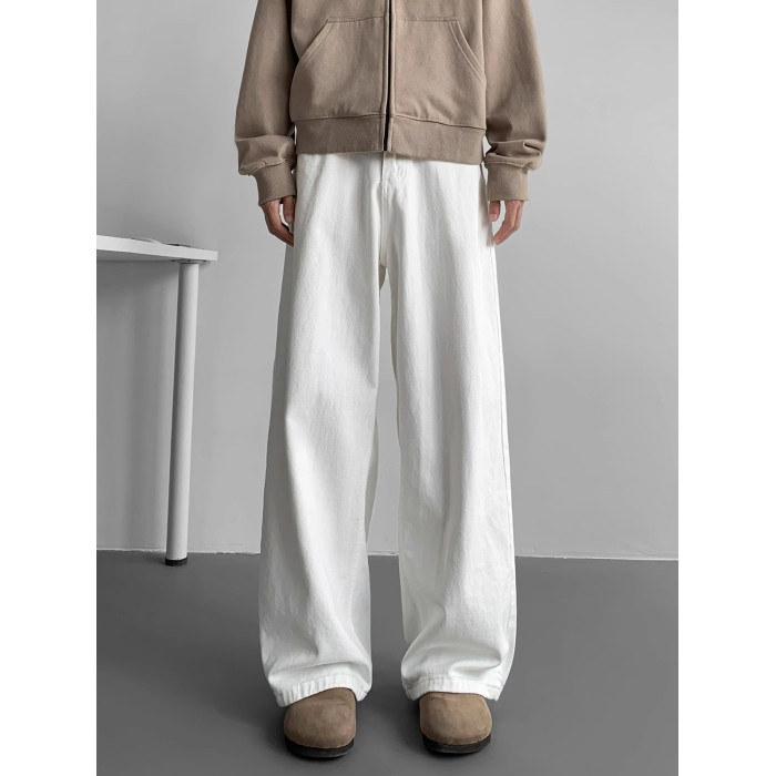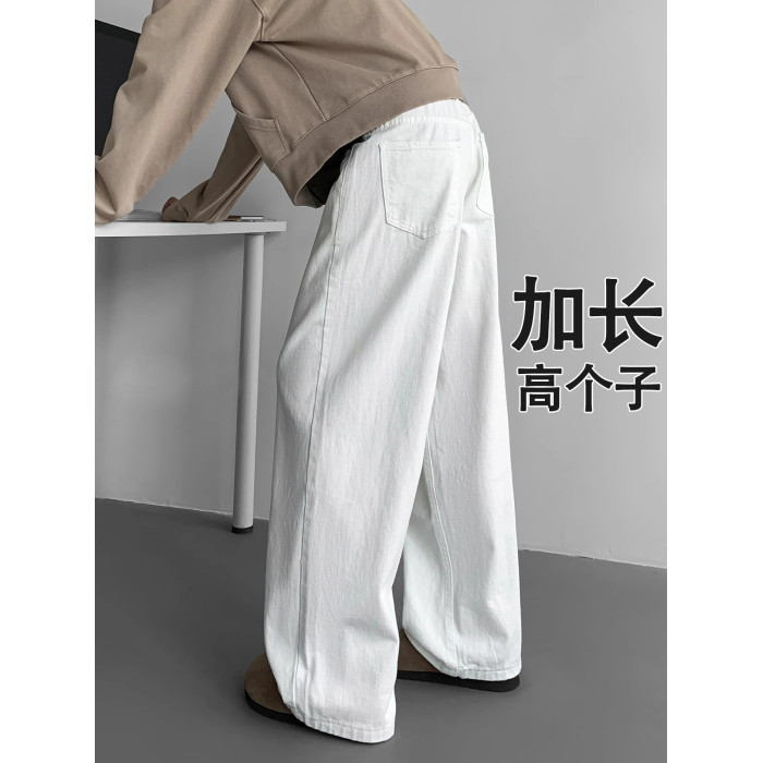 加長白色牛仔褲男高個子純色褲子男士秋季垂感加絨休閒褲大碼寬鬆