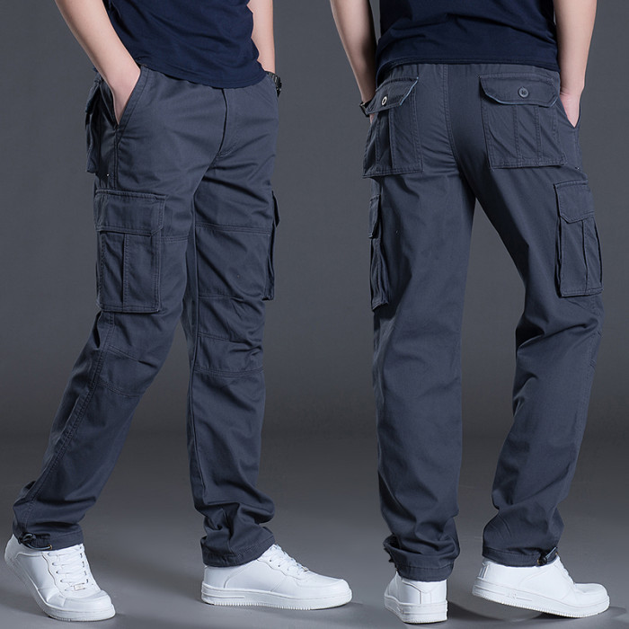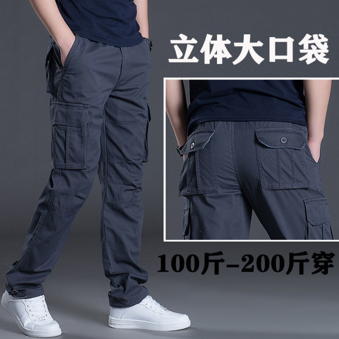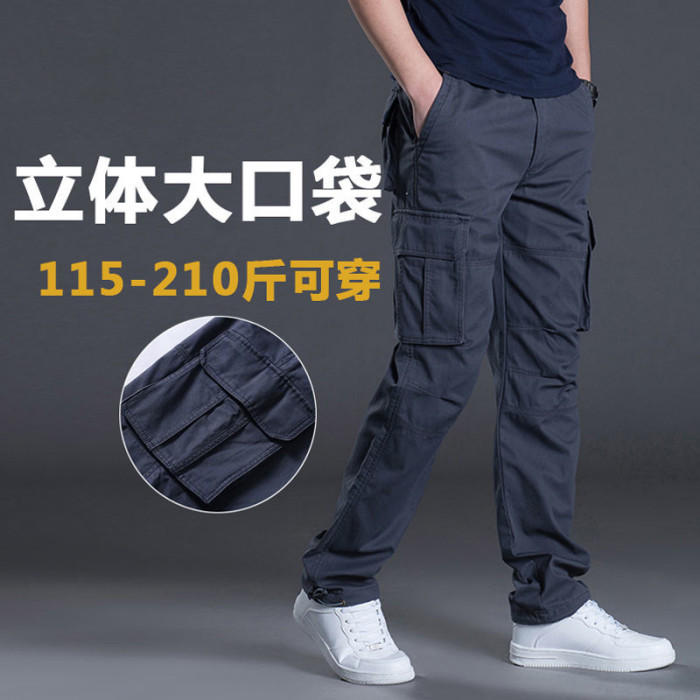 純棉工裝褲男褲子休閒工作服戶外耐磨直筒寬鬆春秋厚款多口袋長褲