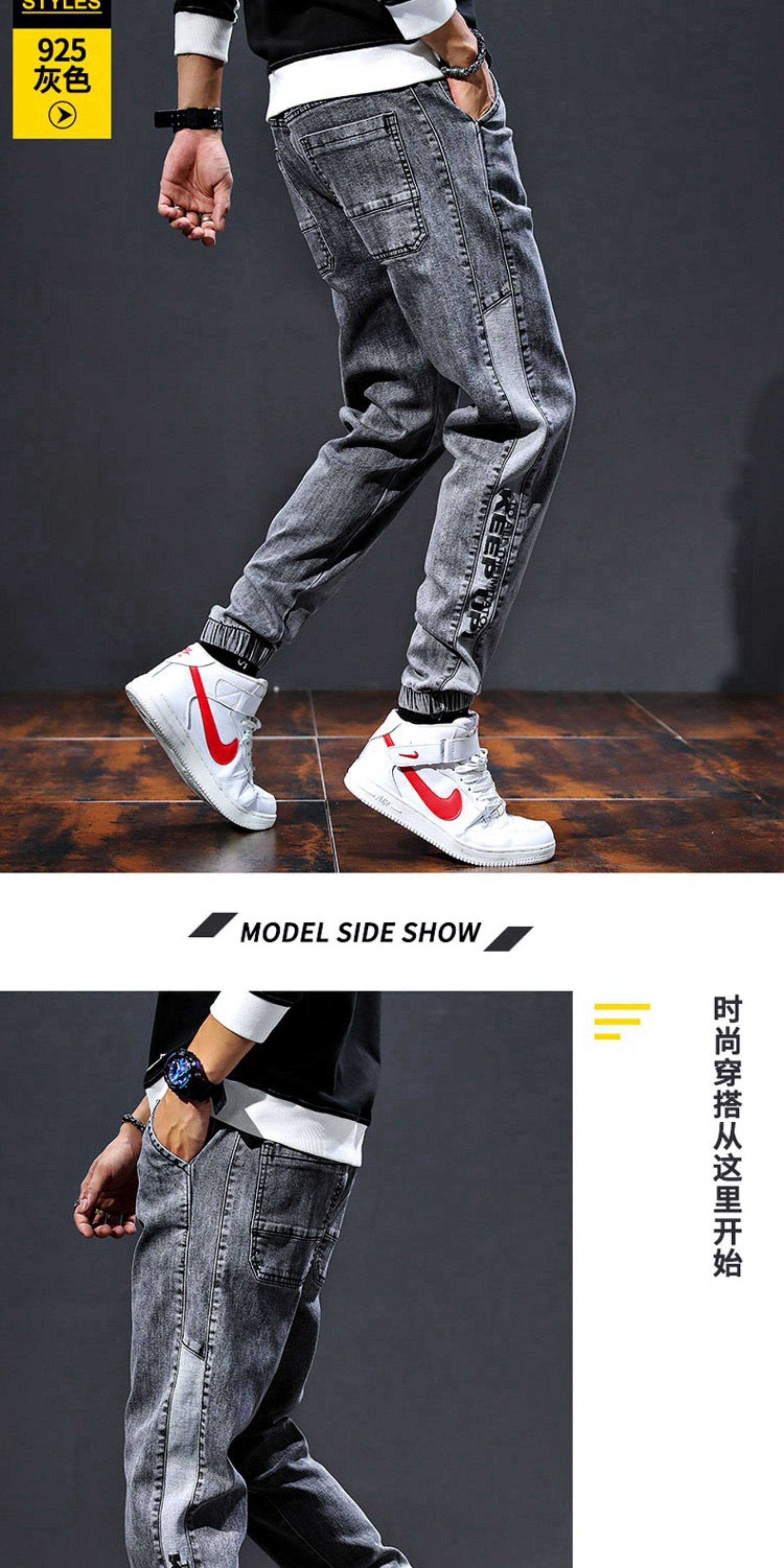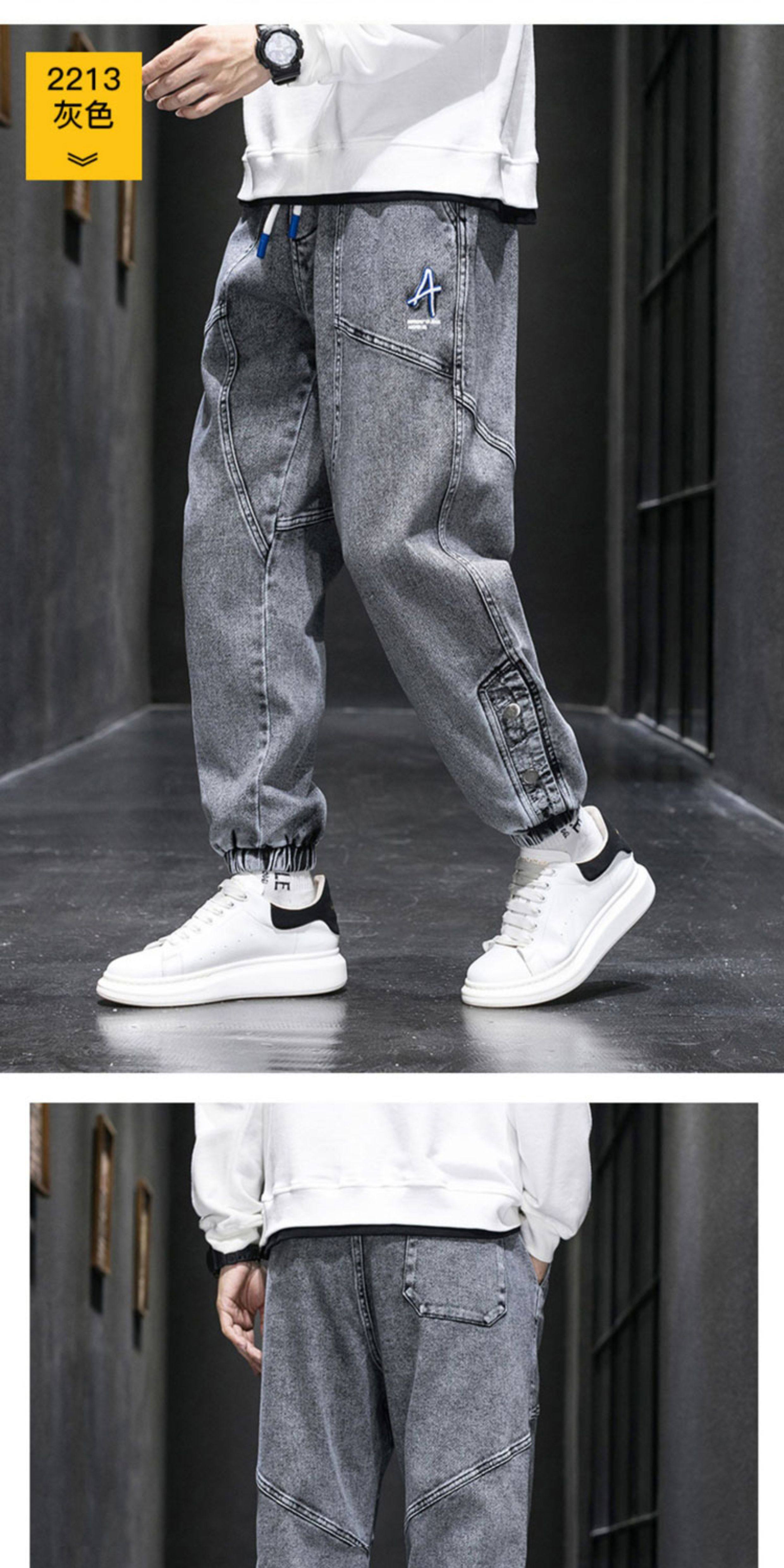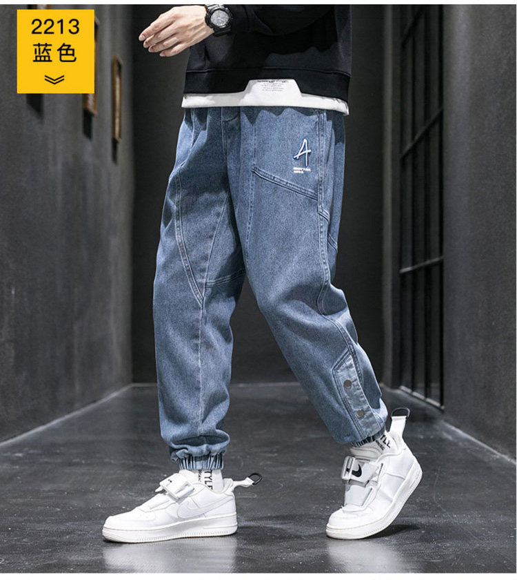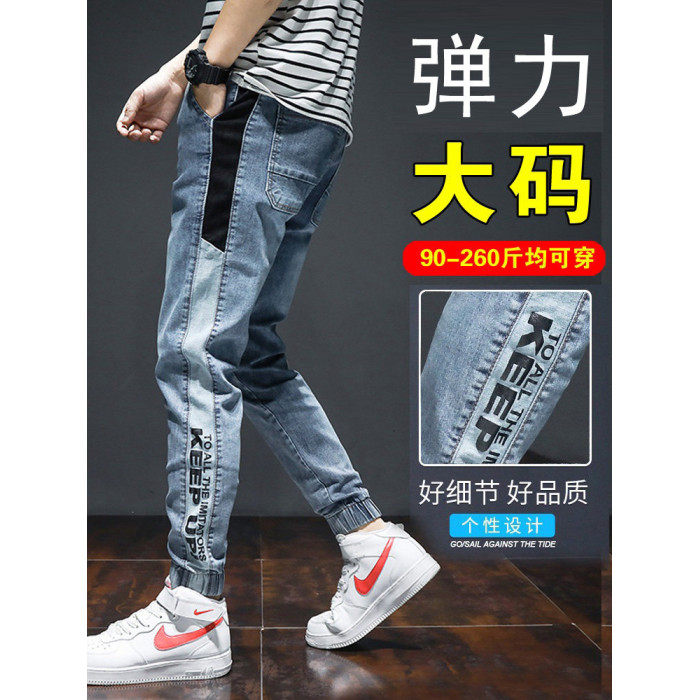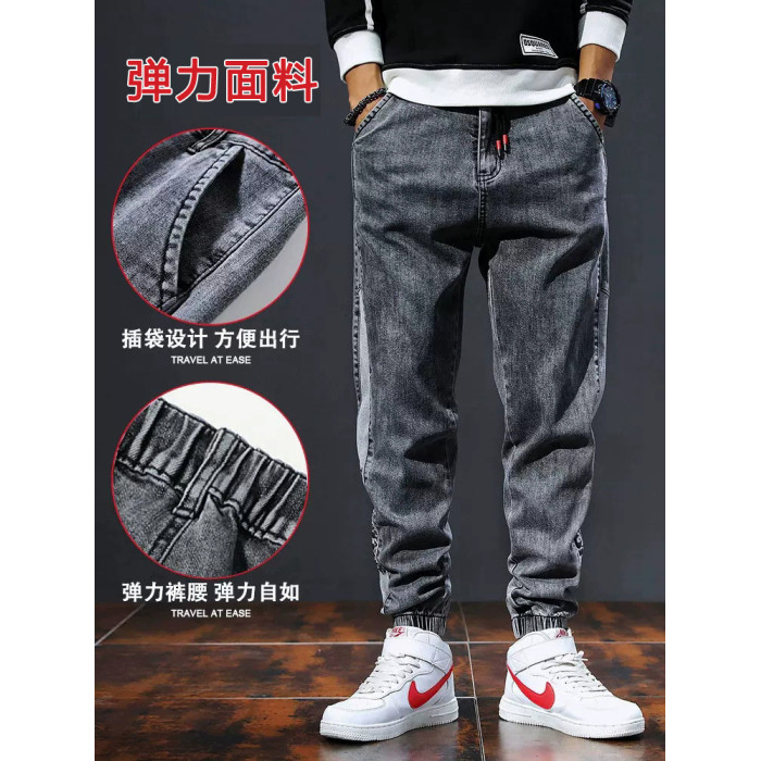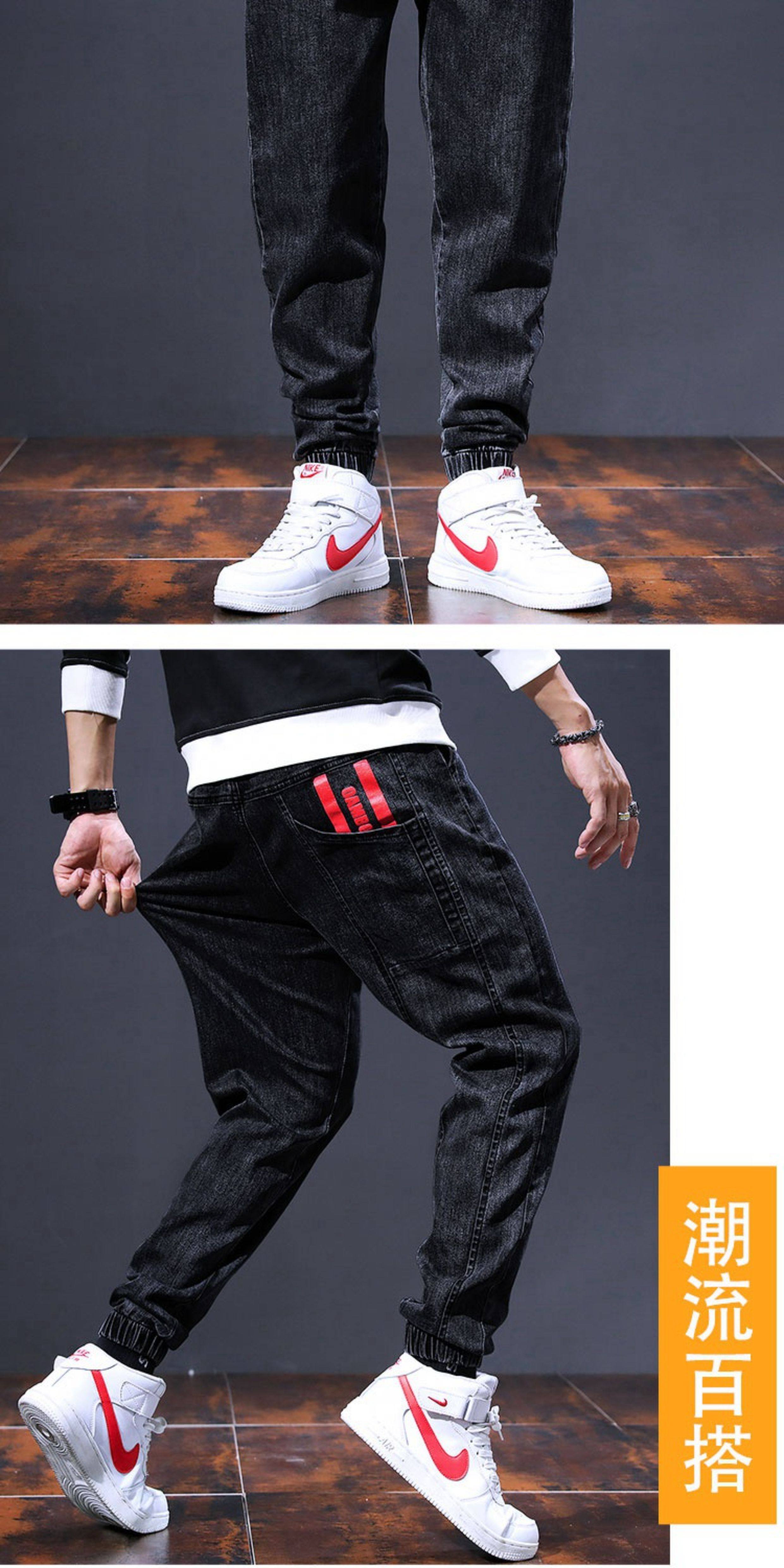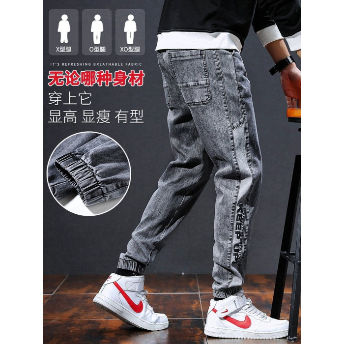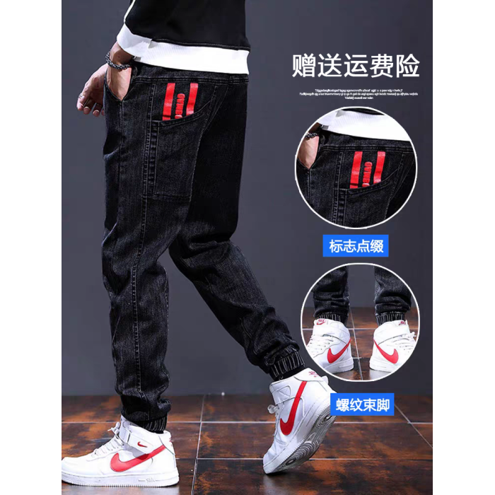 大碼男褲子2026新款牛仔褲男冬季加肥加大寬鬆胖子束腳工裝哈倫褲