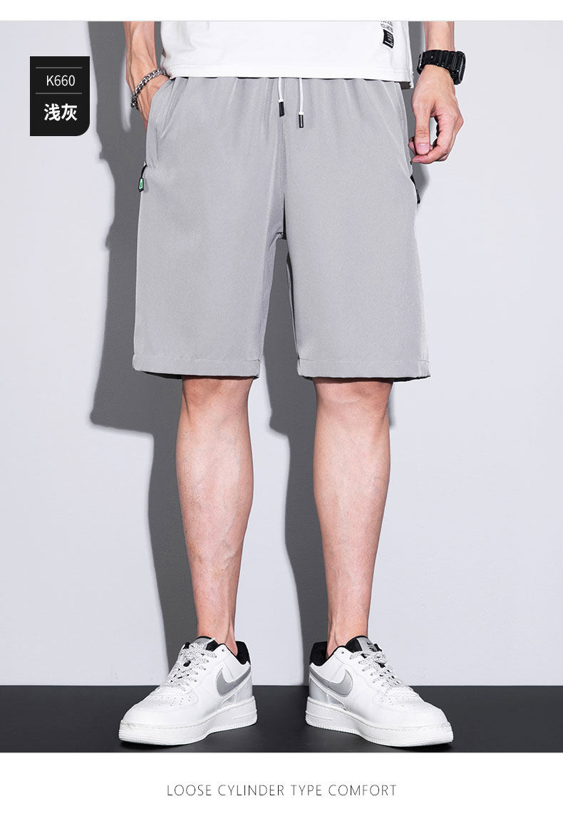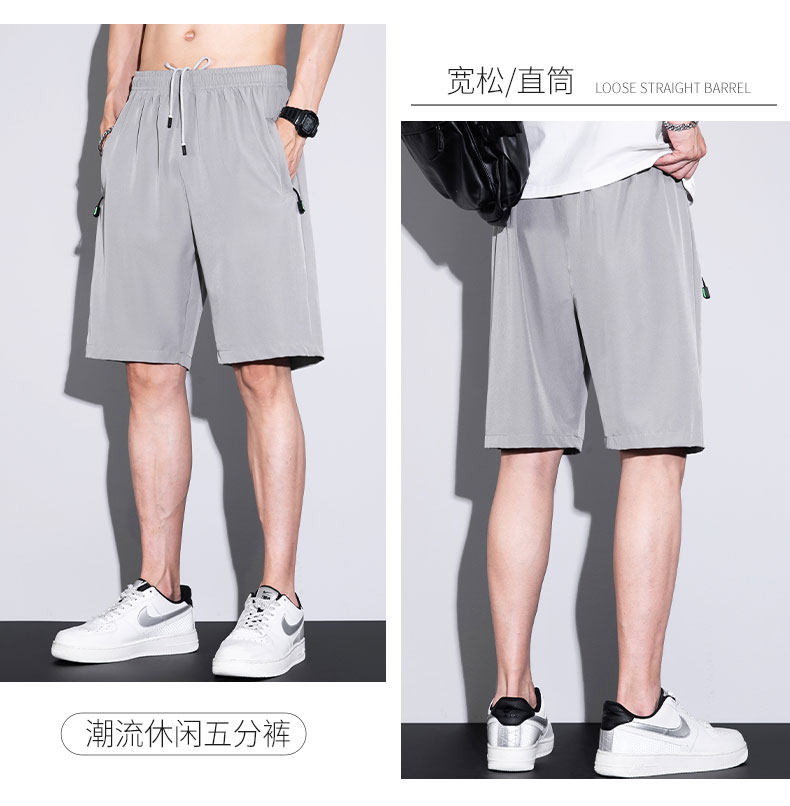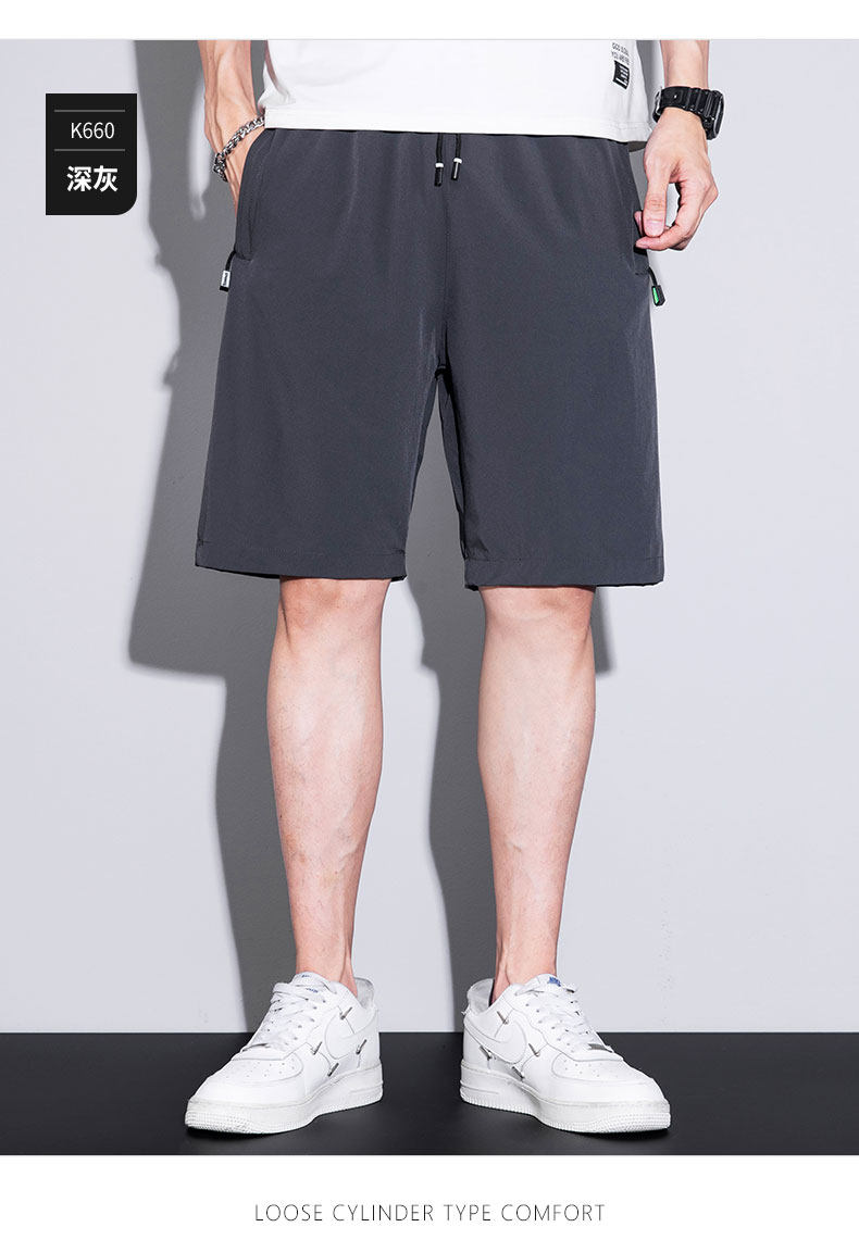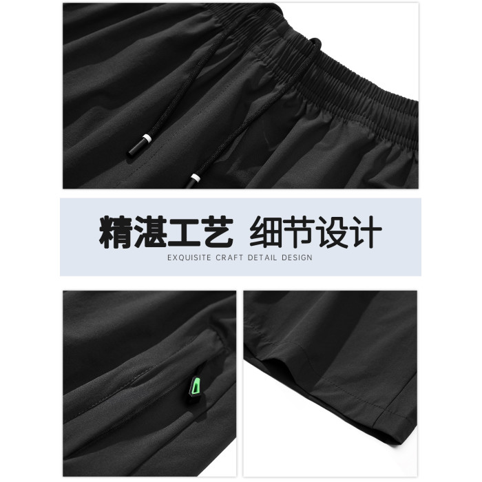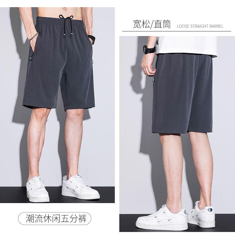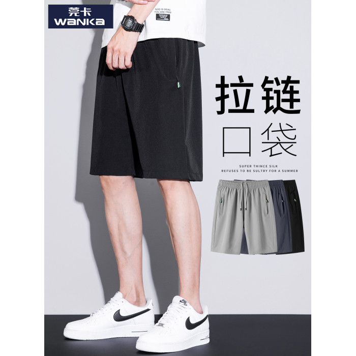 五分短褲子男口袋拉鍊可放手機夏季薄款寬鬆男士跑步速乾休閒中褲