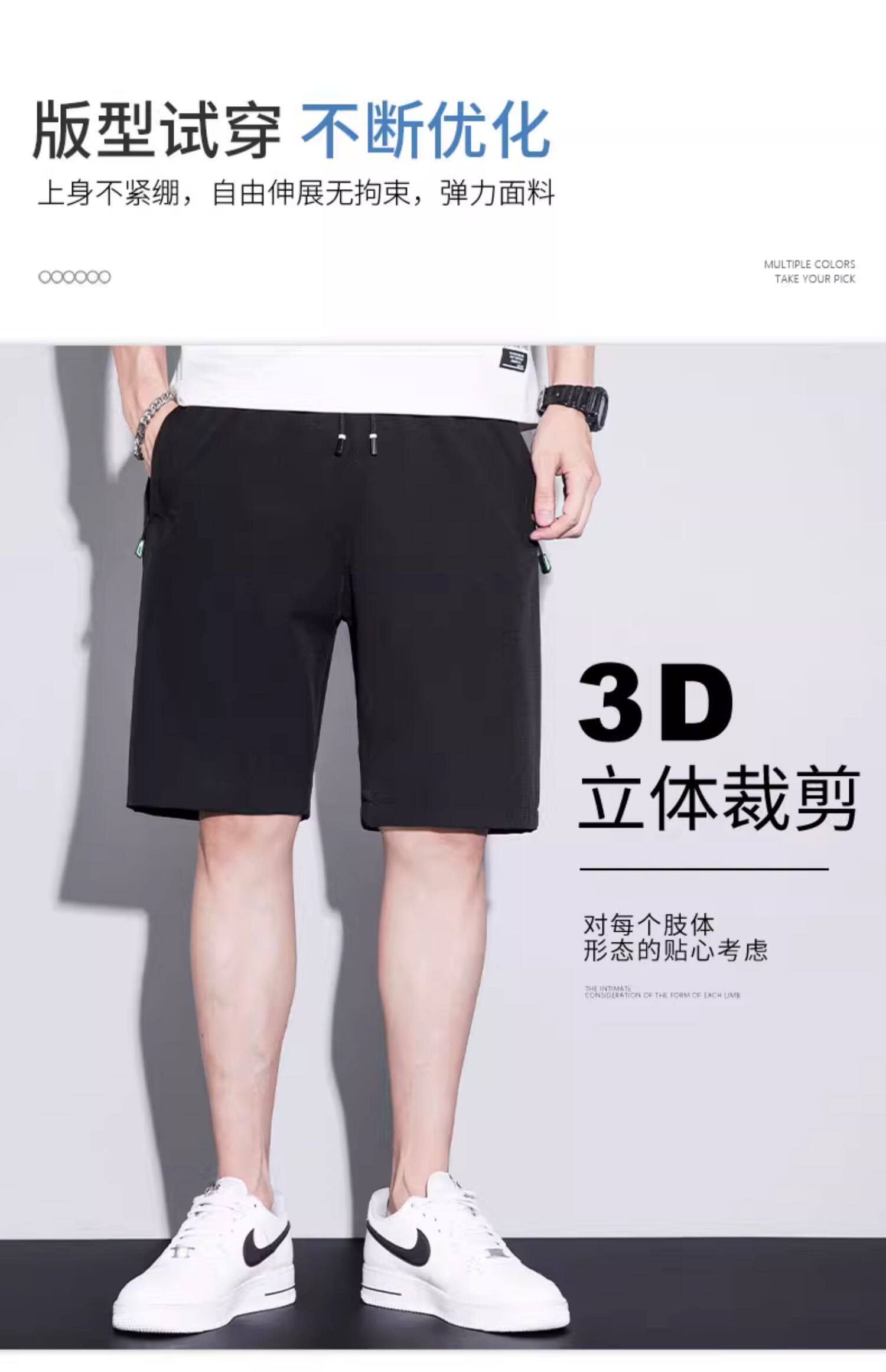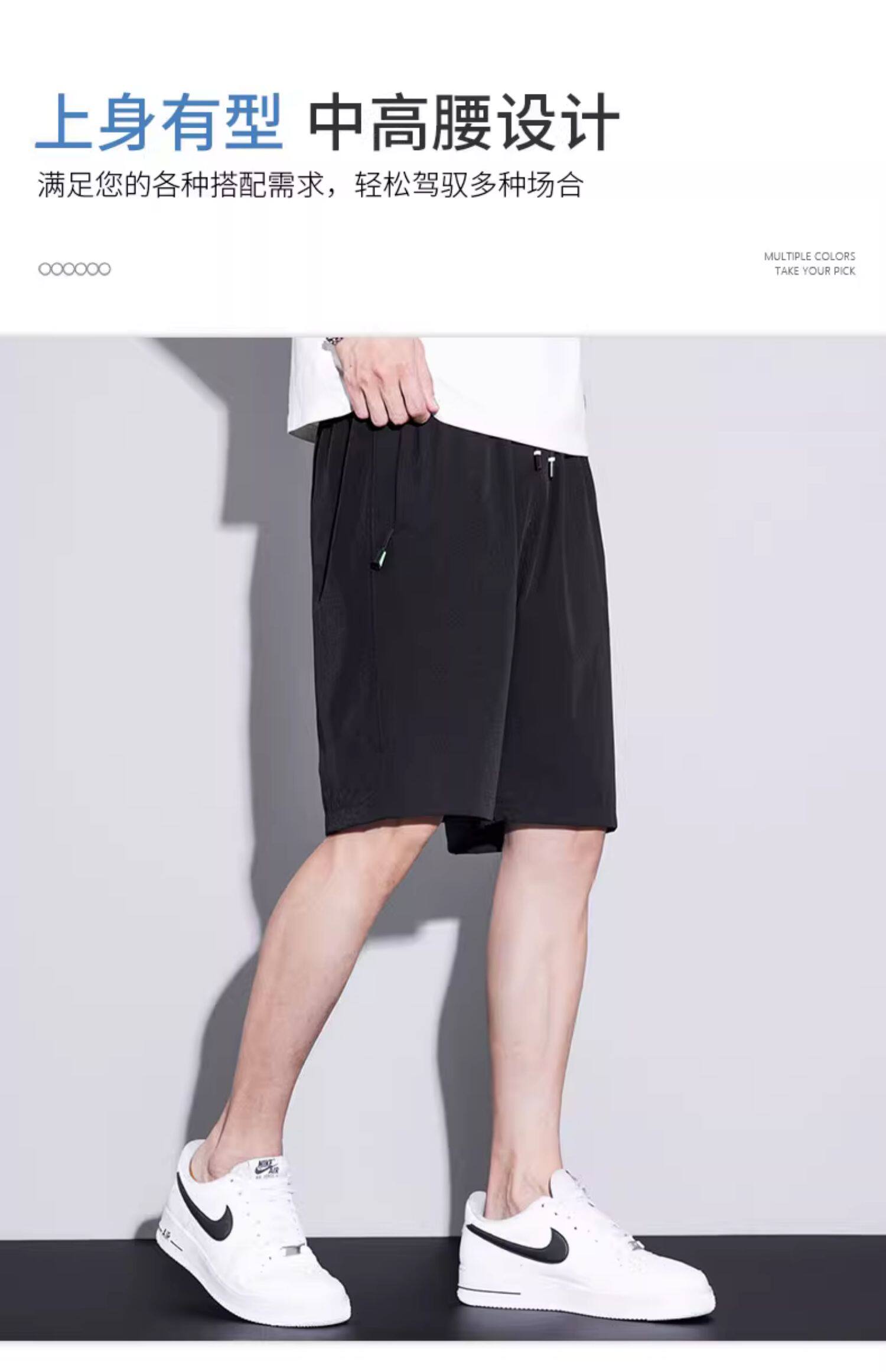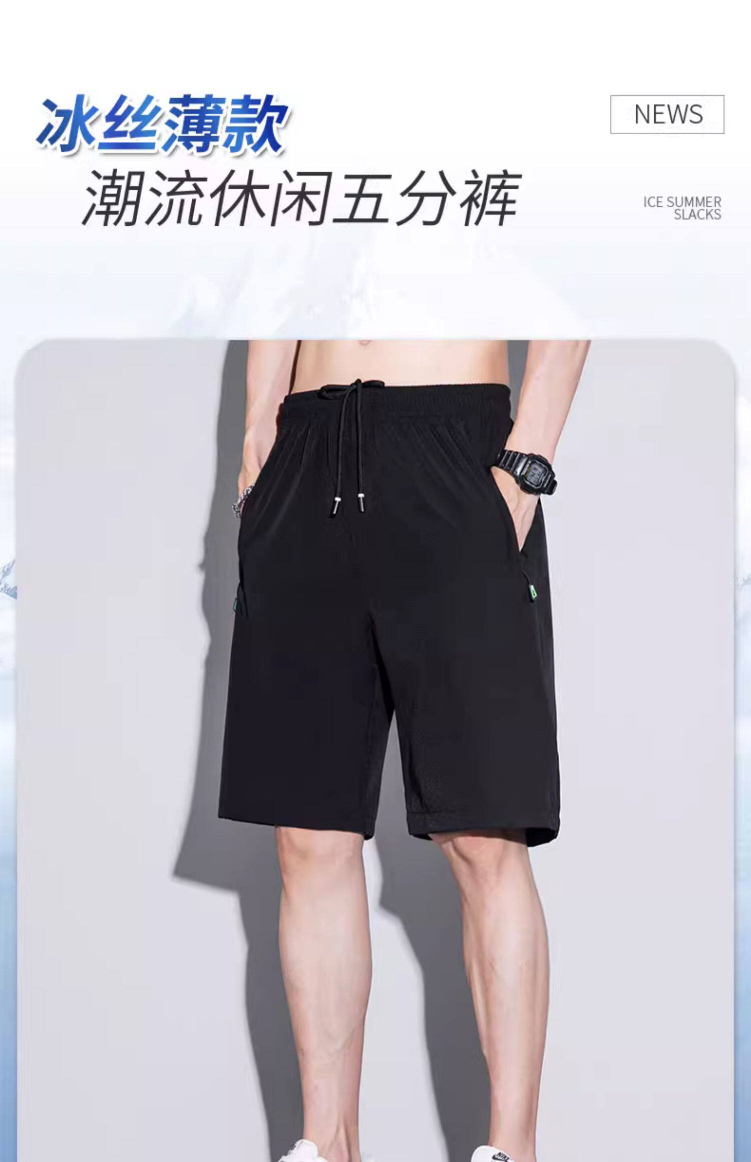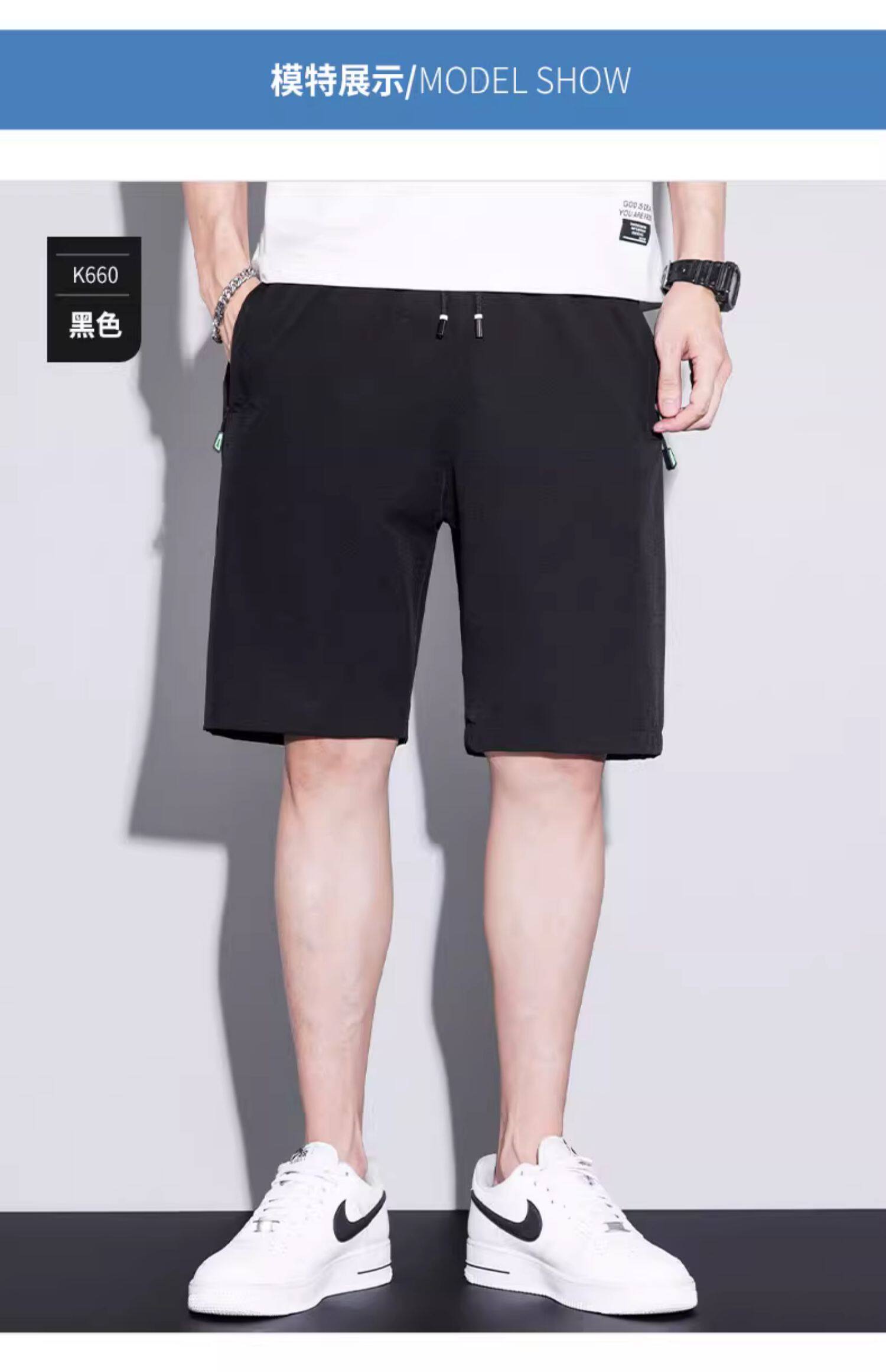 五分短褲子男口袋拉鍊可放手機夏季薄款寬鬆男士跑步速乾休閒中褲