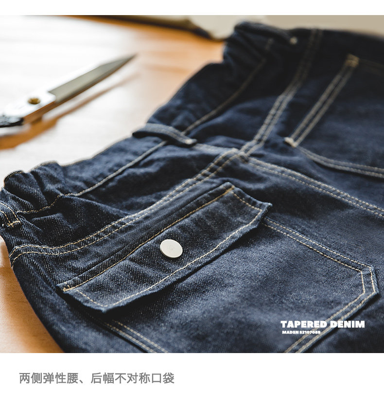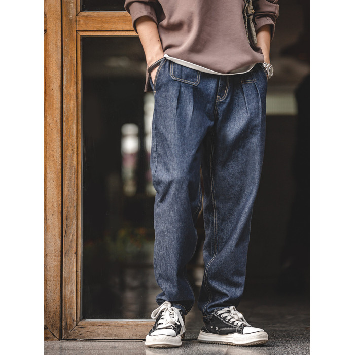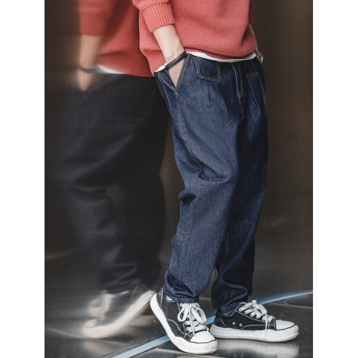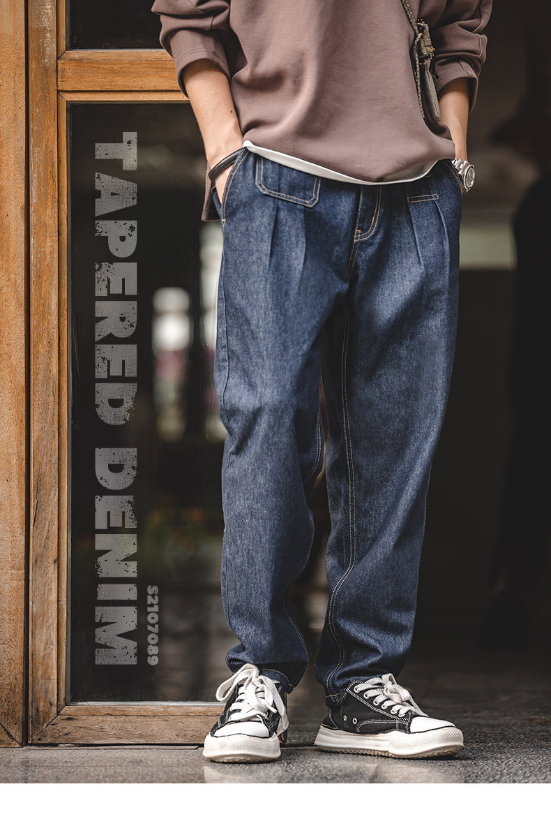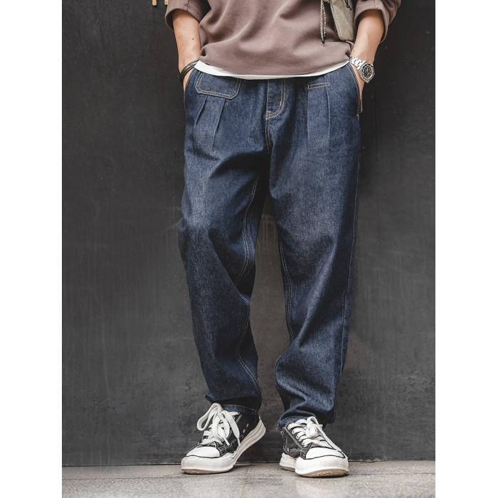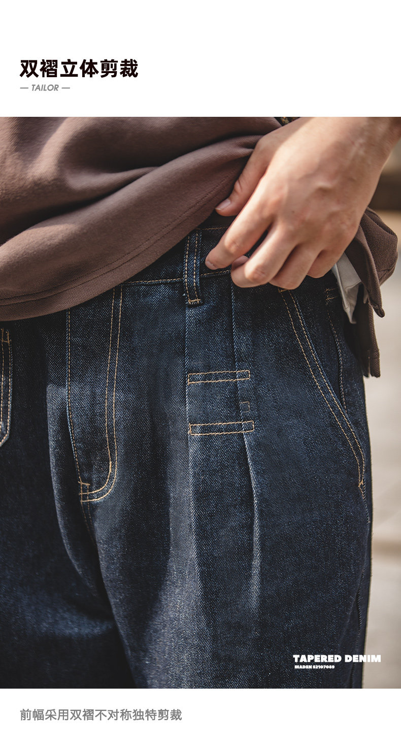 馬登工裝美式復古丹甯水洗牛仔褲直筒中腰錐形寬鬆哈倫長褲子男春
