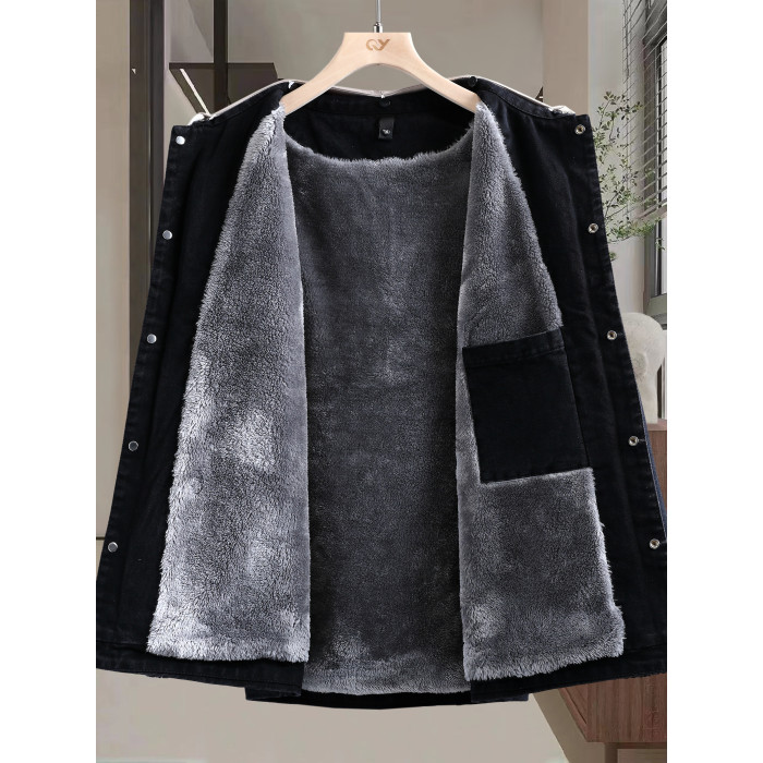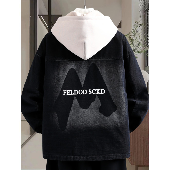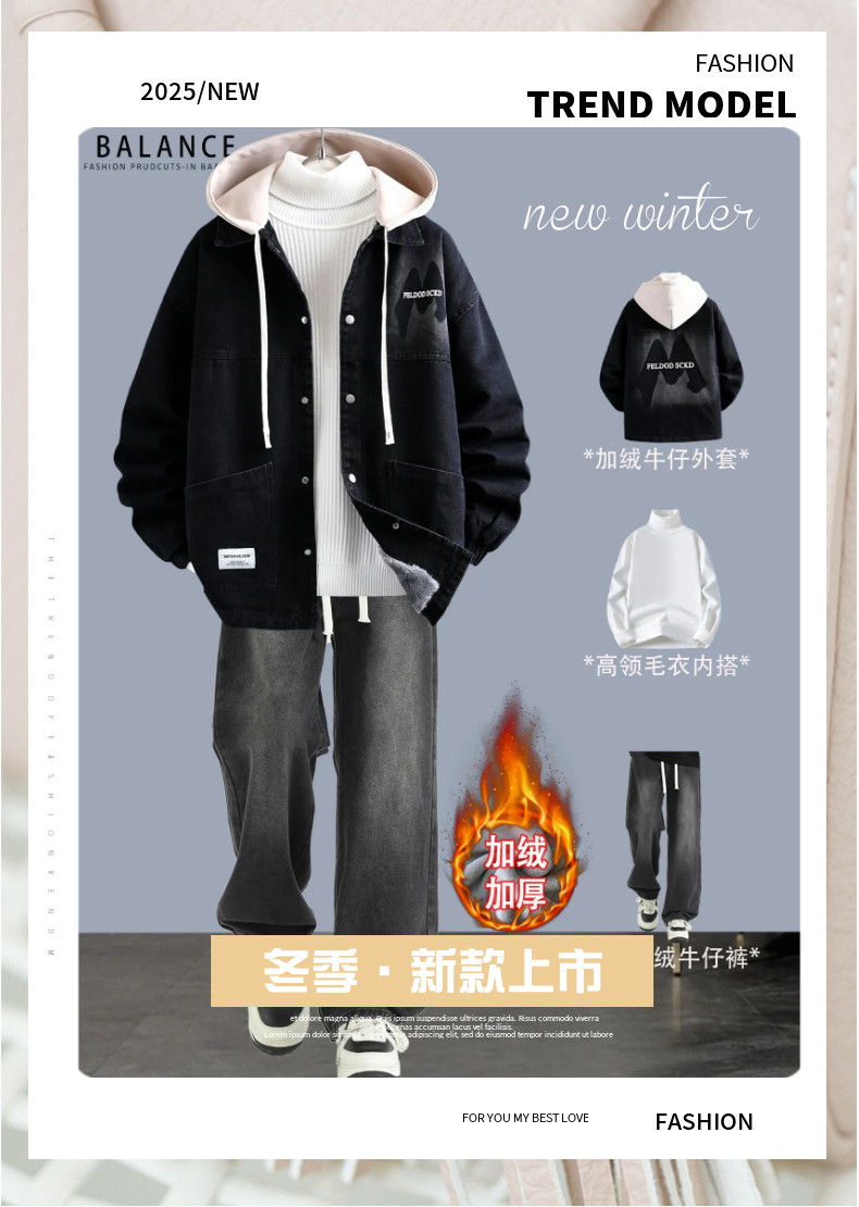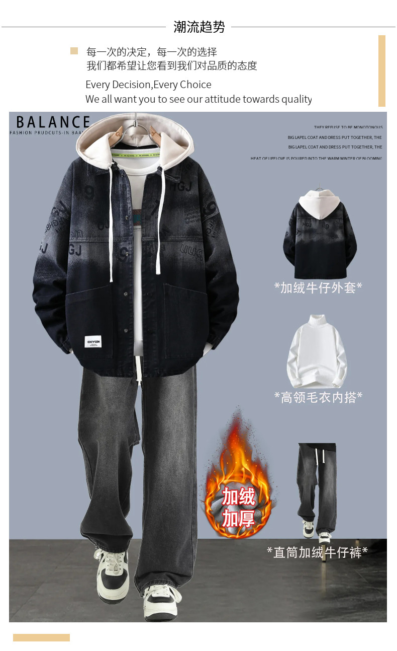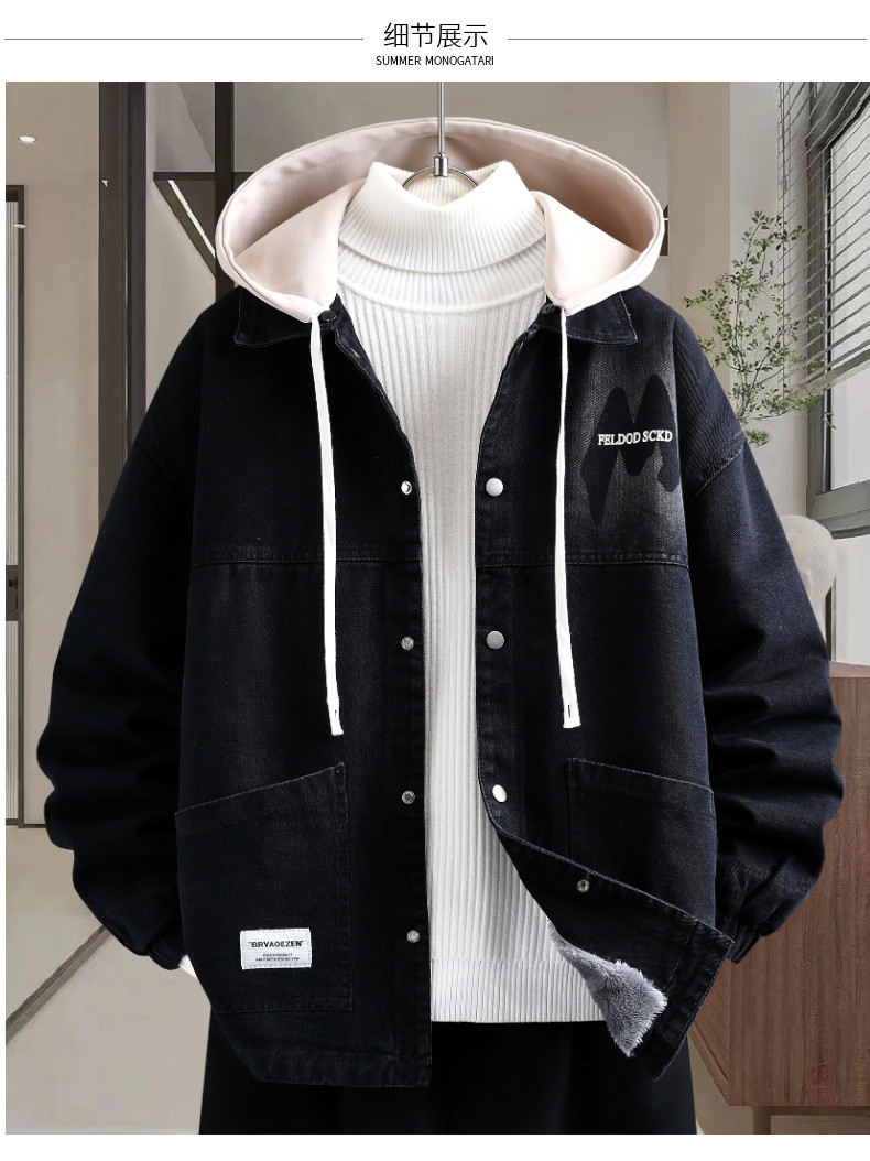 冬季加絨加厚牛仔外套男孩青少年連帽夾克帥氣潮流套裝初高中學生