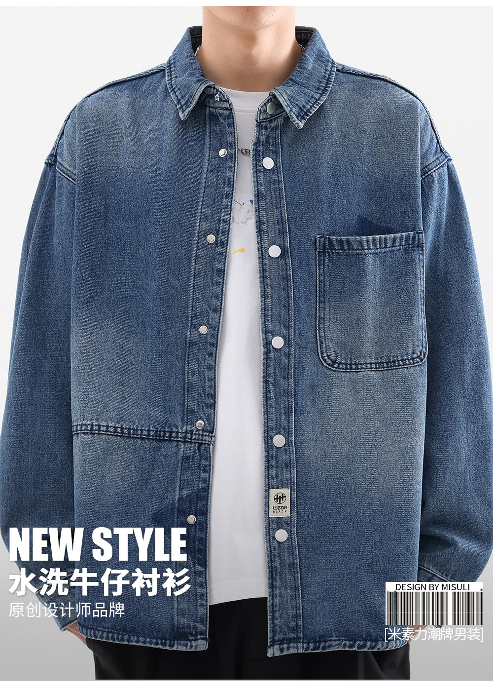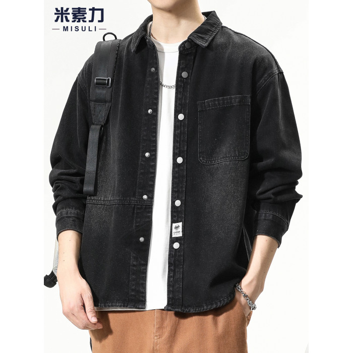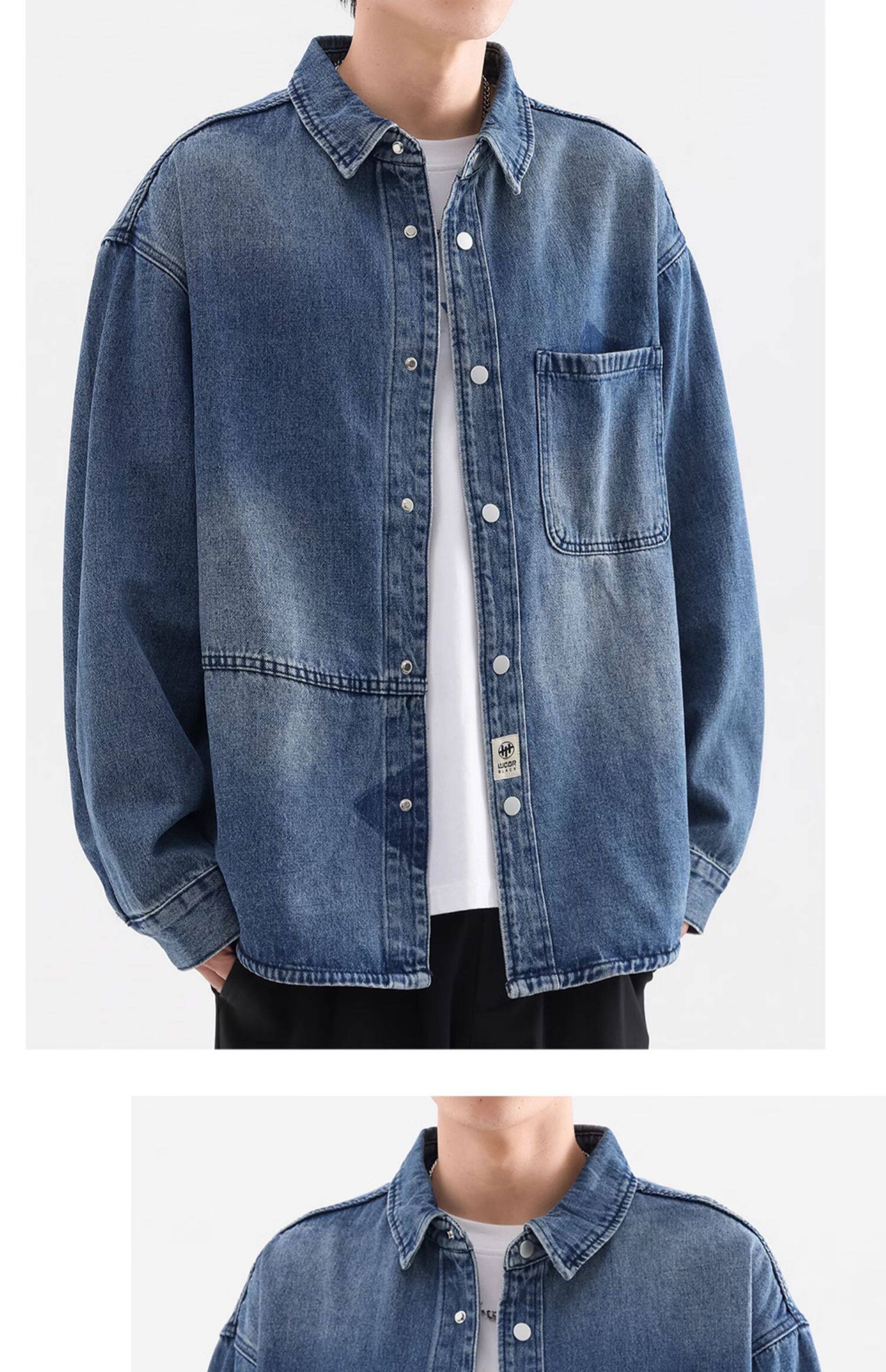 牛仔襯衫男長袖高級感重磅水洗復古2025新款日系潮牌襯衣夾克外套