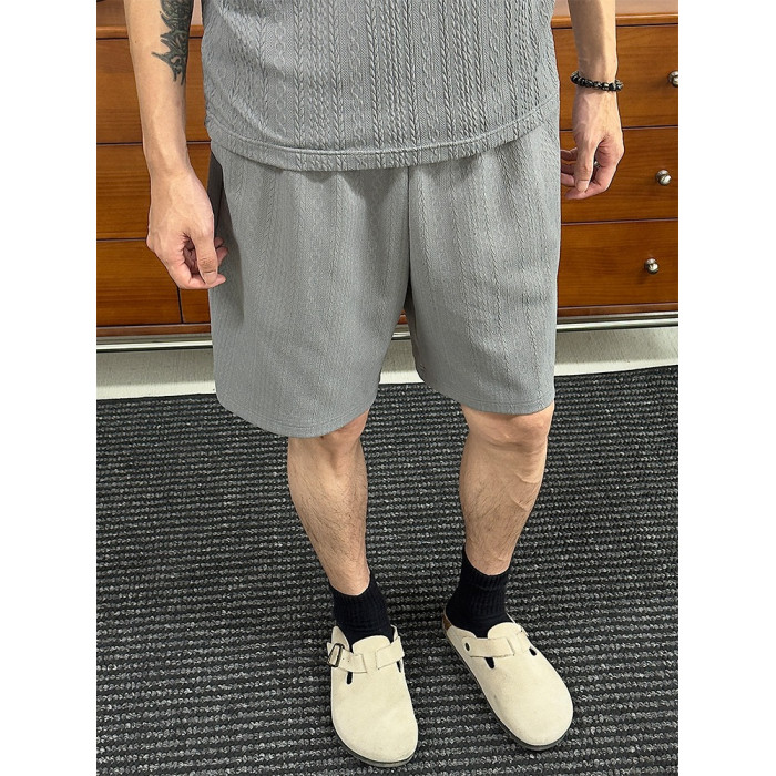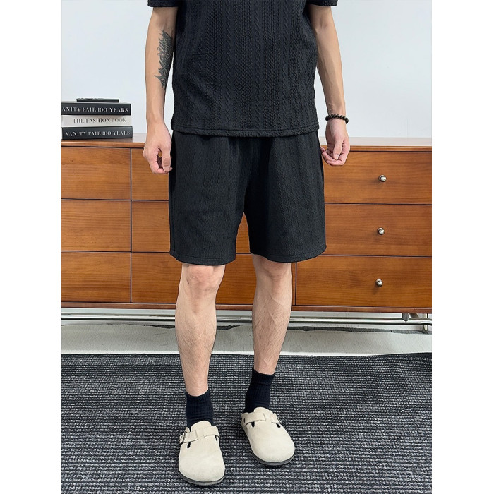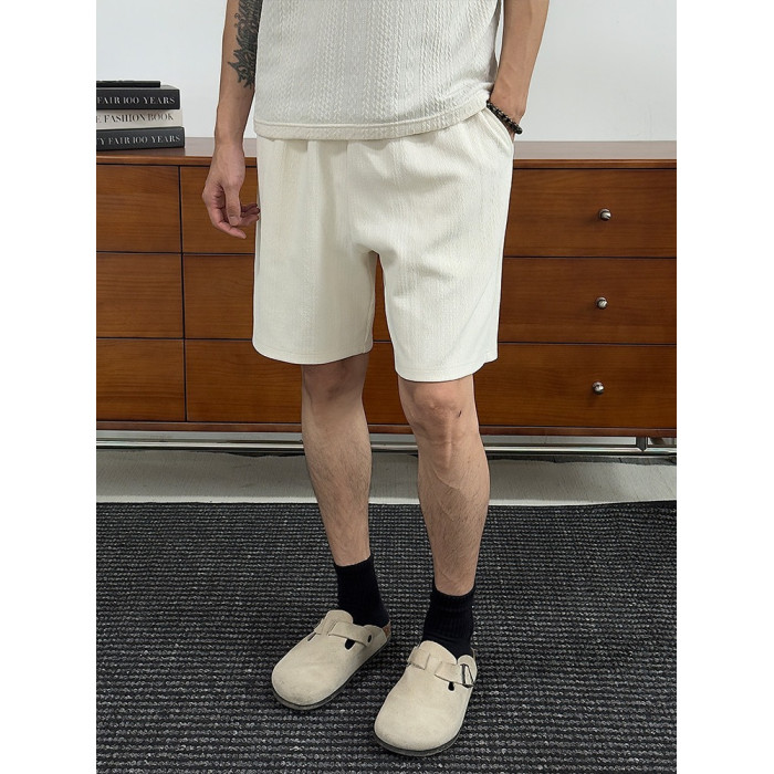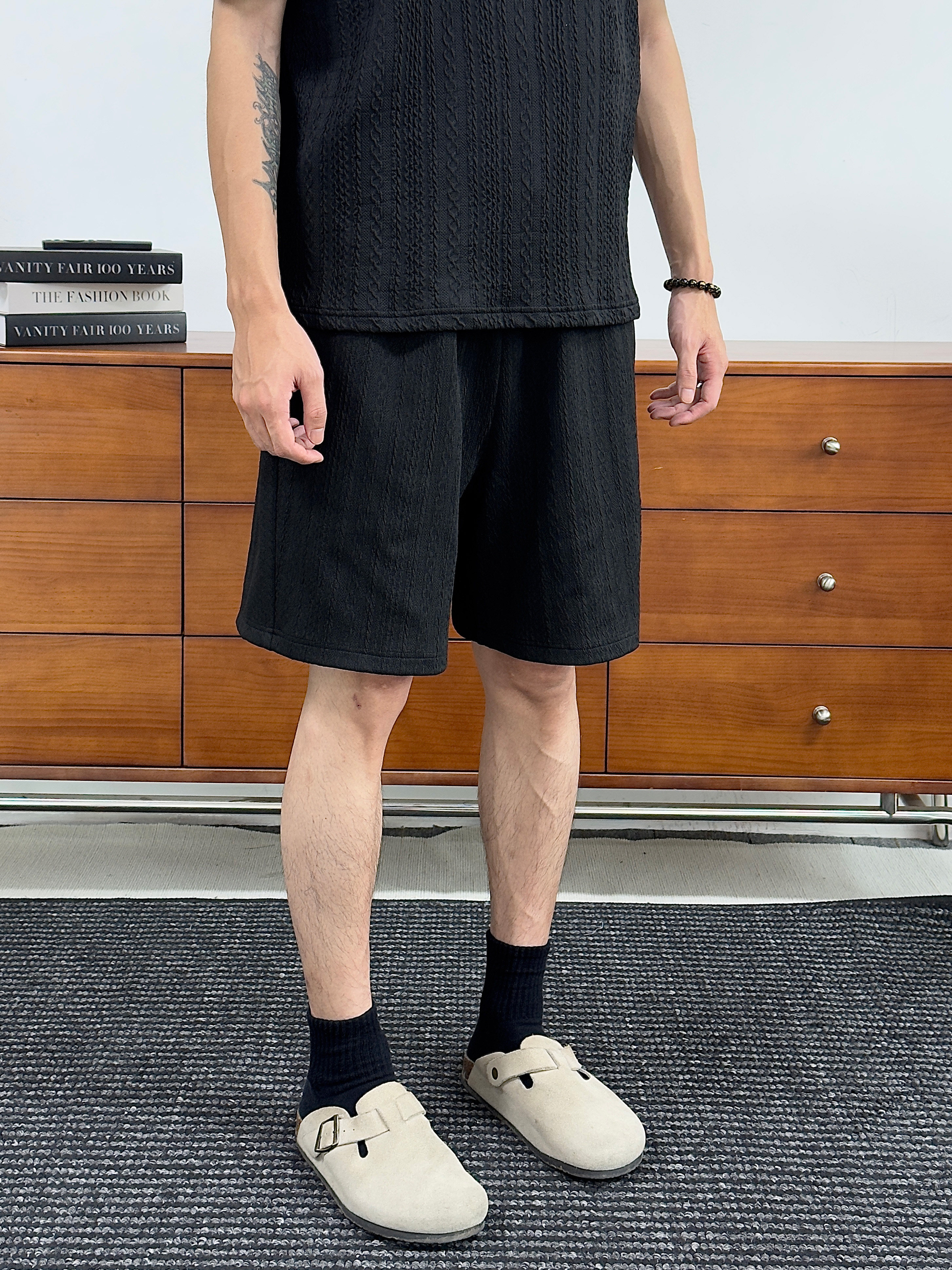 WESSK麻花短褲夏季透氣寬鬆紋理新款五分褲百搭戶外時尚休閒褲