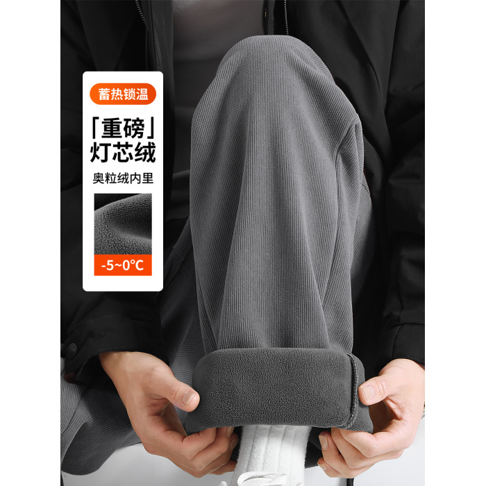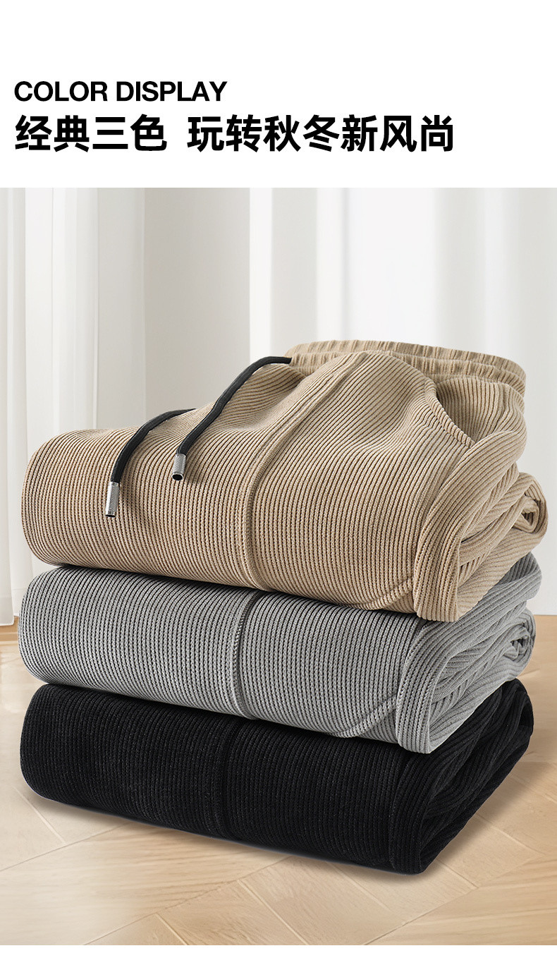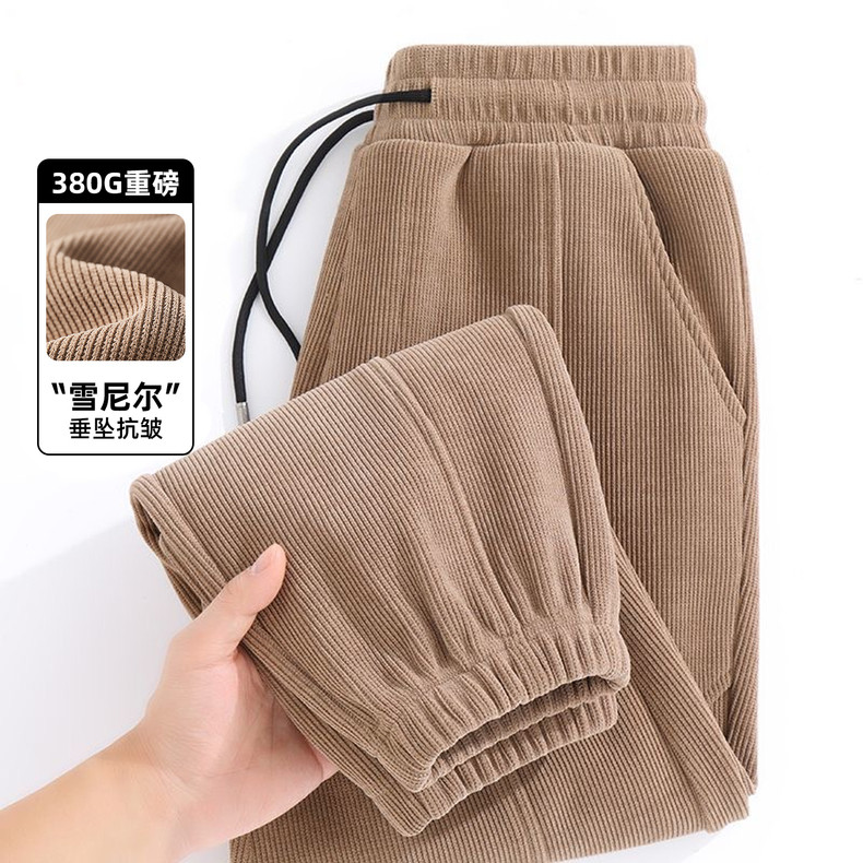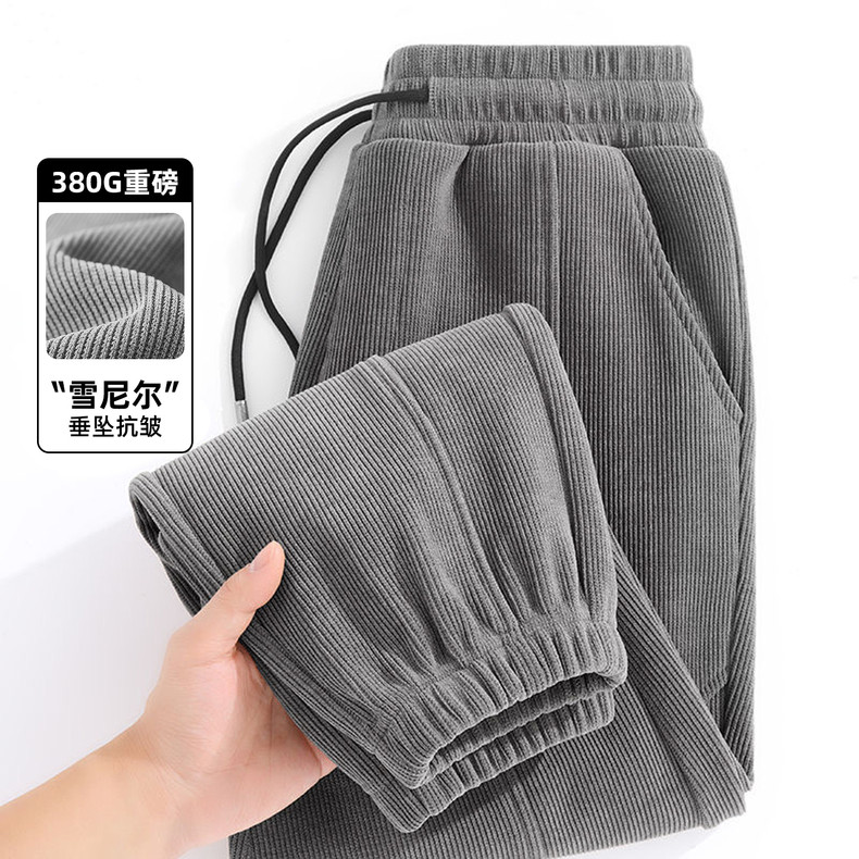 廻力加厚褲子男款秋冬加絨重磅男士休閒褲燈芯絨冬裝大碼運動衛褲