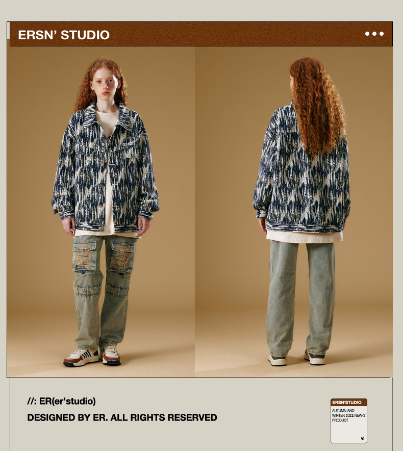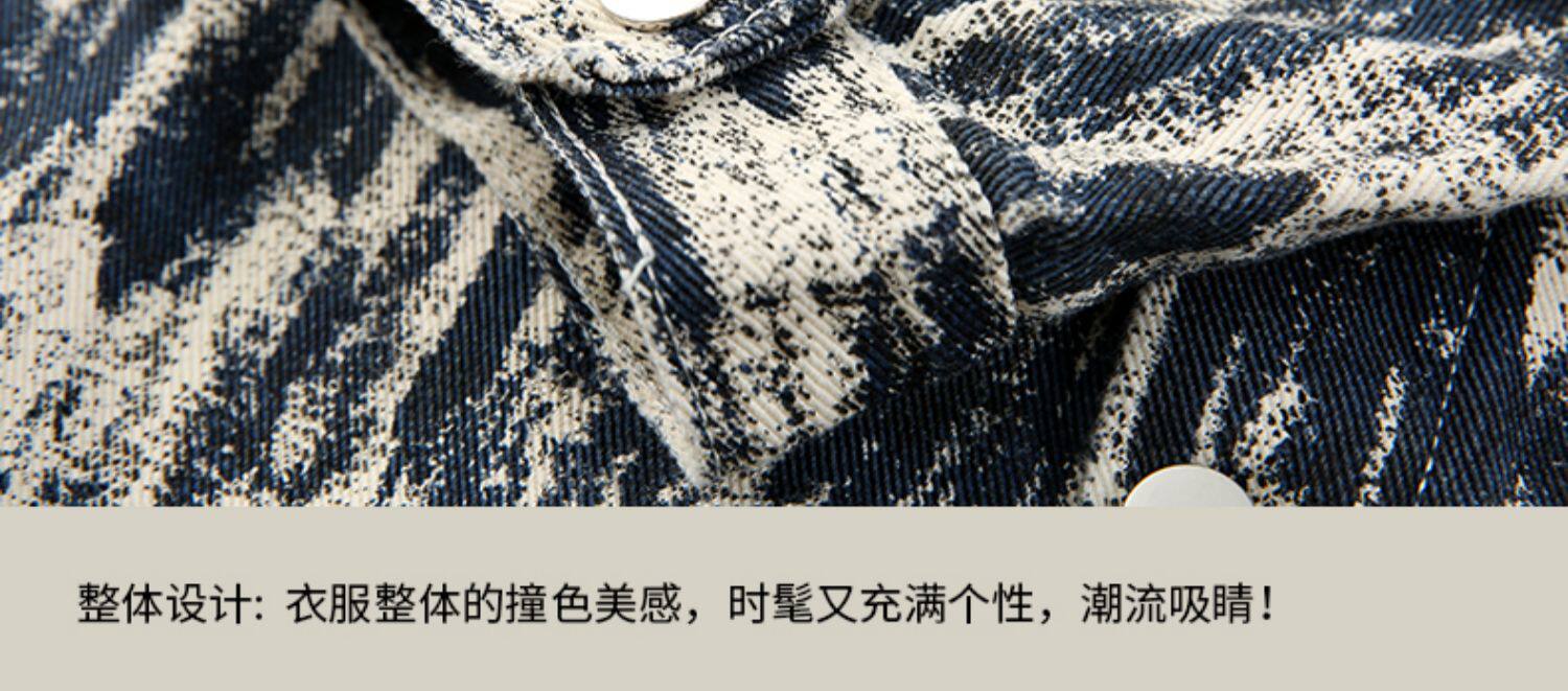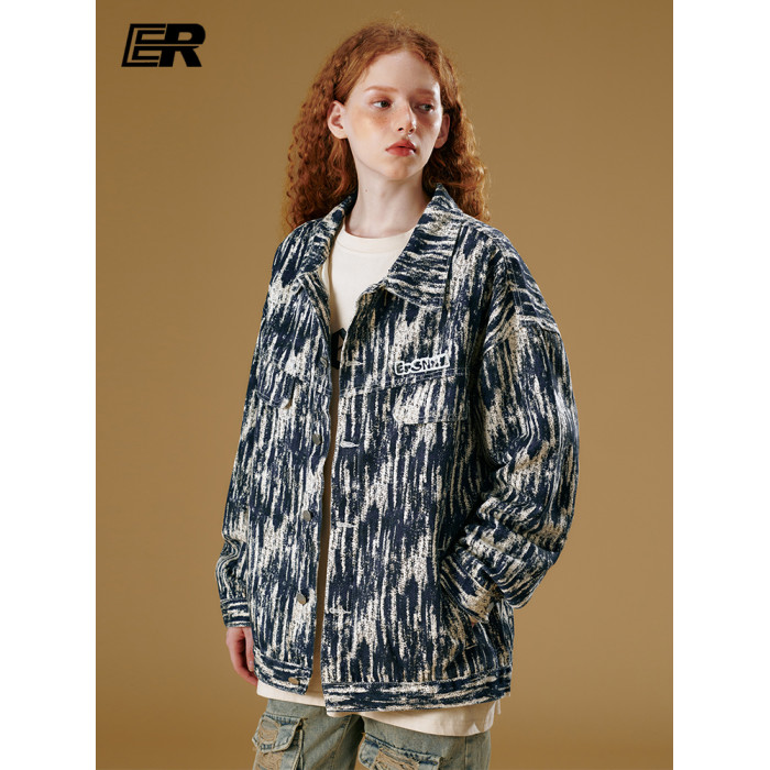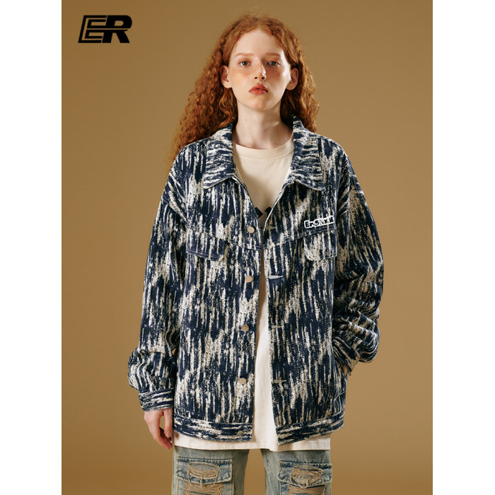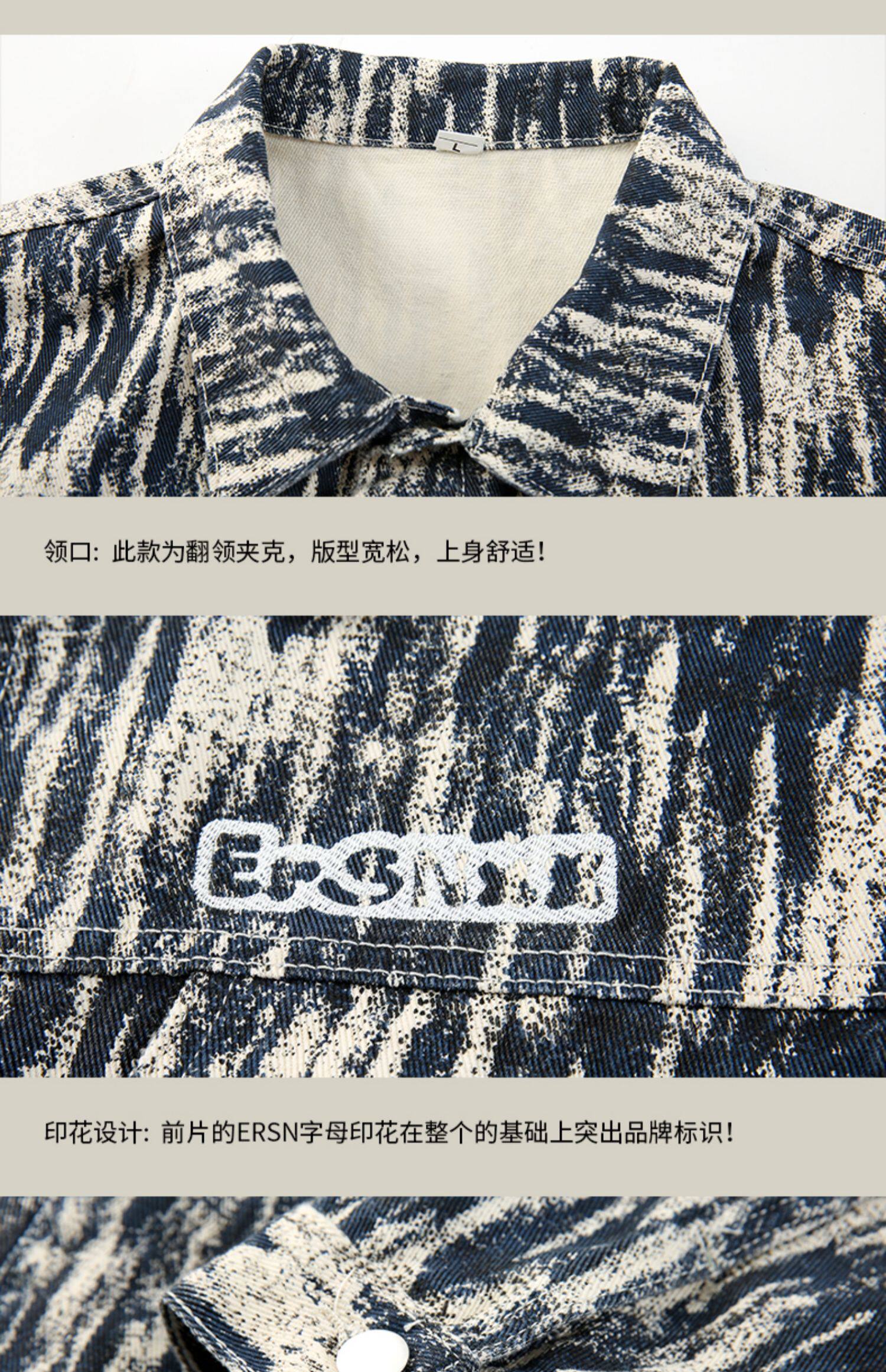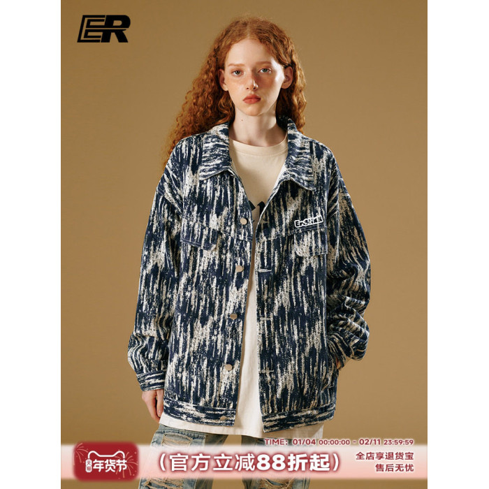 ER滿印提花牛仔夾克男2026秋季潮牌重工美式復古情侶裝外套