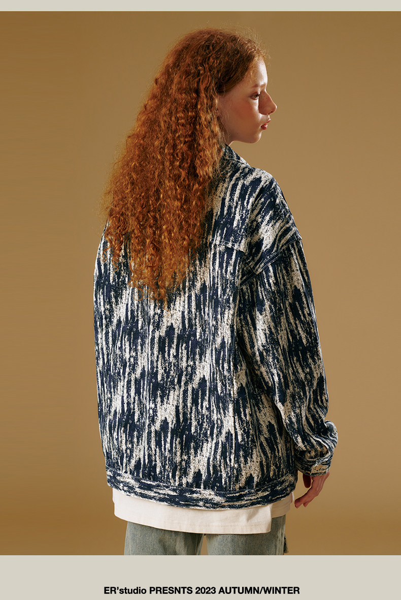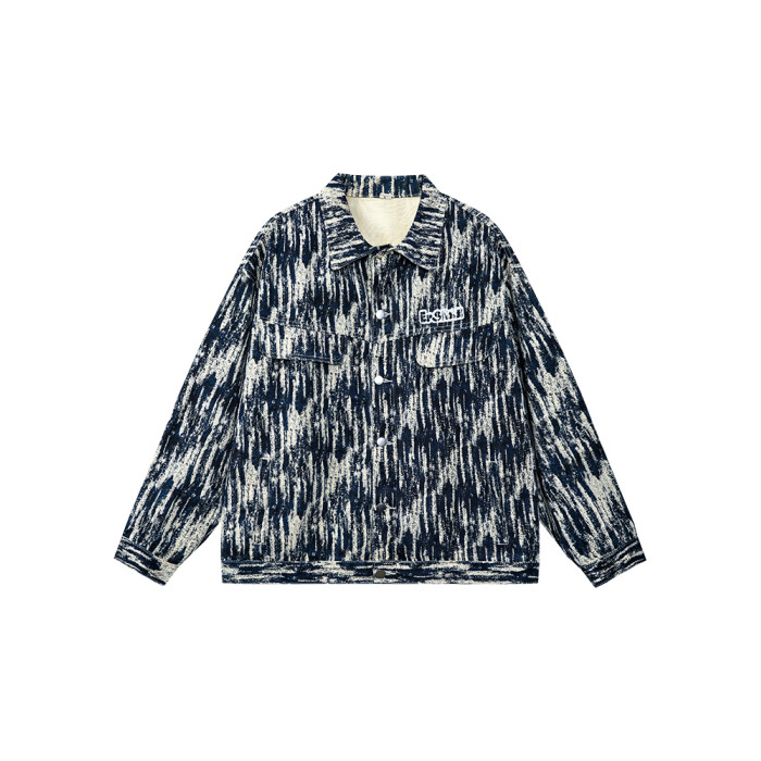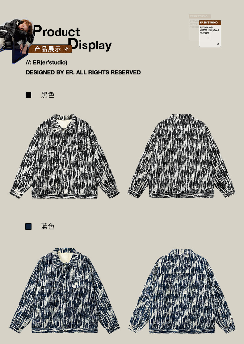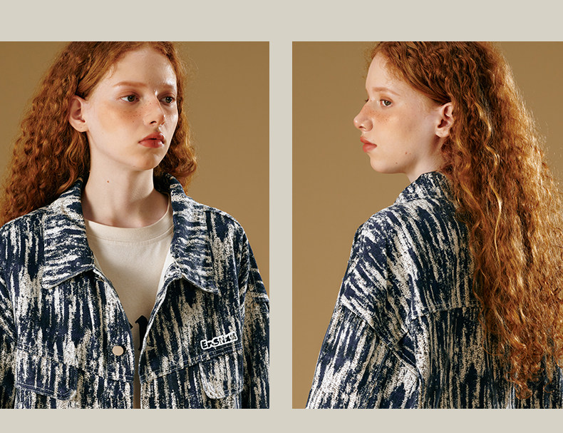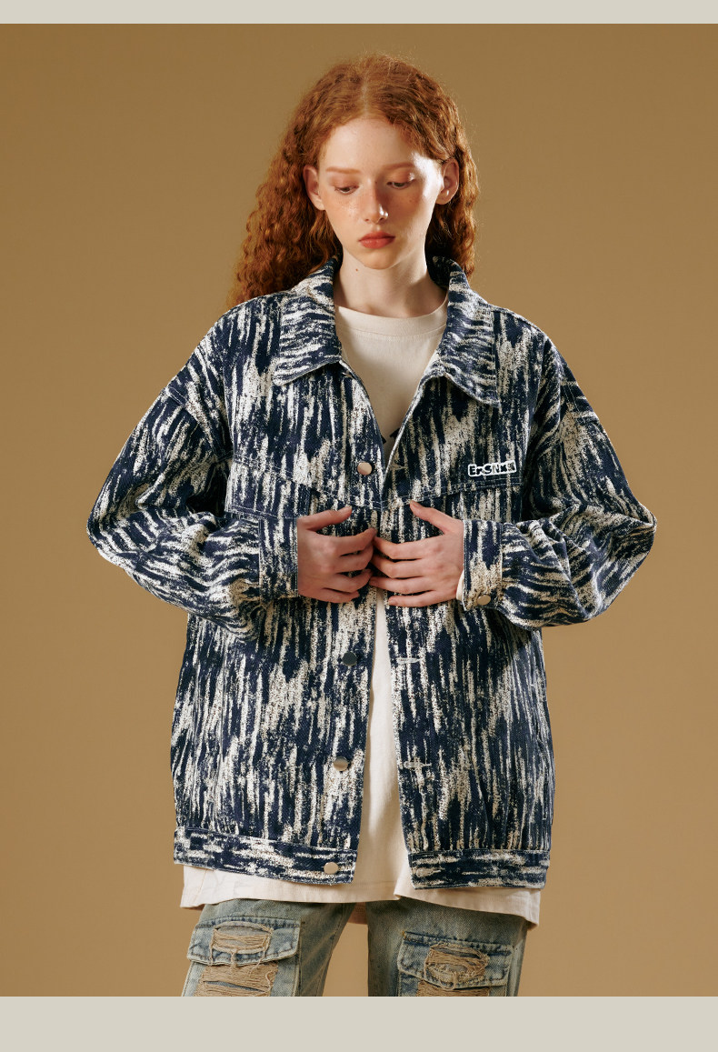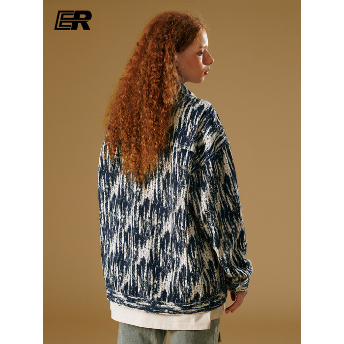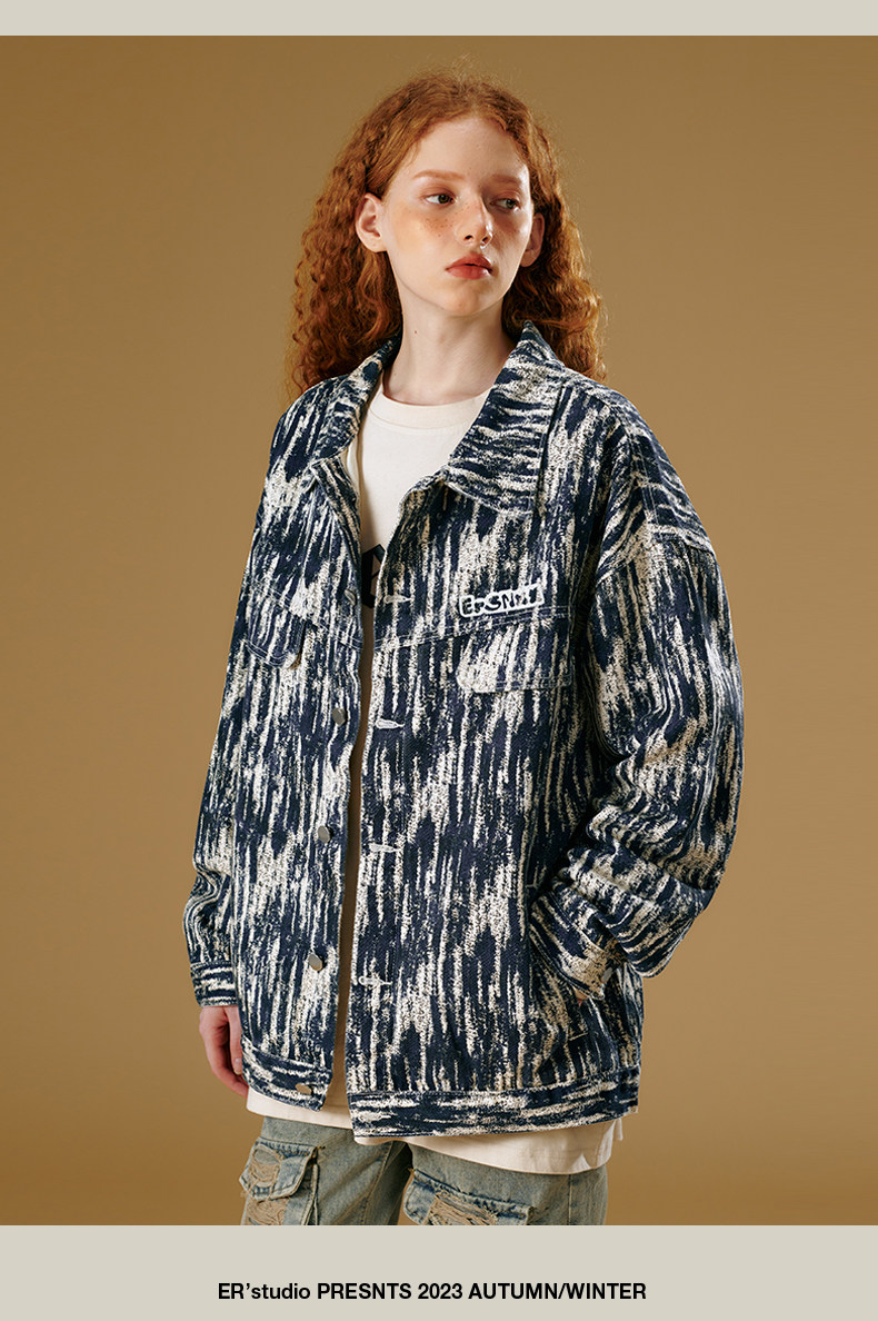 ER滿印提花牛仔夾克男2026秋季潮牌重工美式復古情侶裝外套
