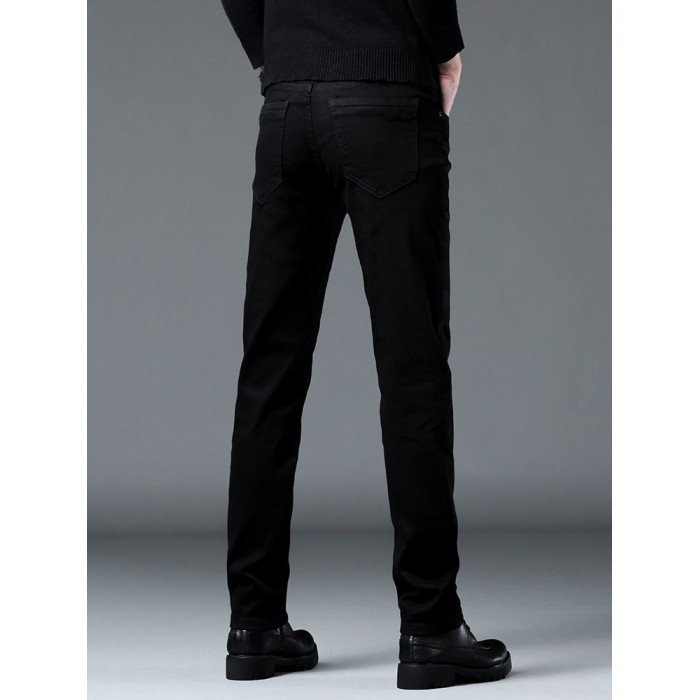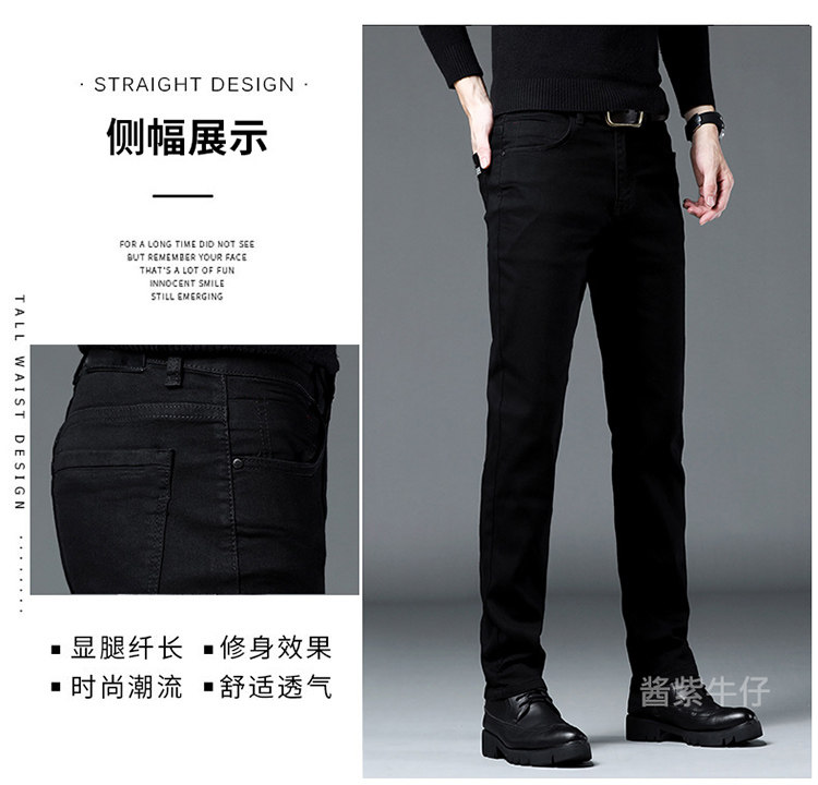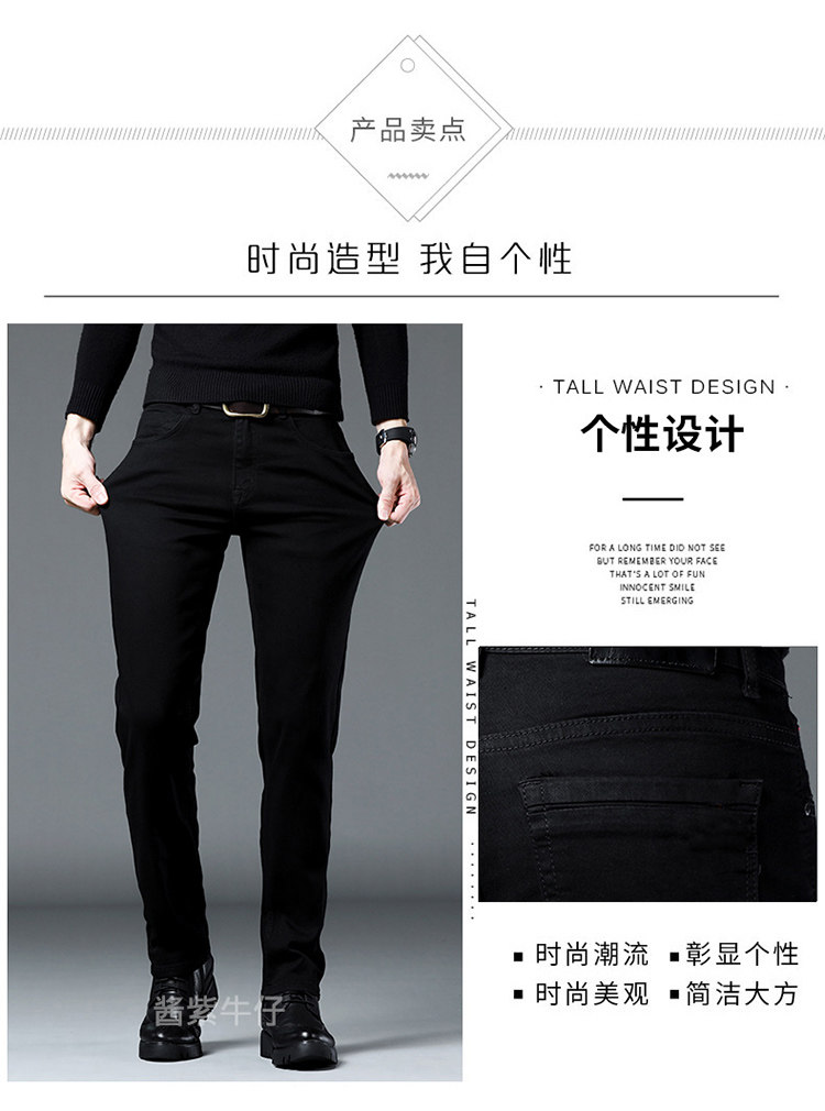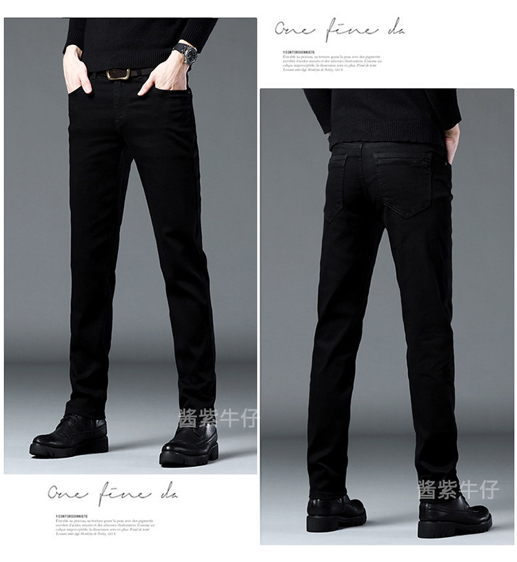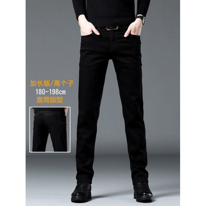純黑色加長版牛仔褲男加絨190高個子110修身直筒115超長腿褲子120