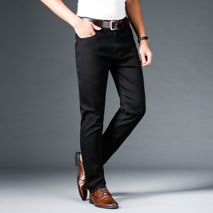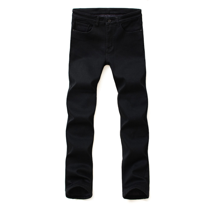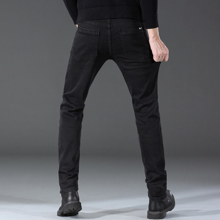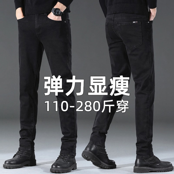 秋季高彈純黑牛仔褲加絨男士胖子加肥加大寬鬆休閒小腳顯瘦長褲子