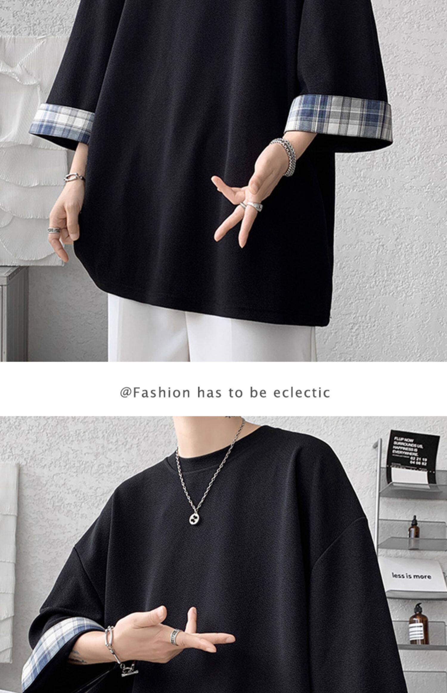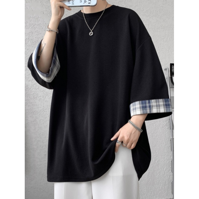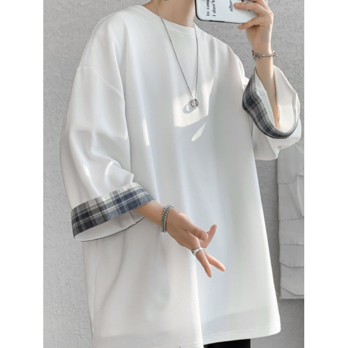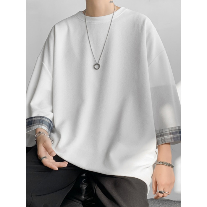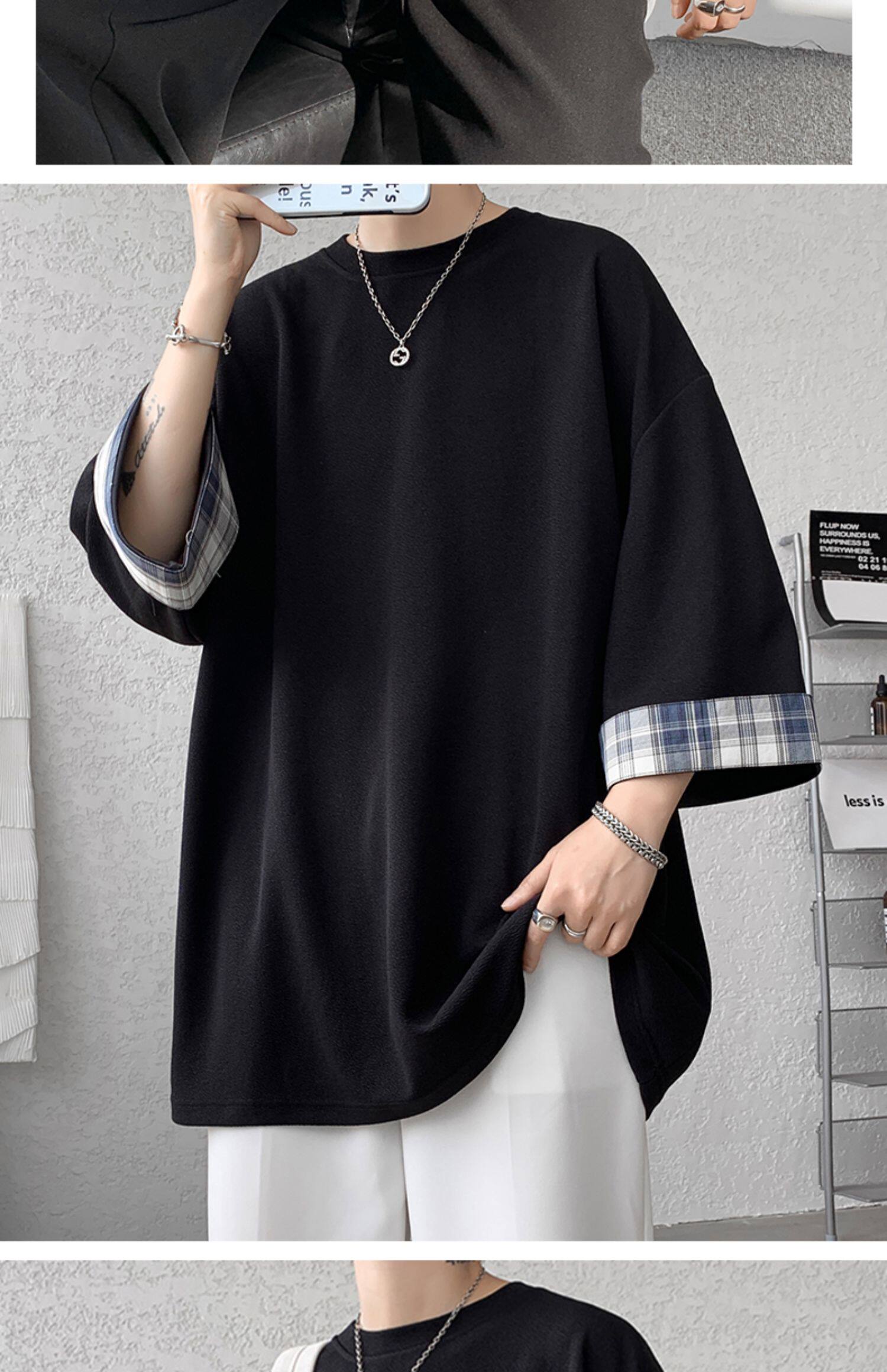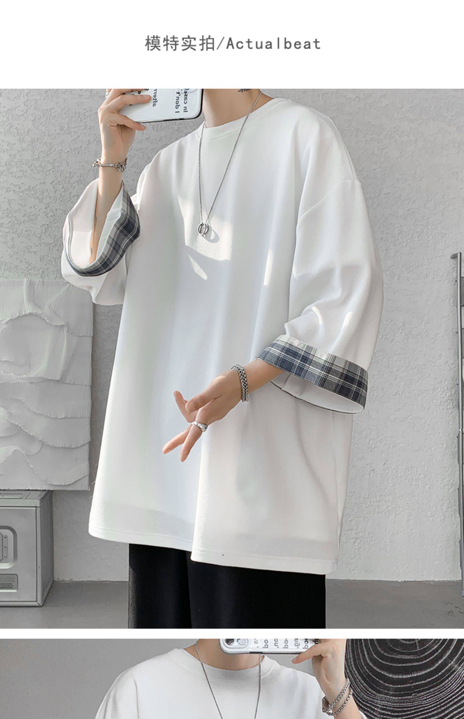 冰絲短袖t恤男款七分袖夏季時尚男裝美式重磅上衣寬鬆ins潮流衣服