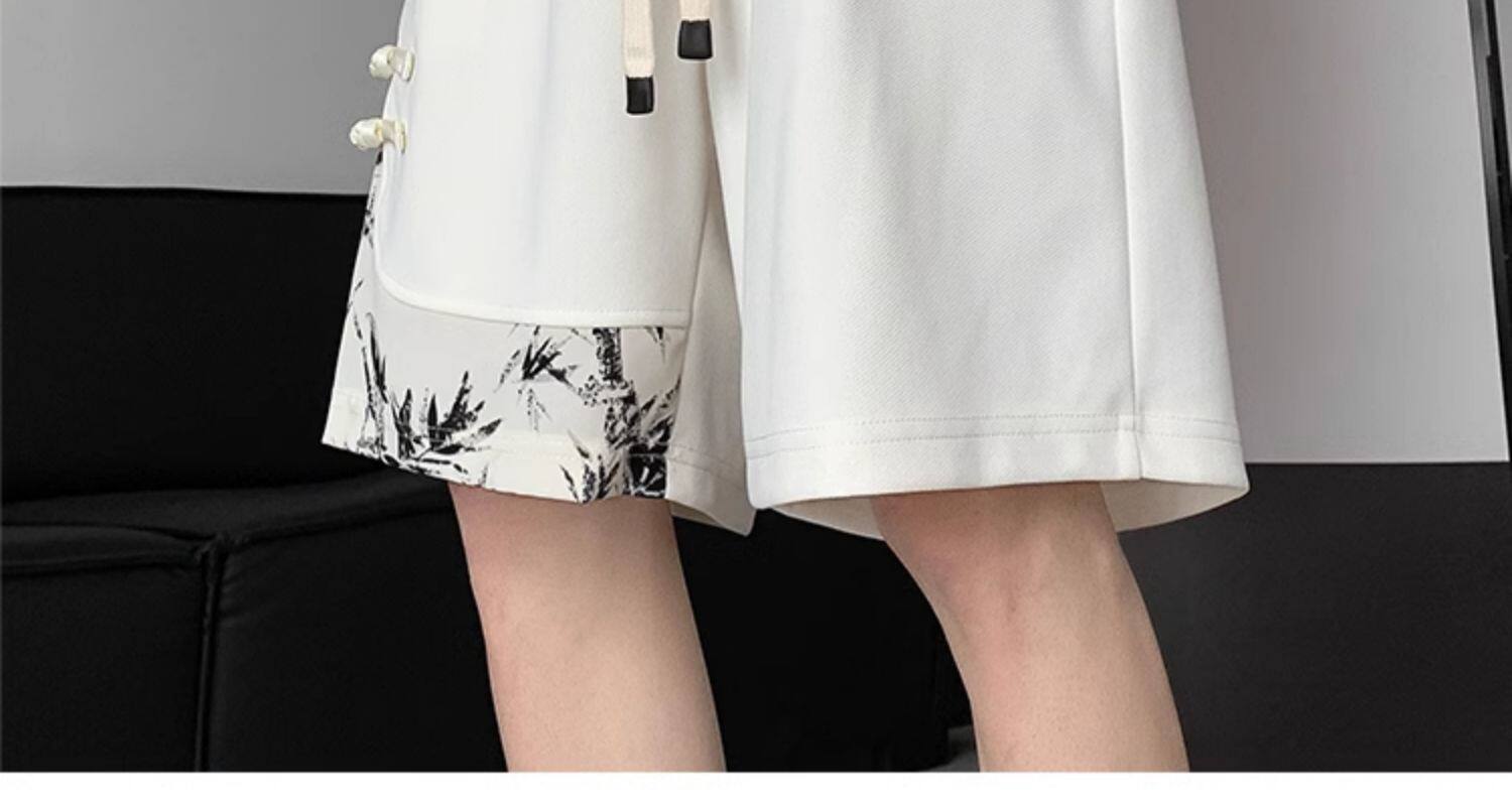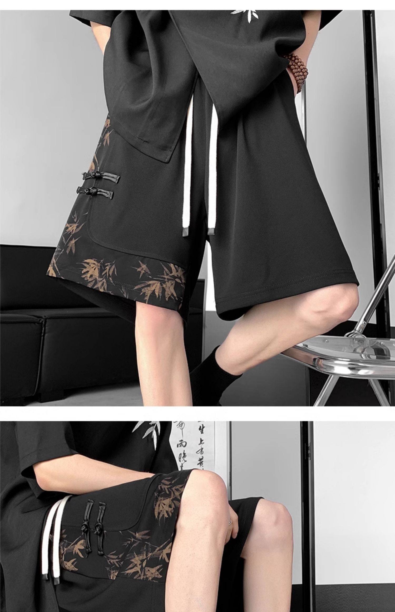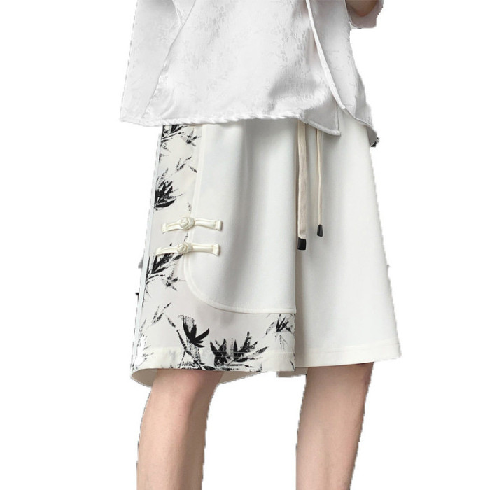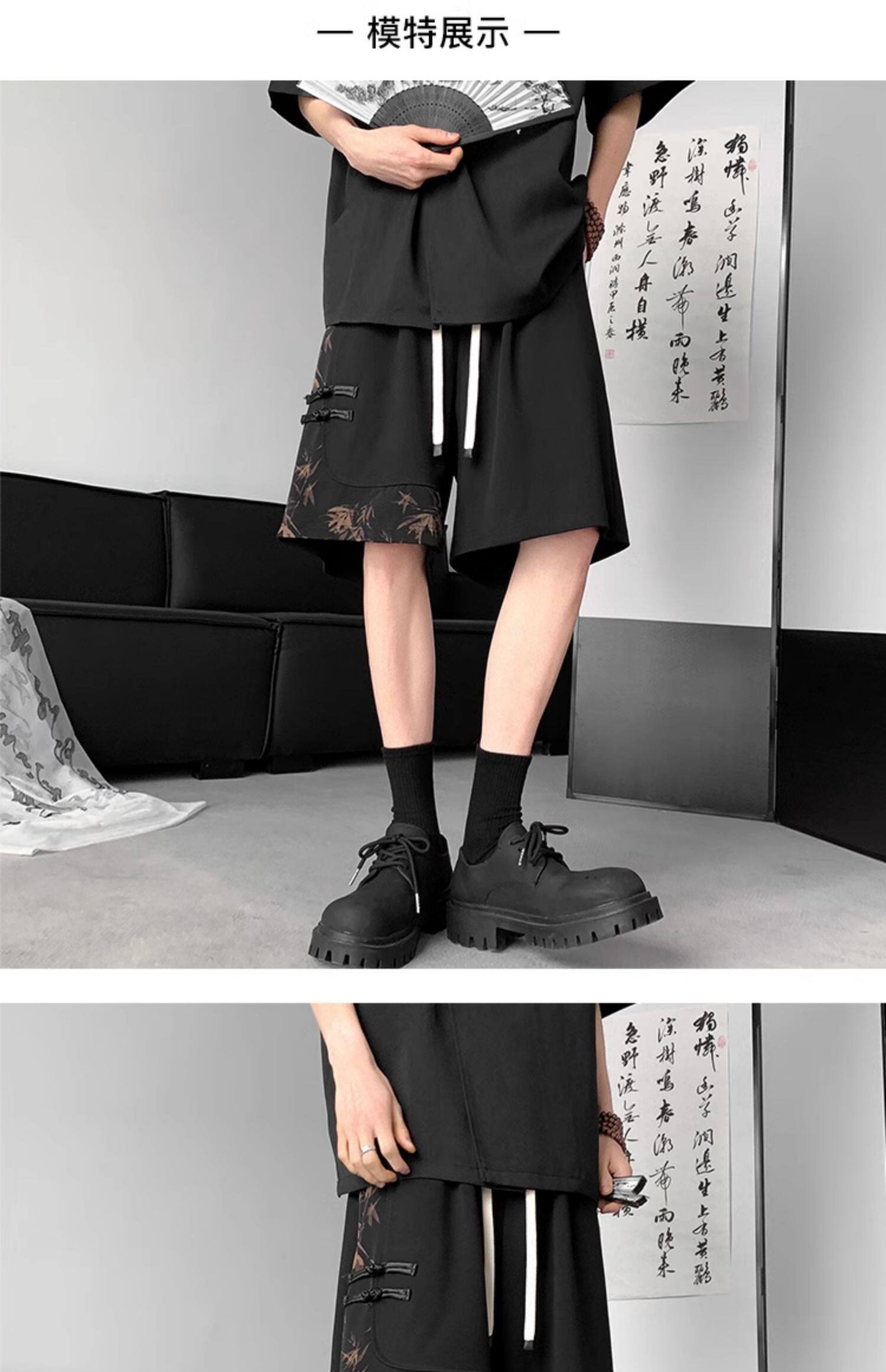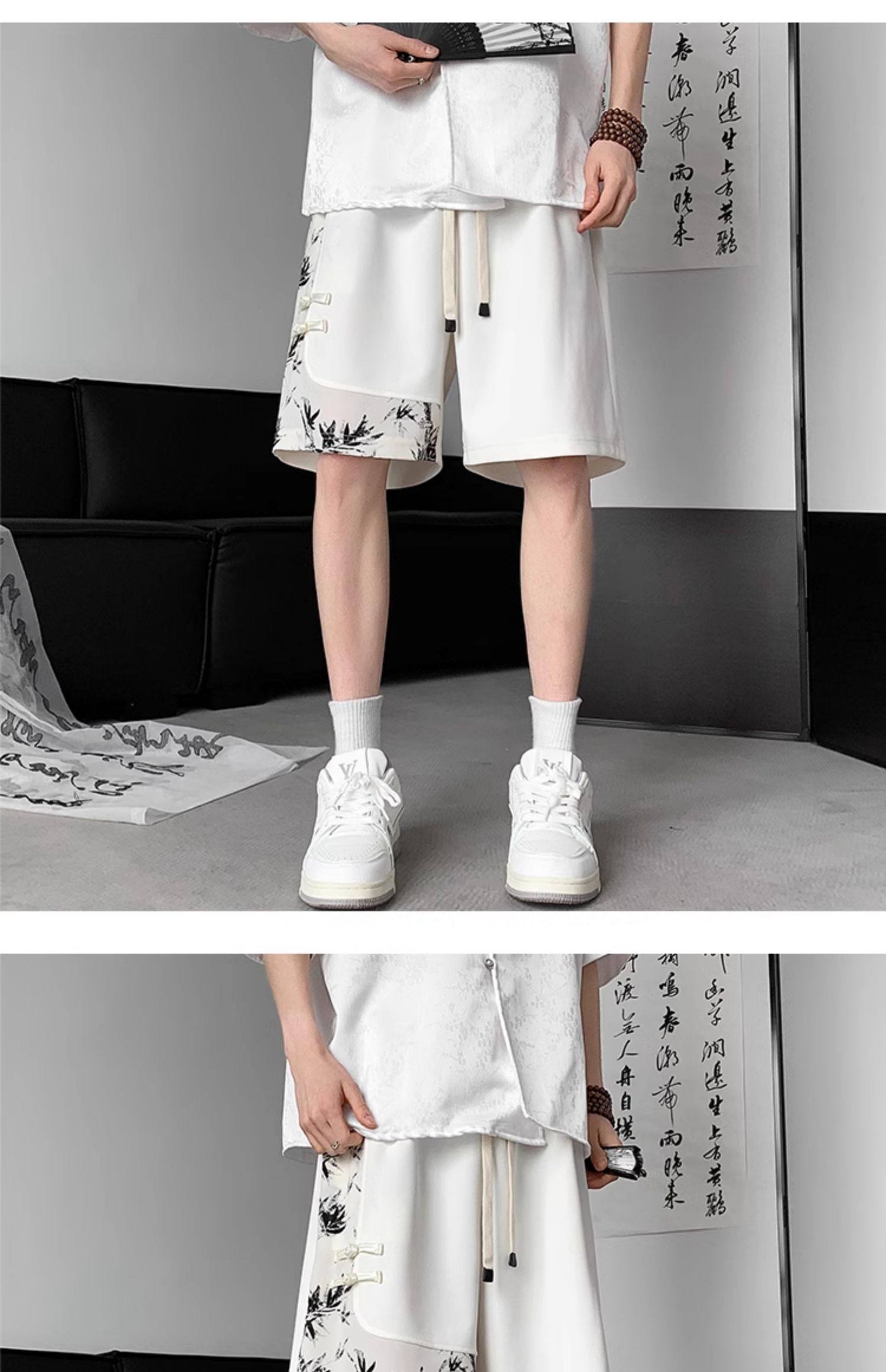 新中式國風水墨盤釦冰絲短褲男夏季2026新款寬鬆垂感五分褲子休閒