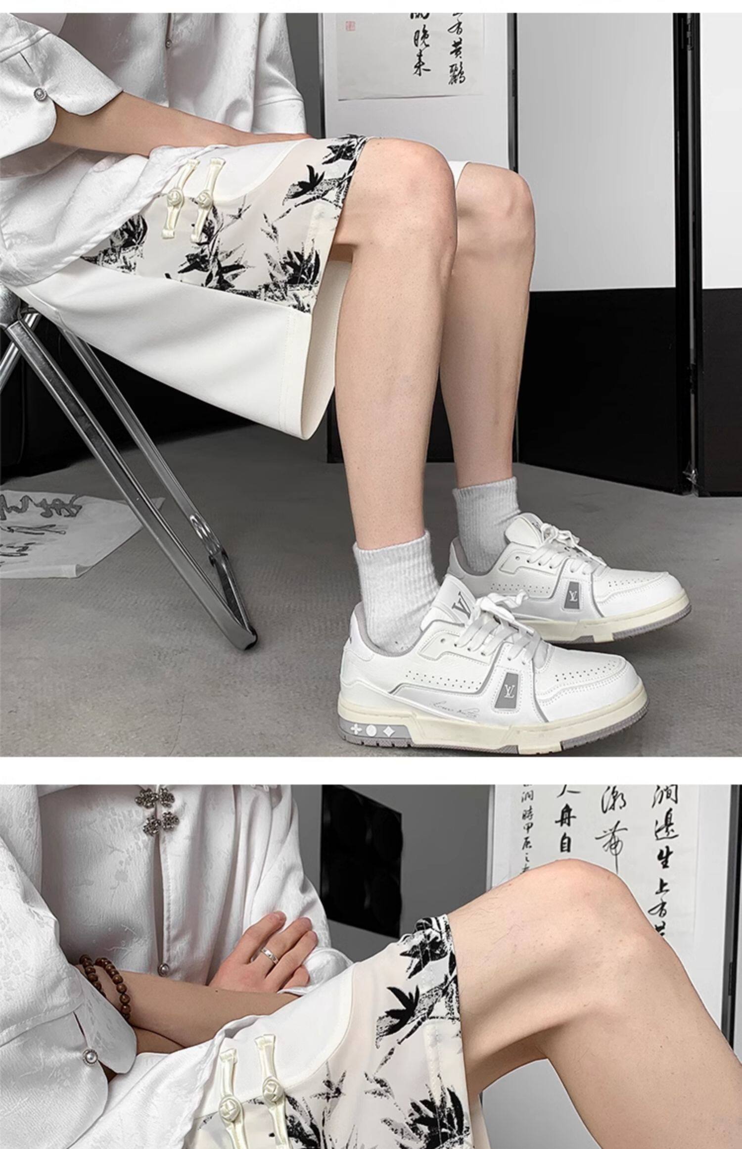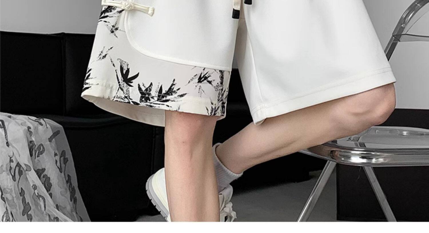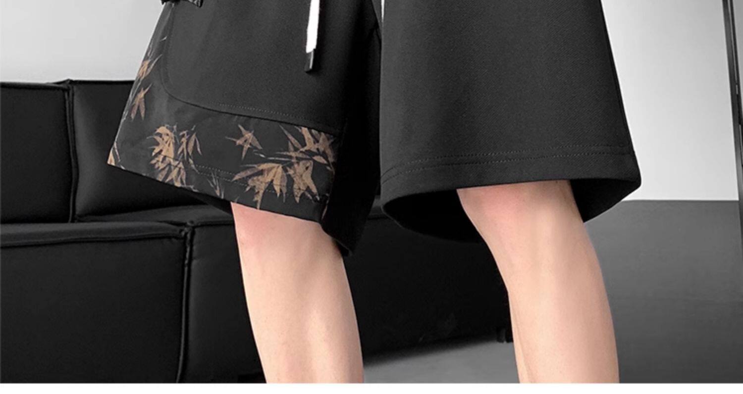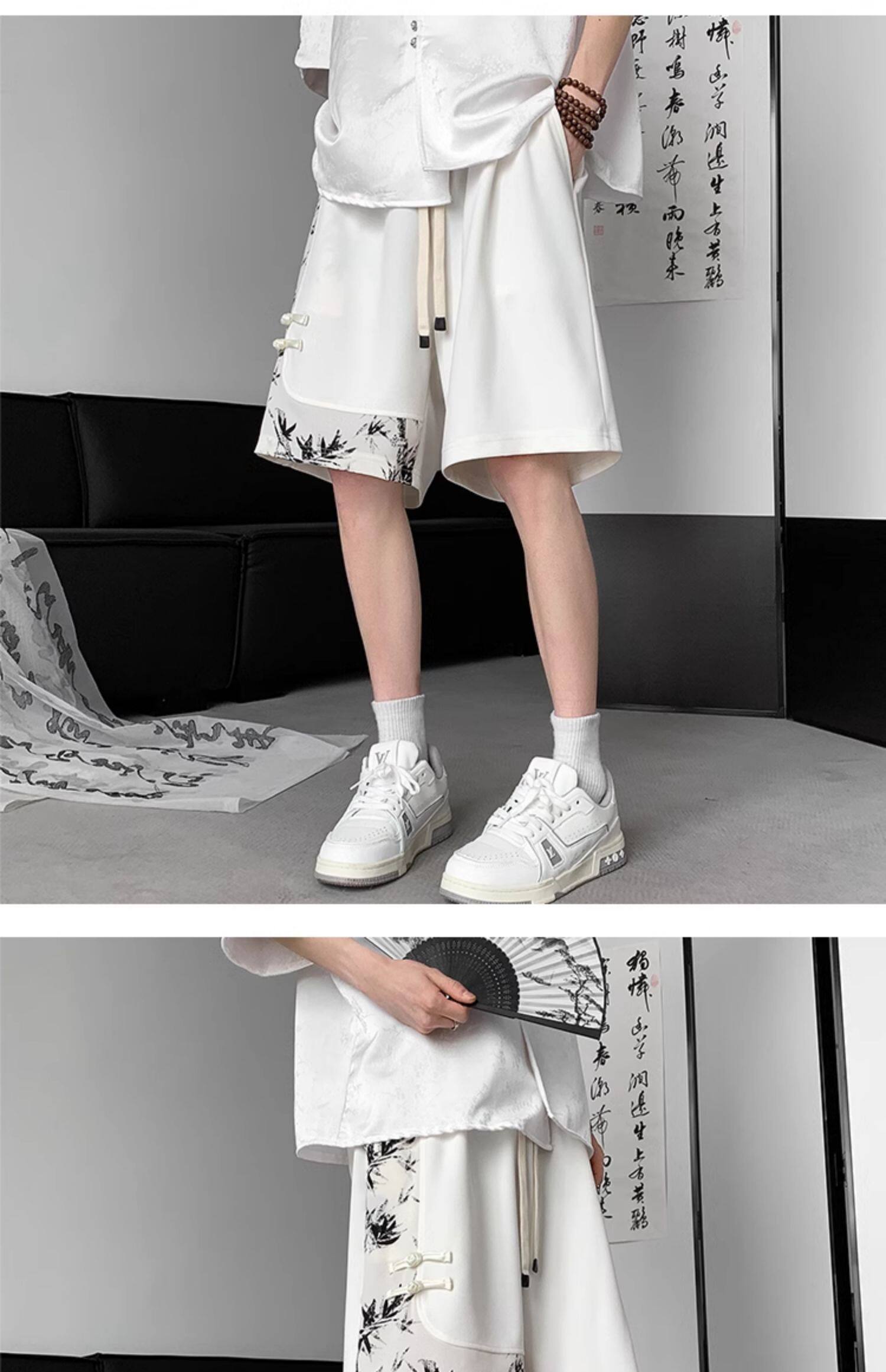 新中式國風水墨盤釦冰絲短褲男夏季2026新款寬鬆垂感五分褲子休閒