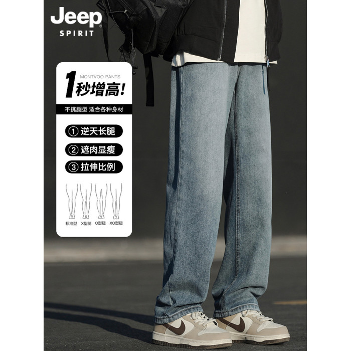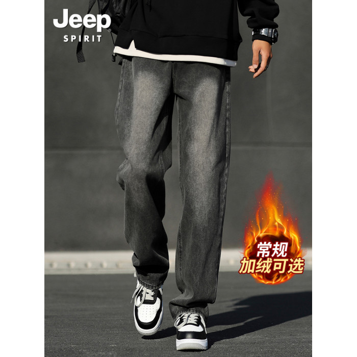 吉普直筒牛仔褲男秋冬季加厚新款男褲黑色男生加絨褲長褲男士褲子