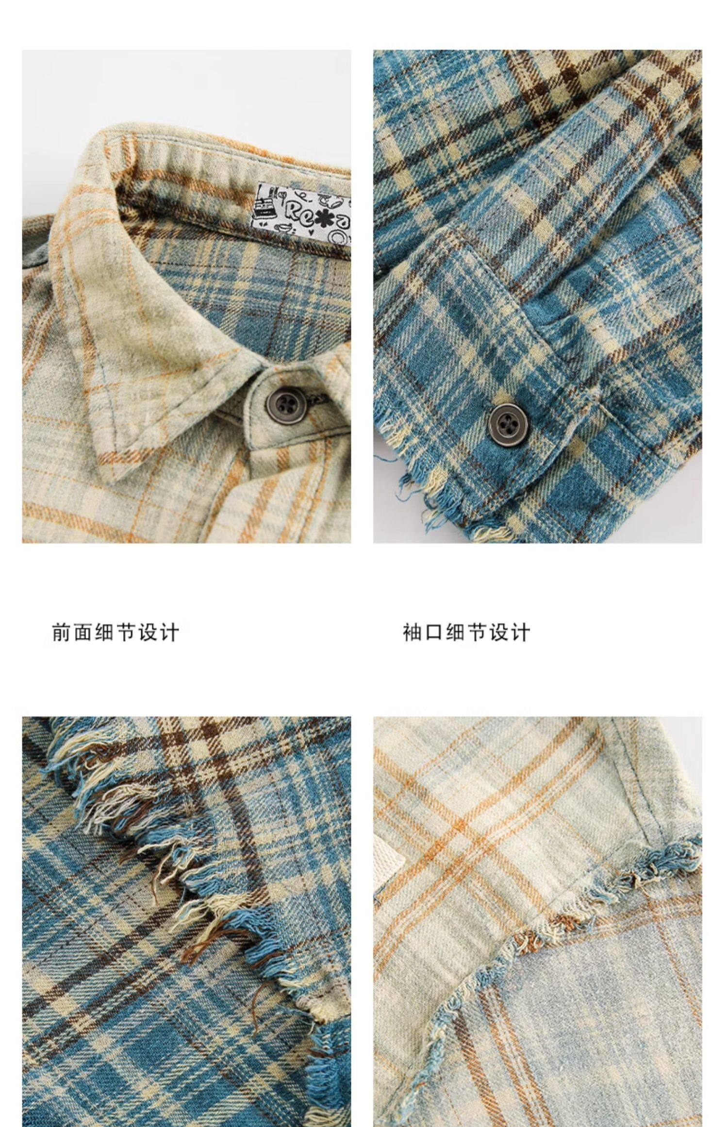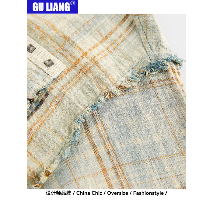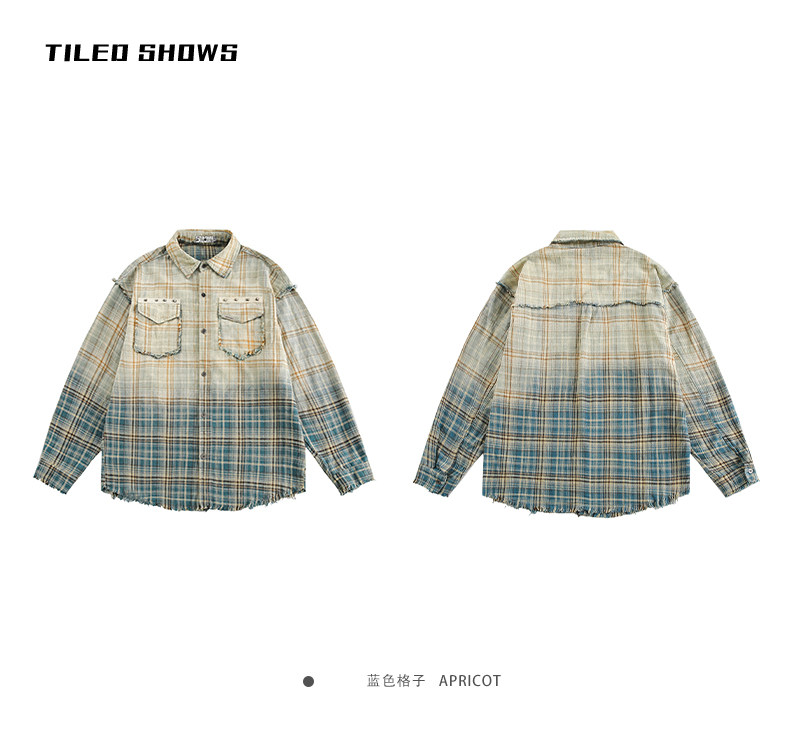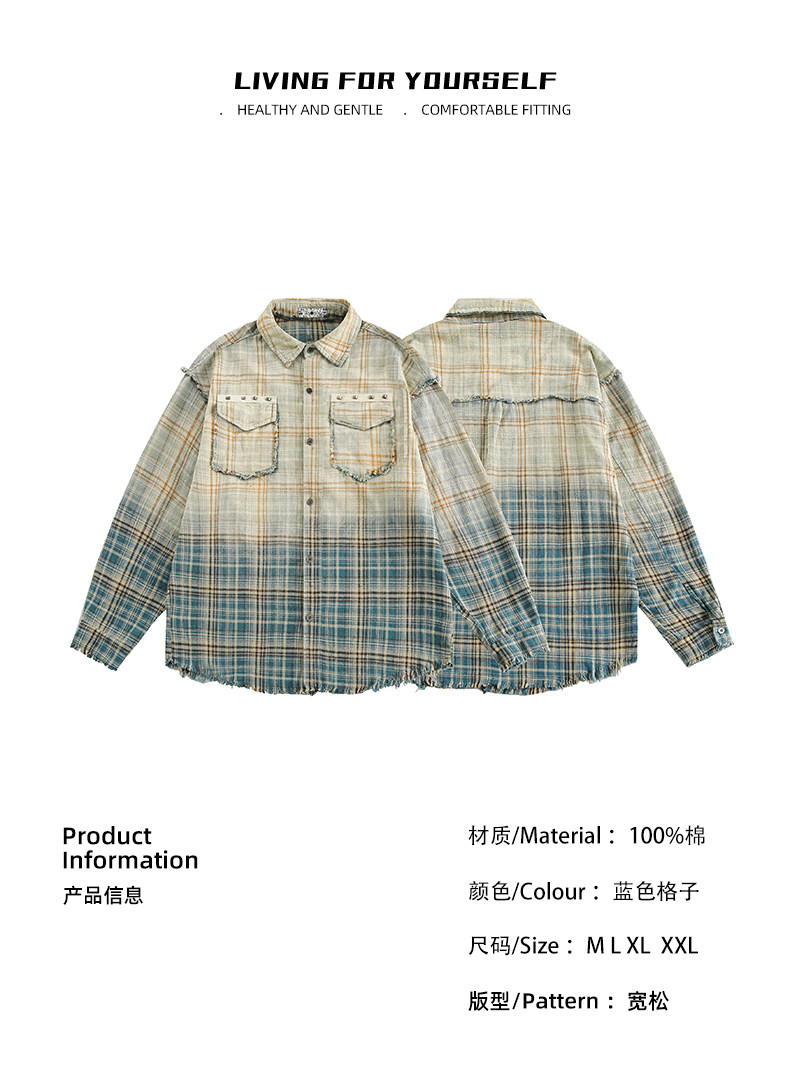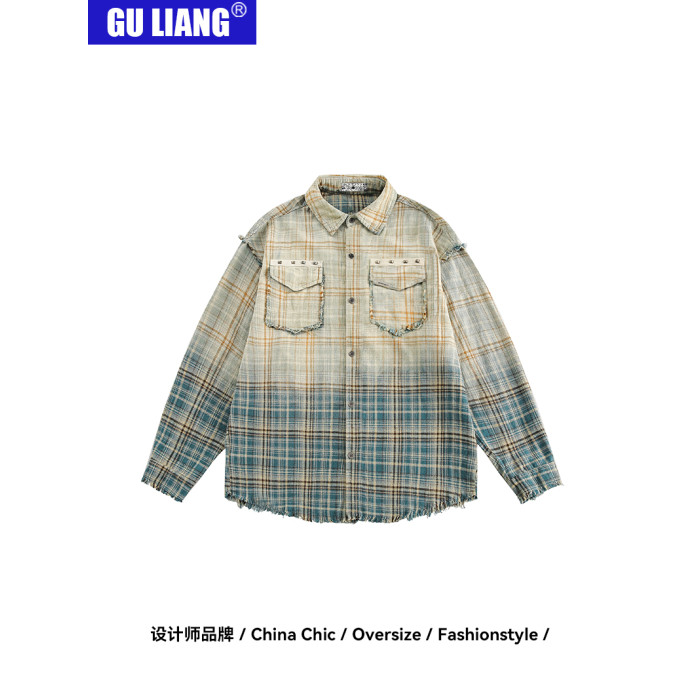 GU LIANG「設計師品牌」【潮流自定義】美式復古漸變休閒格子襯衫