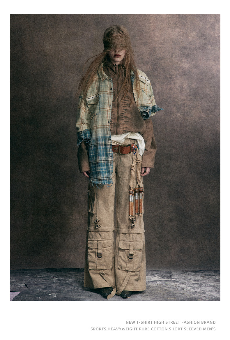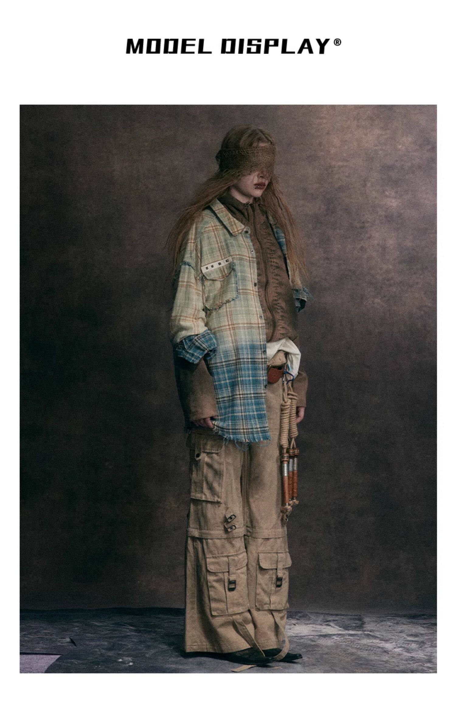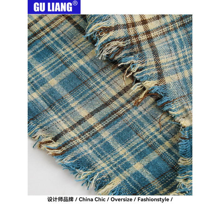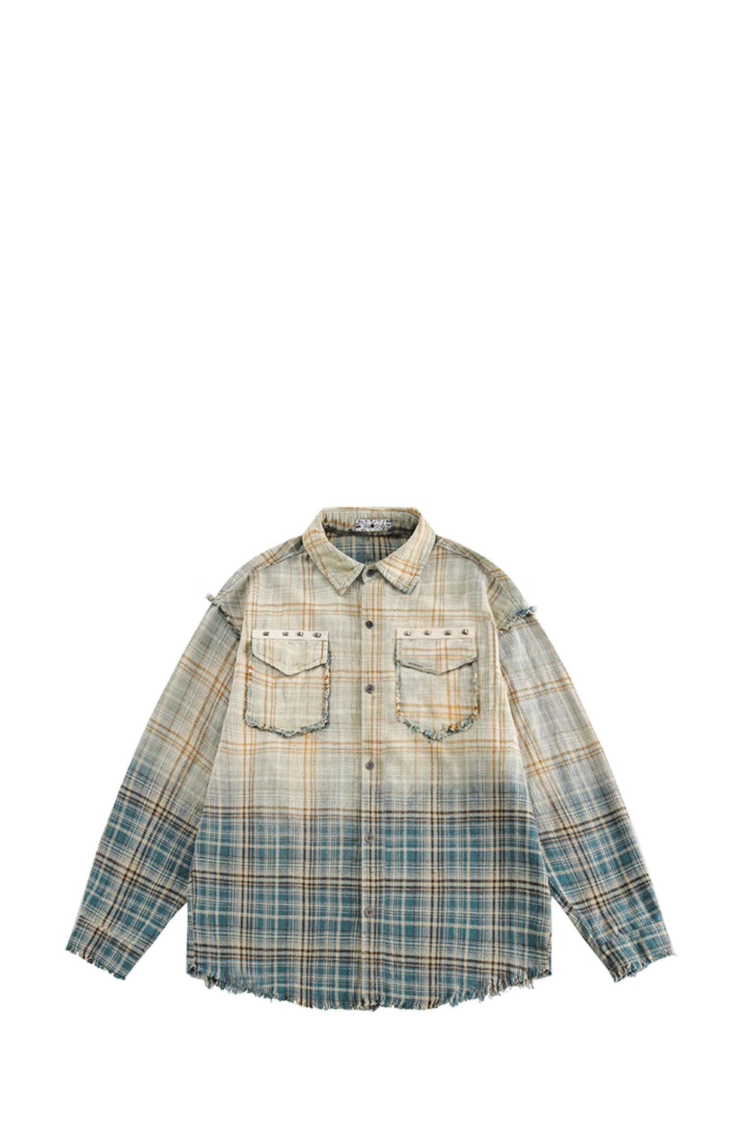 GU LIANG「設計師品牌」【潮流自定義】美式復古漸變休閒格子襯衫