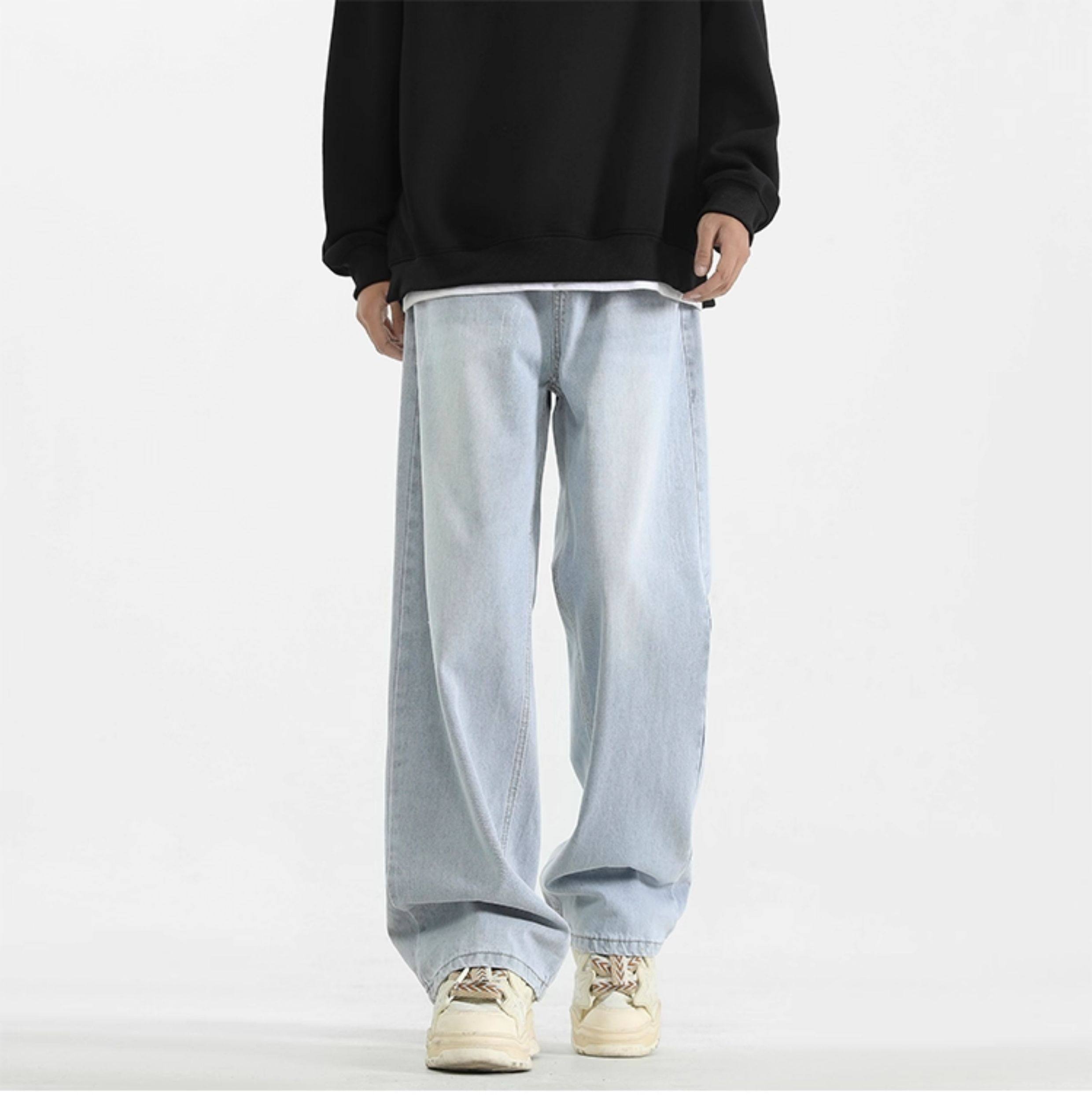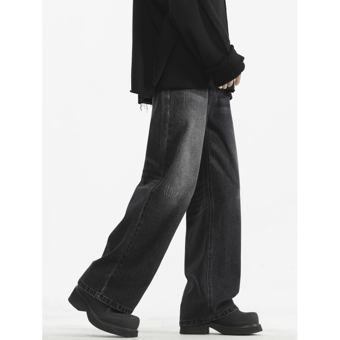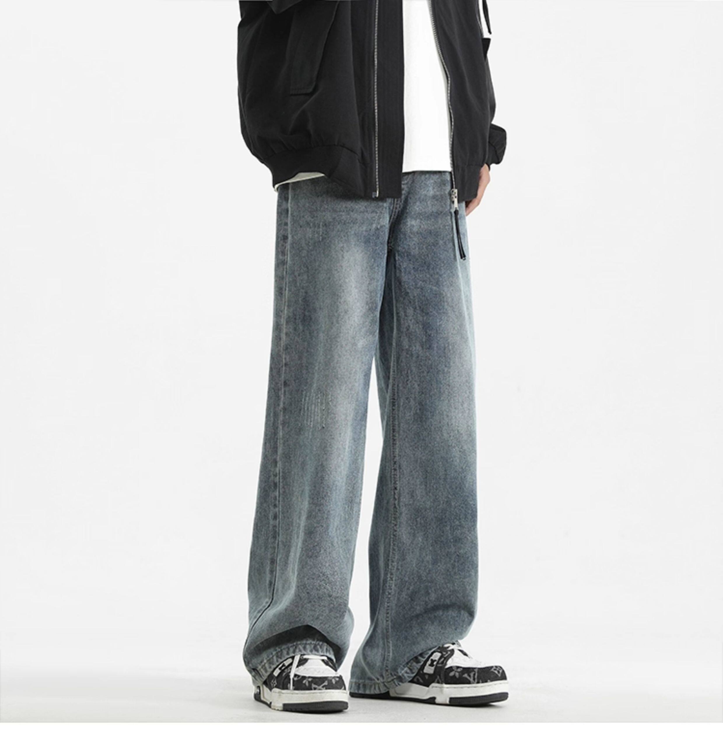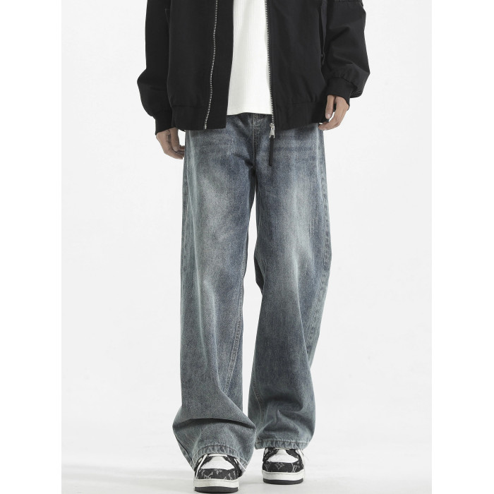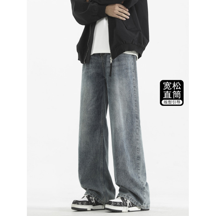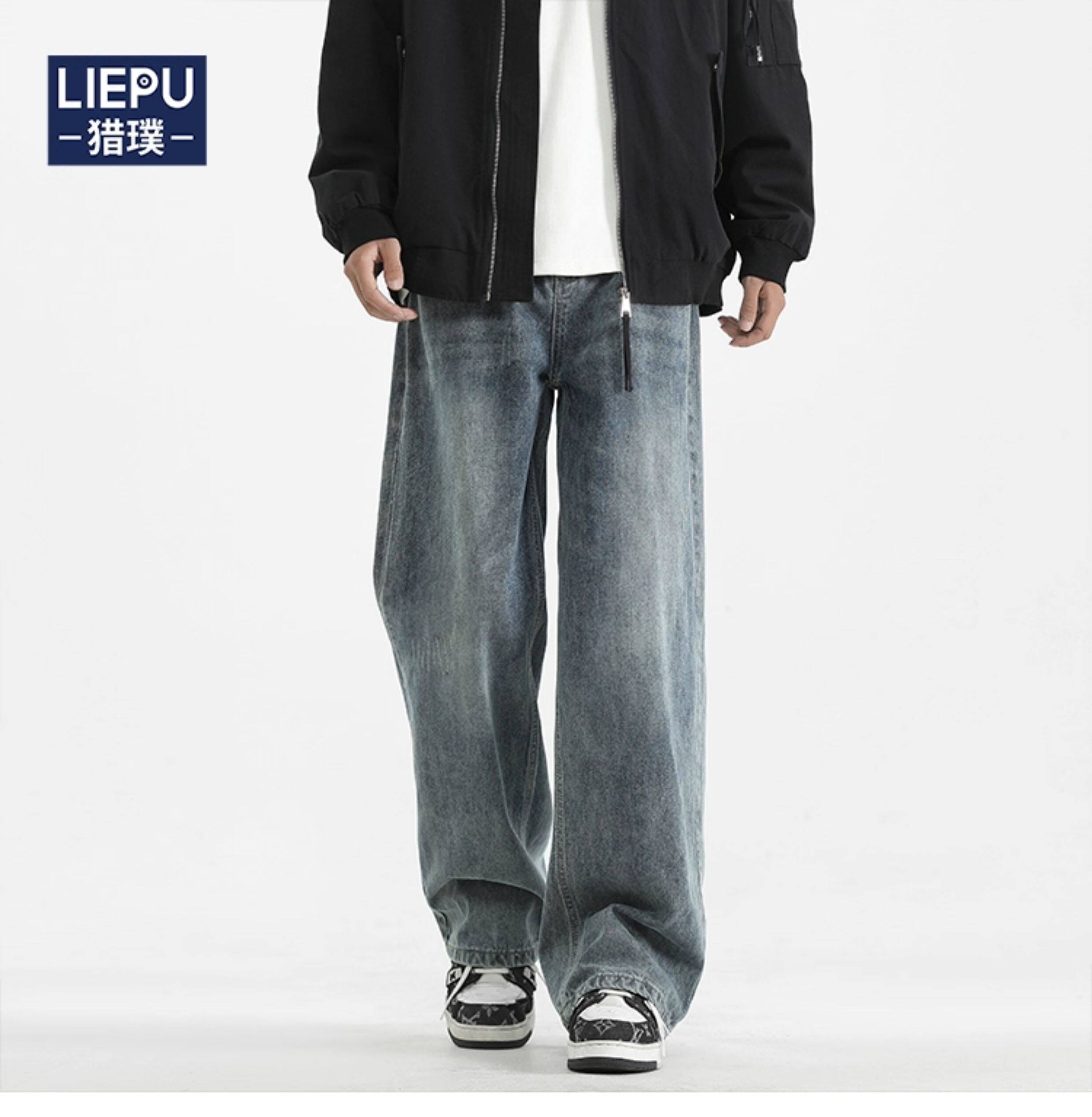 獵璞牛仔褲男士直筒復古褲子美式濶腿褲男生冬季新款休閒彎刀長褲