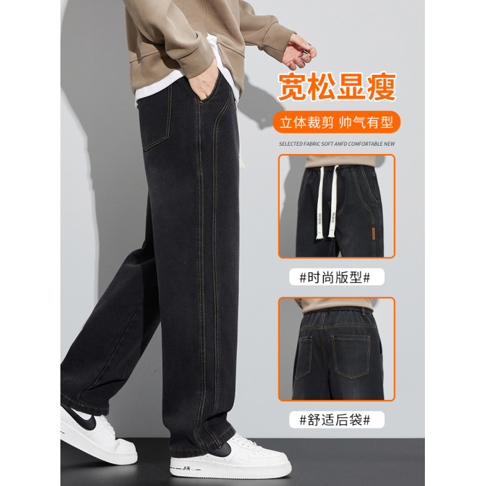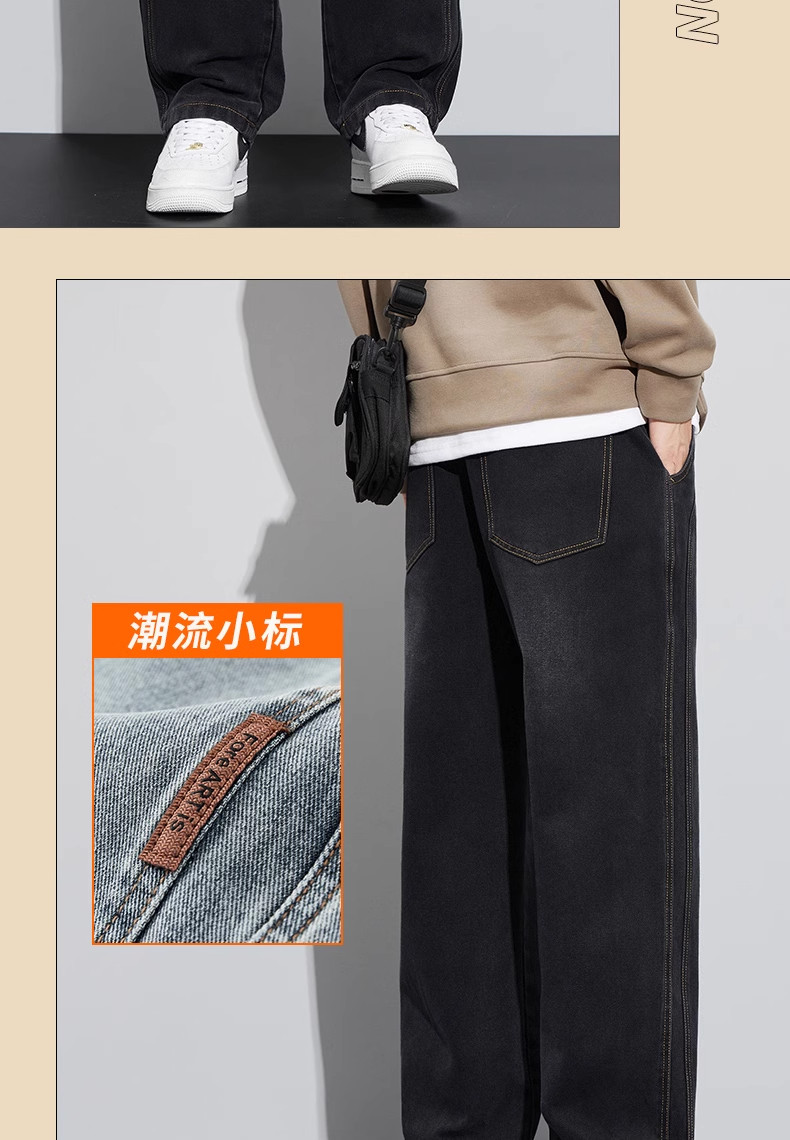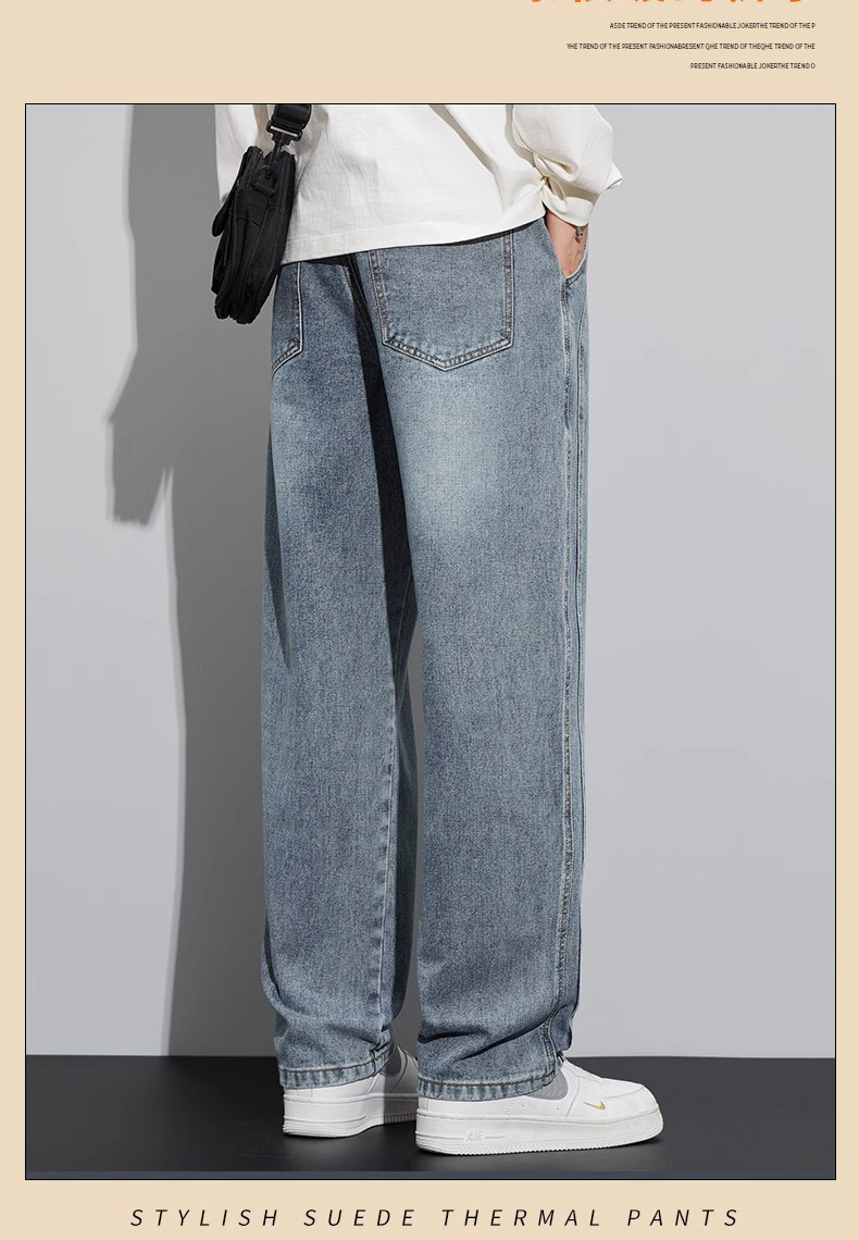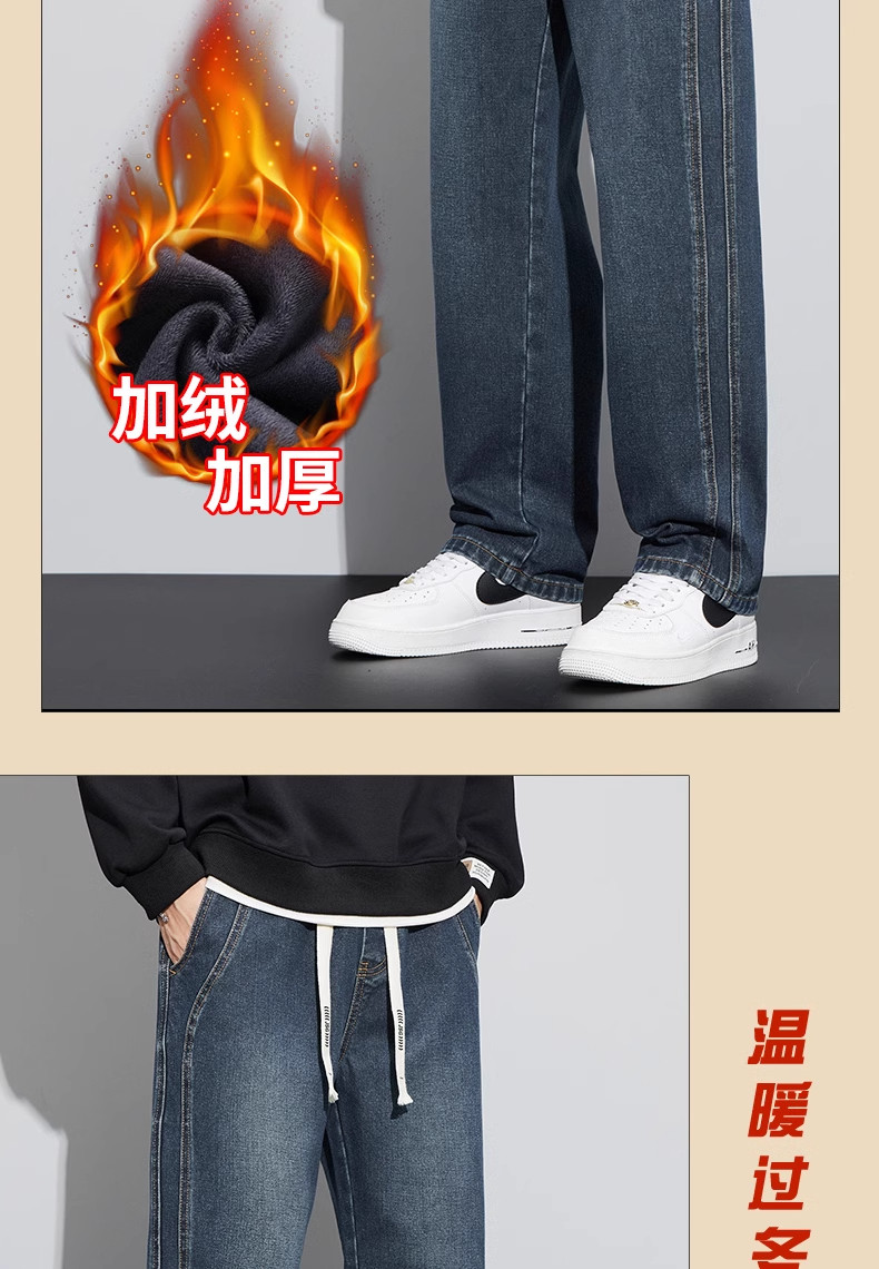 加絨加厚牛仔褲男款秋冬季潮流直筒寬鬆濶腿男士新塘褲子2025新款
