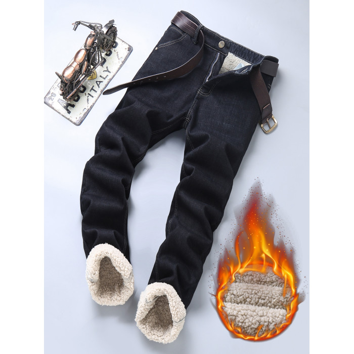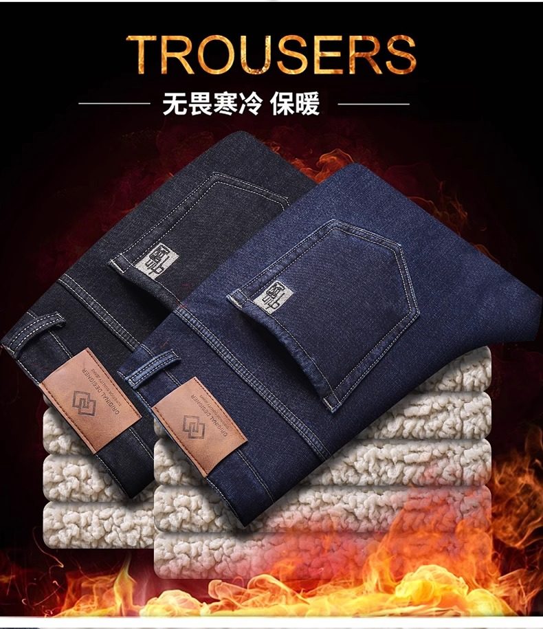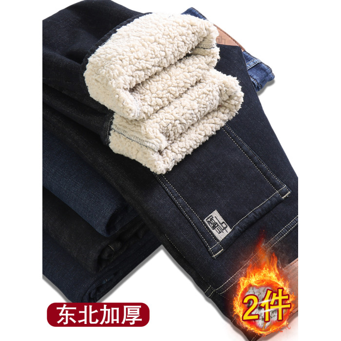 加絨加厚牛仔褲男秋冬款直筒寬鬆2025年冬季羊羔絨保暖休閒長褲子