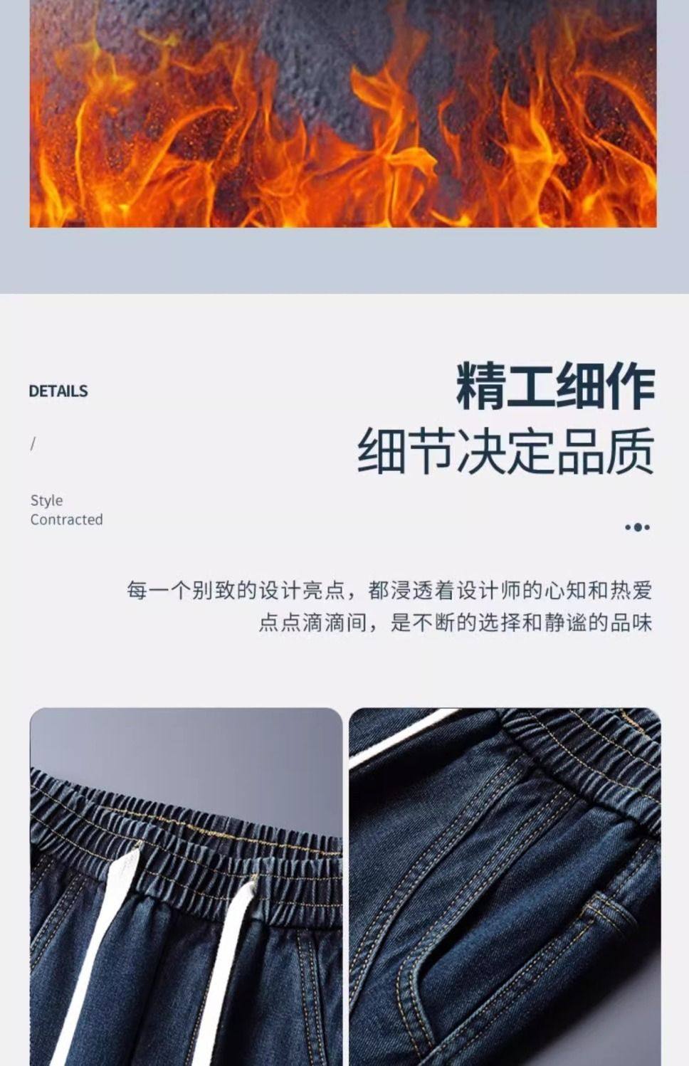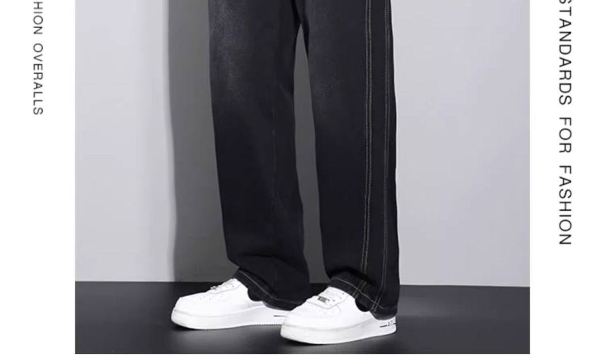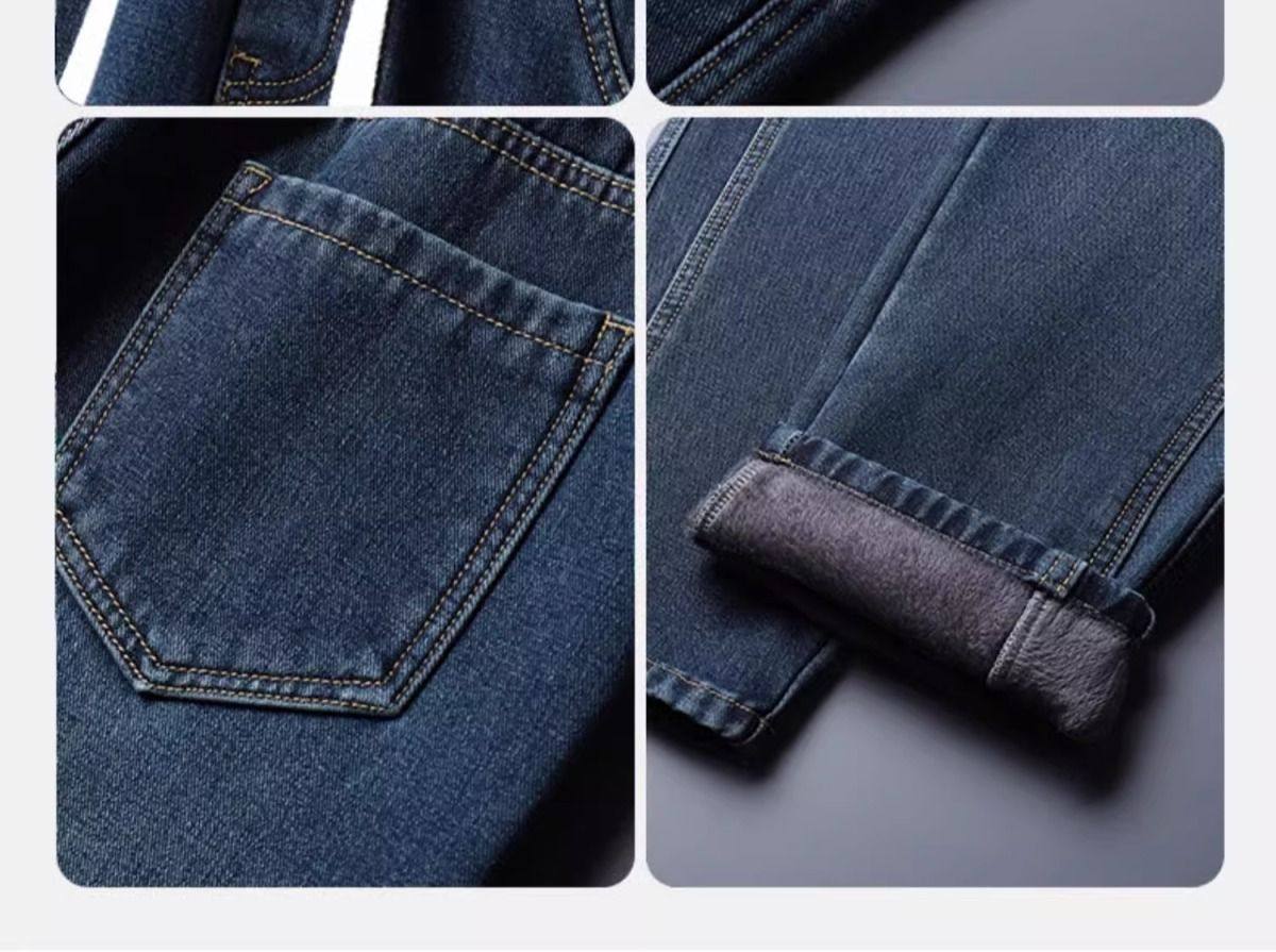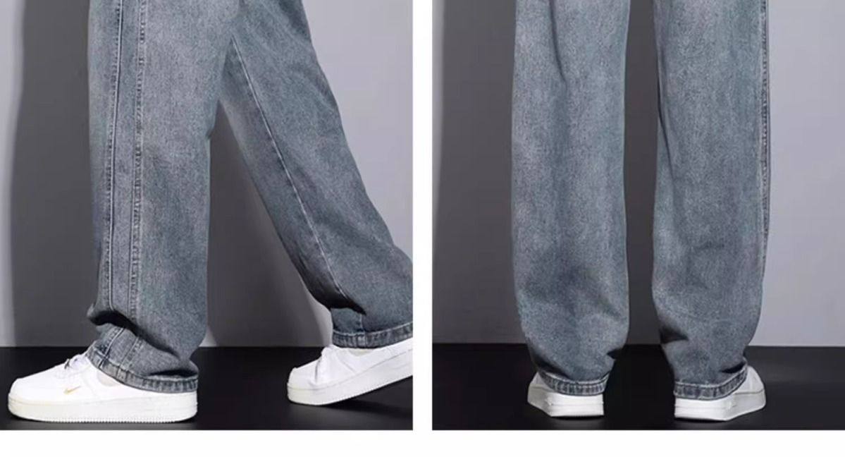 美式復古濶腿男士牛仔褲直筒加絨加厚寬鬆秋冬季新款2024休閒長褲
