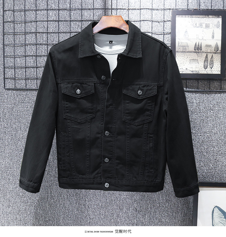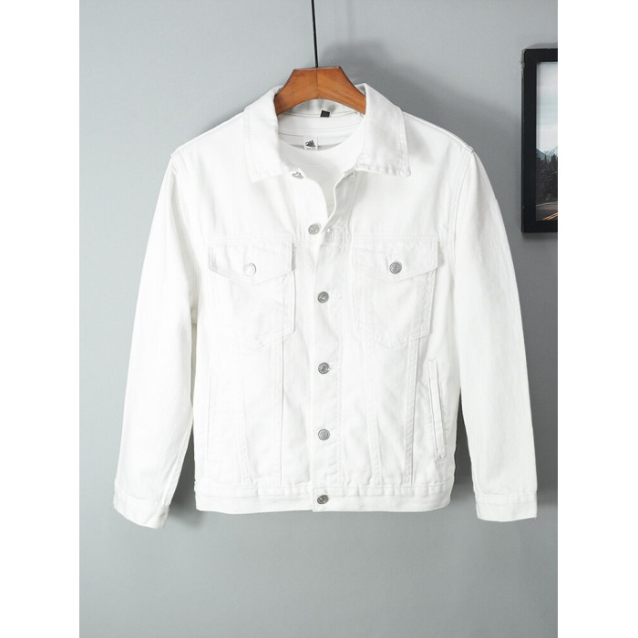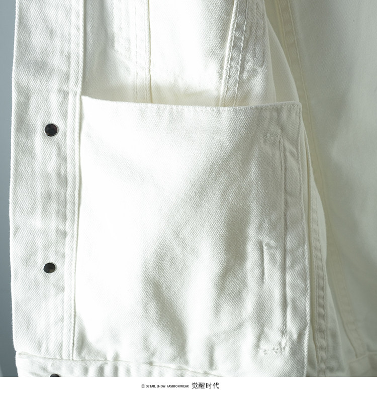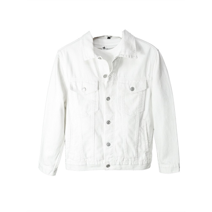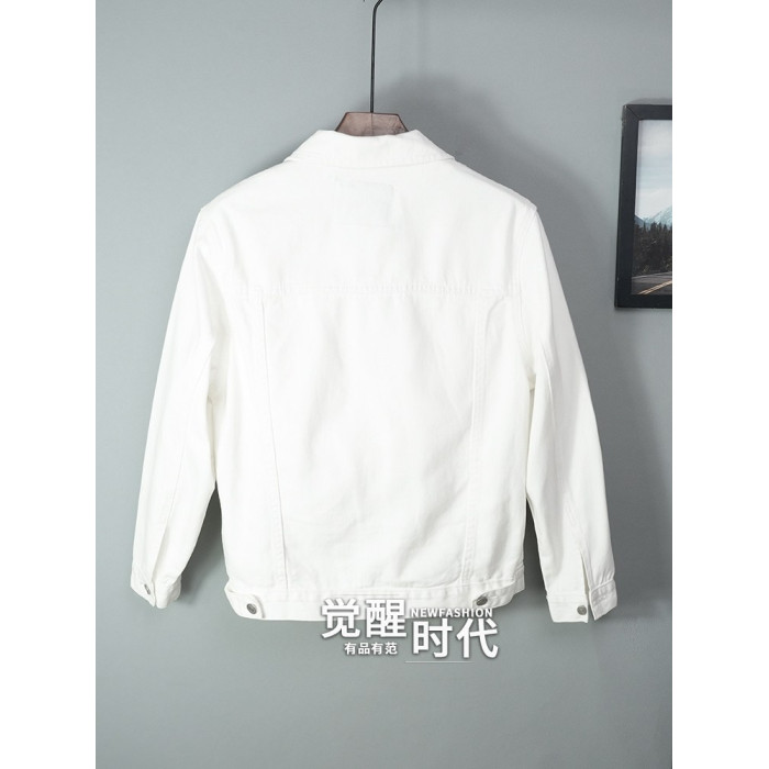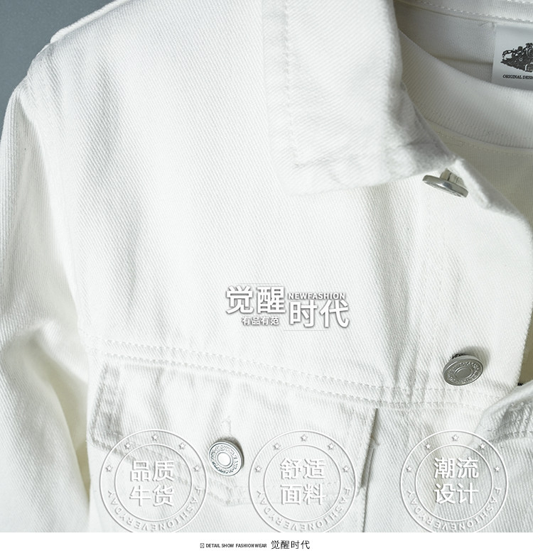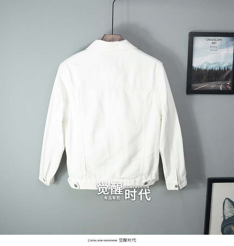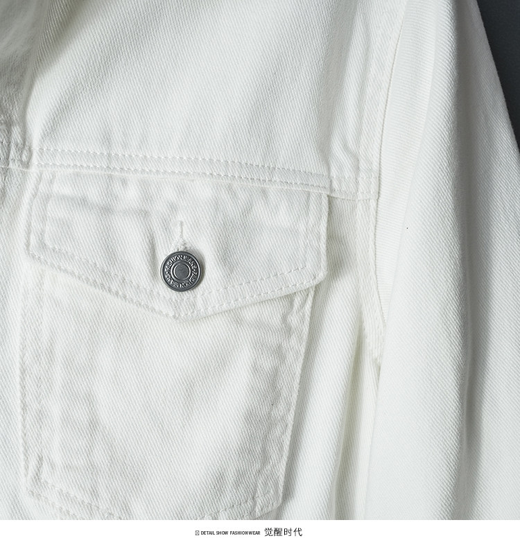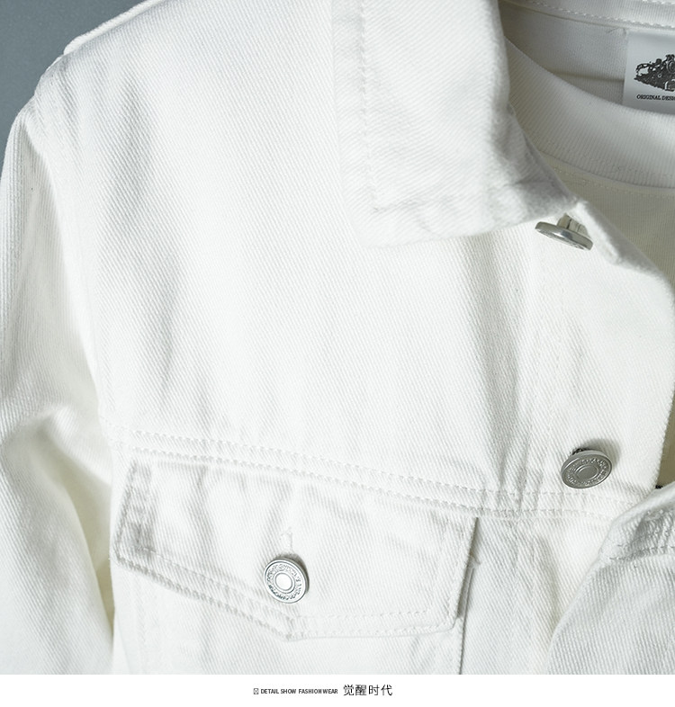 全棉春秋季純白牛仔外套男高級休閒夾克短款純棉白色上衣潮流新款