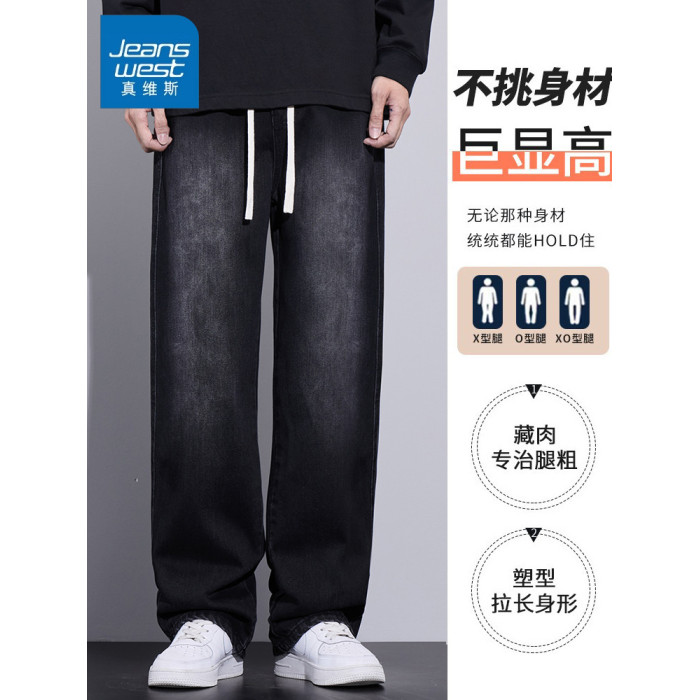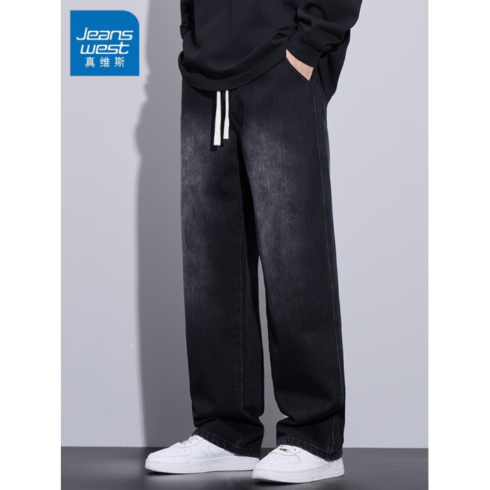 真維斯牛仔褲男士秋冬季新款黑色加絨加厚褲子休閒男褲冬直筒長褲
