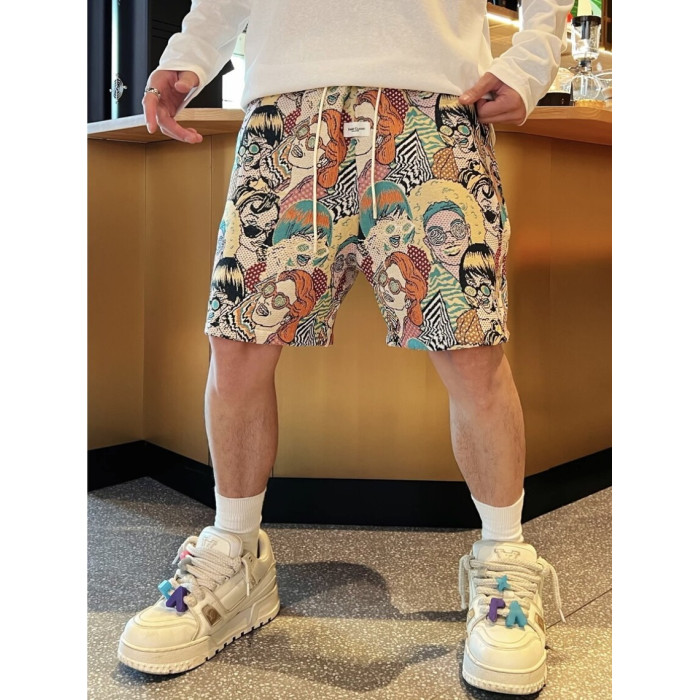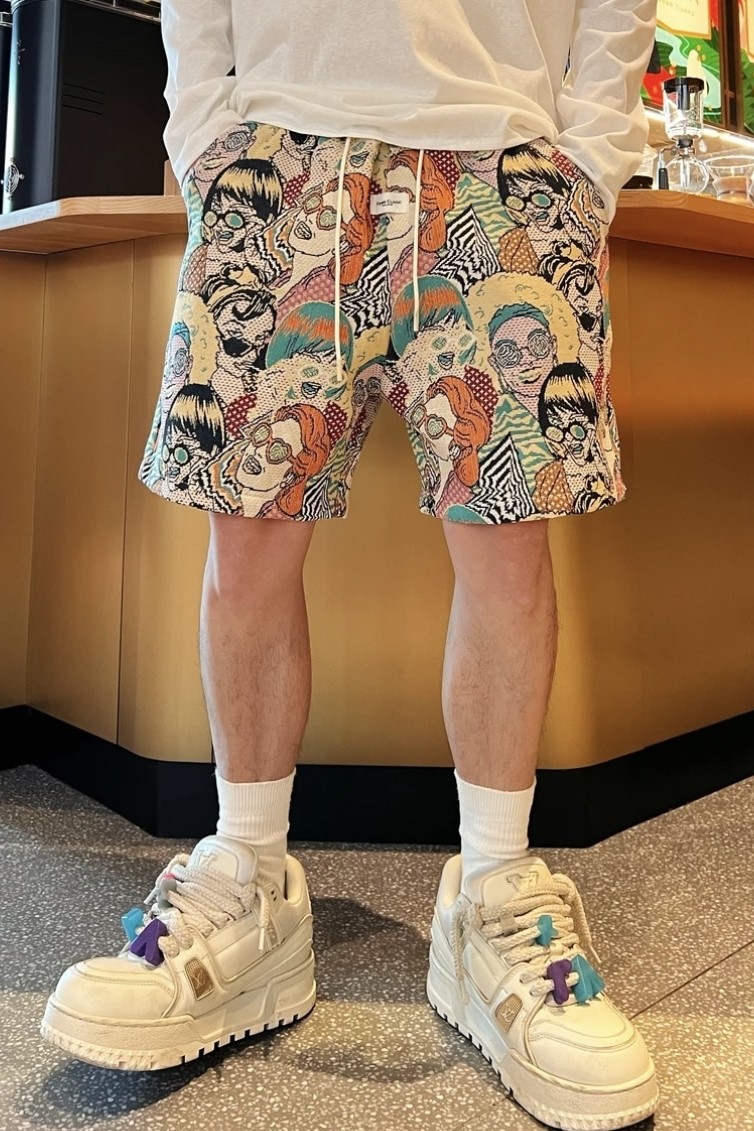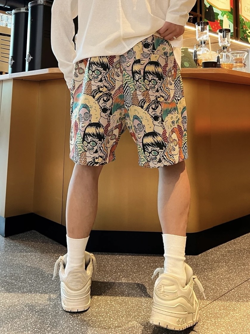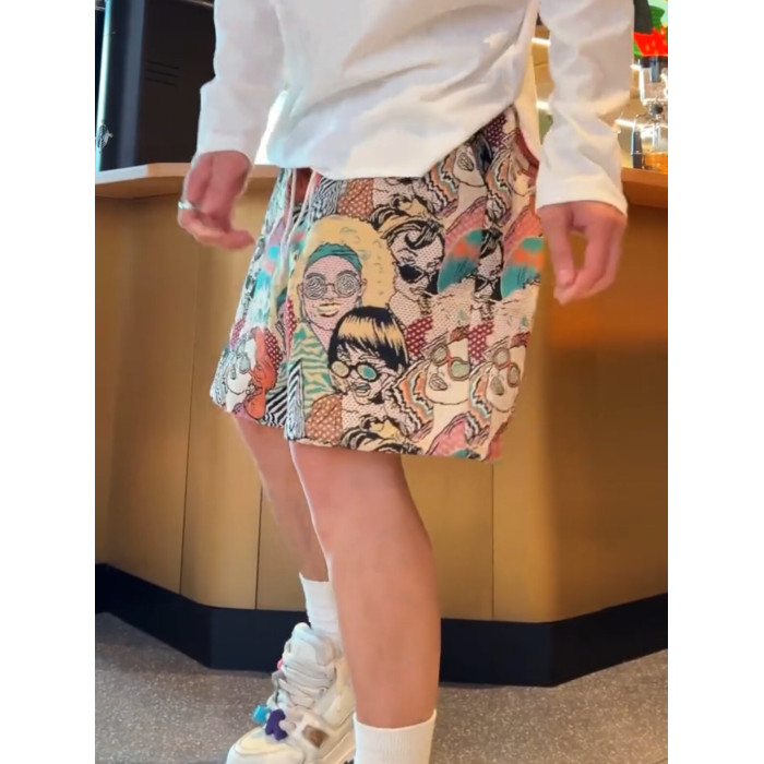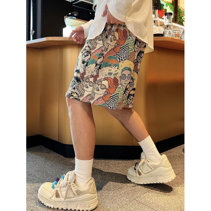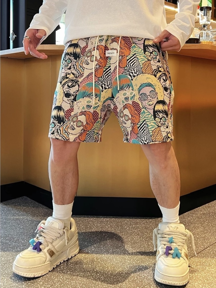 夏季潮牌滿印卡通人物提花休閒短褲男時尚透氣百搭寬鬆運動五分褲