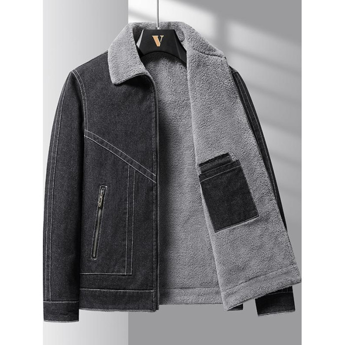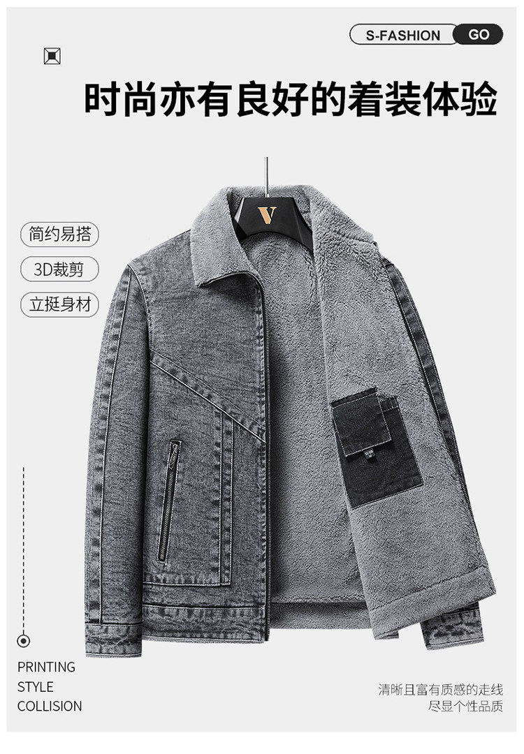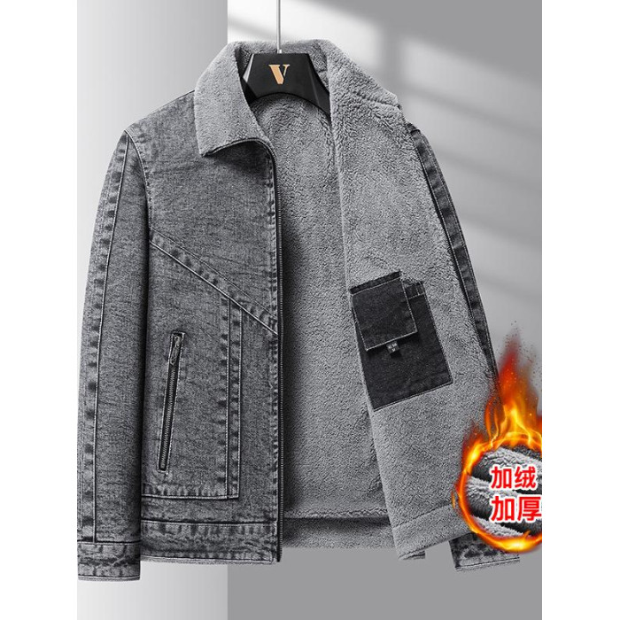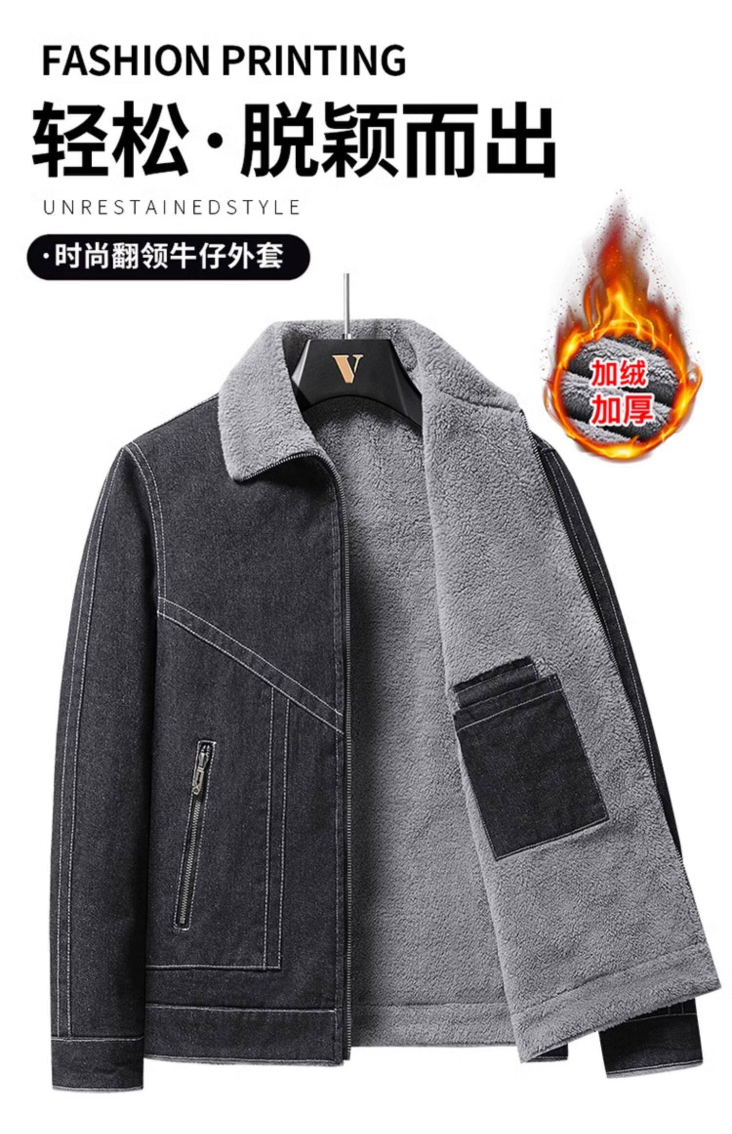 冬季加絨牛仔外套男士寬鬆加厚款夾克大碼青年棉衣保暖棉服上衣潮