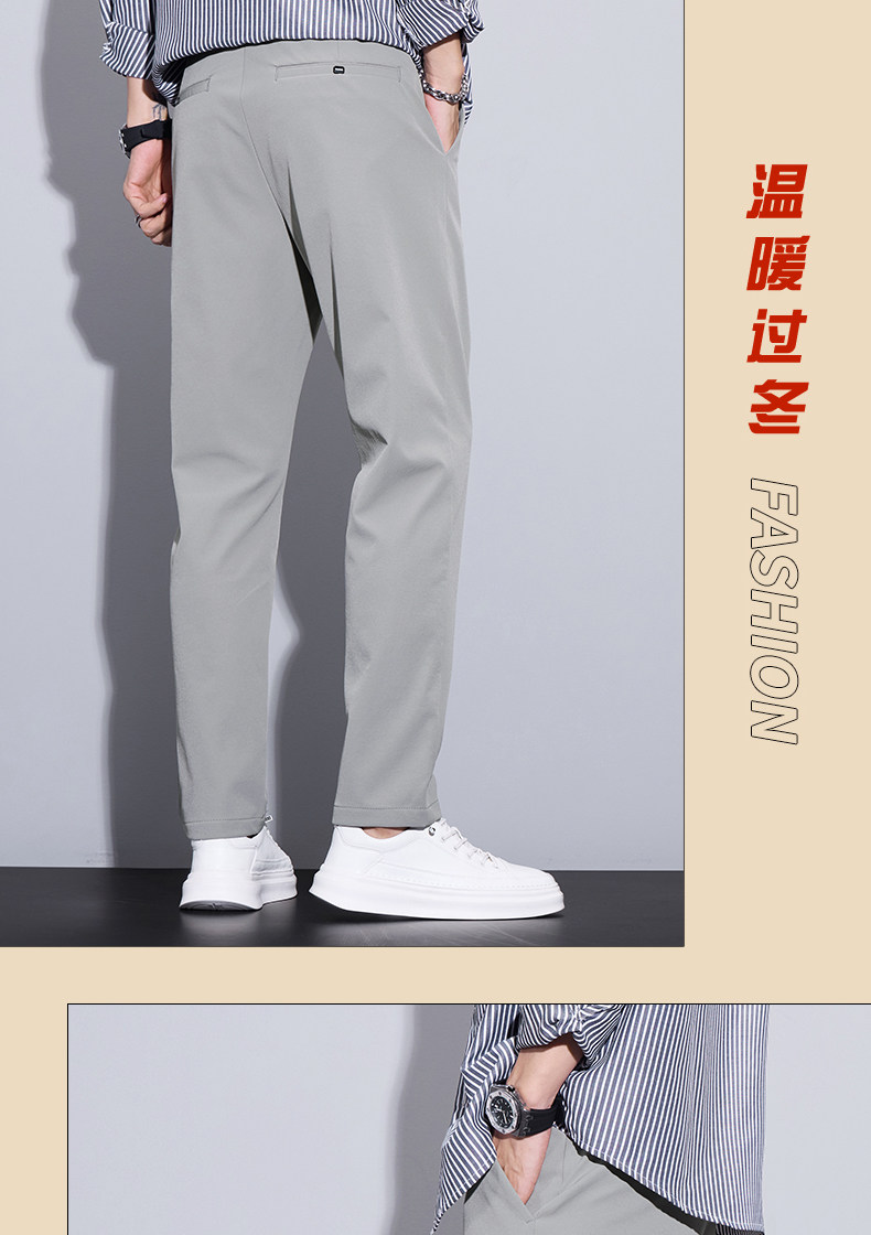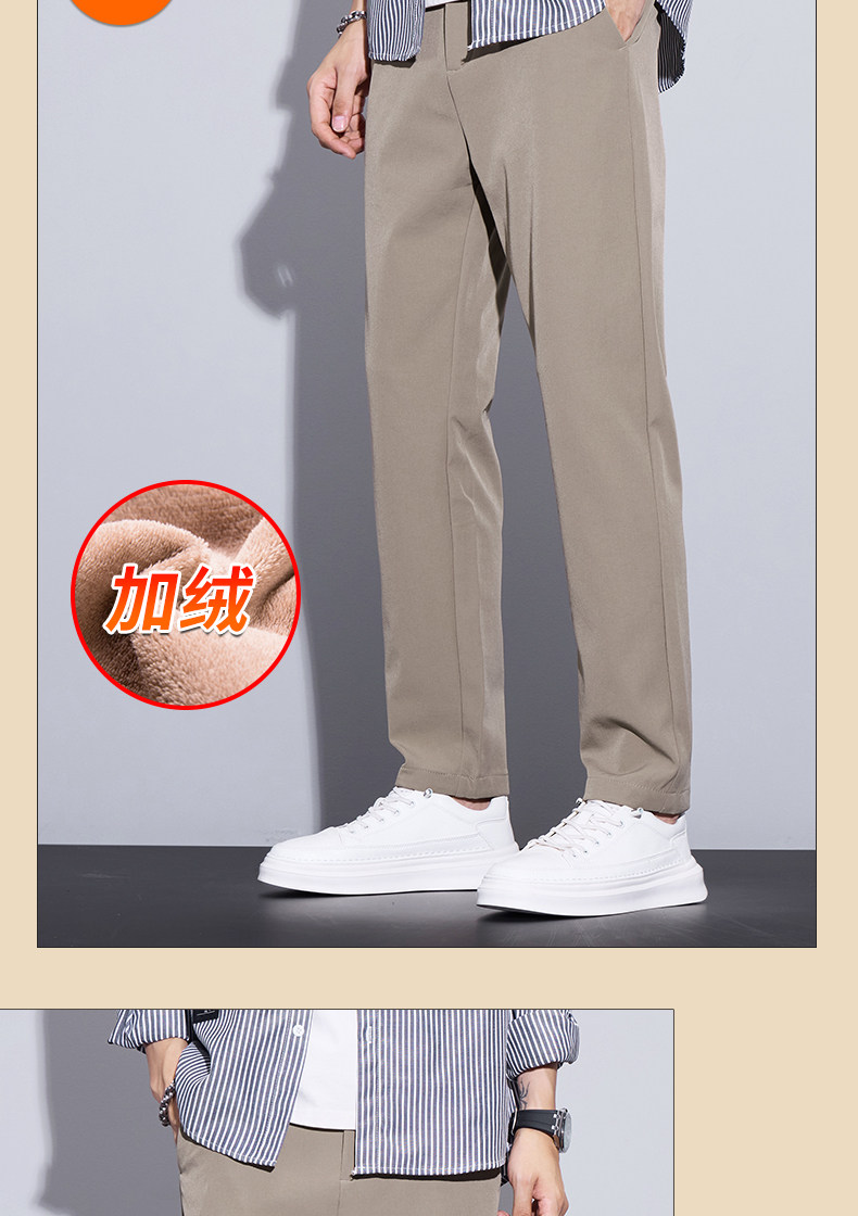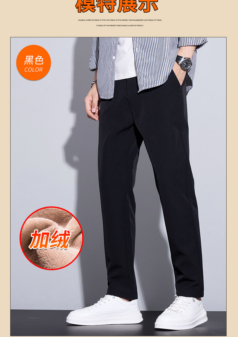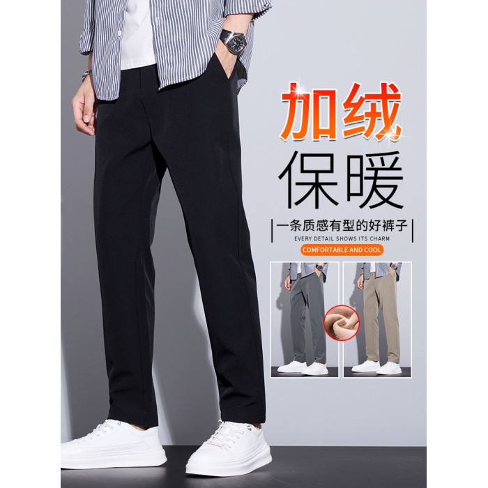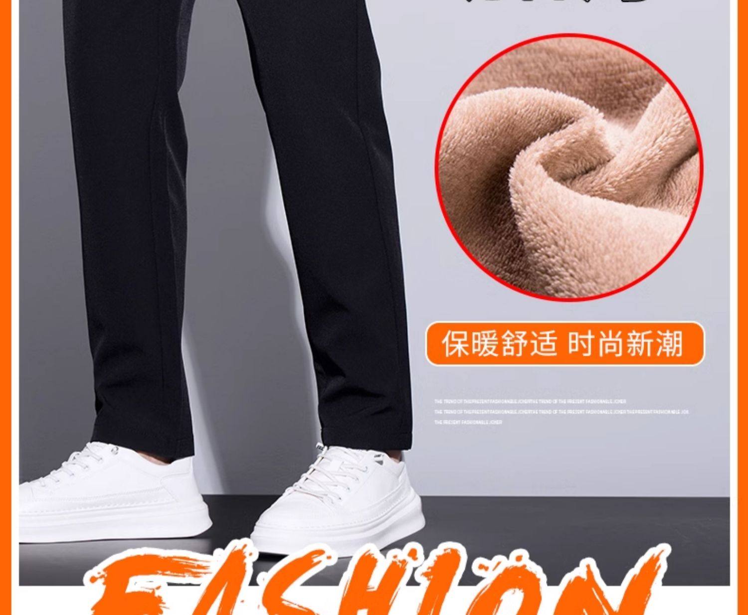 加絨褲子男款秋冬季修身直筒西褲商務黑色長褲加厚保暖男士休閒褲