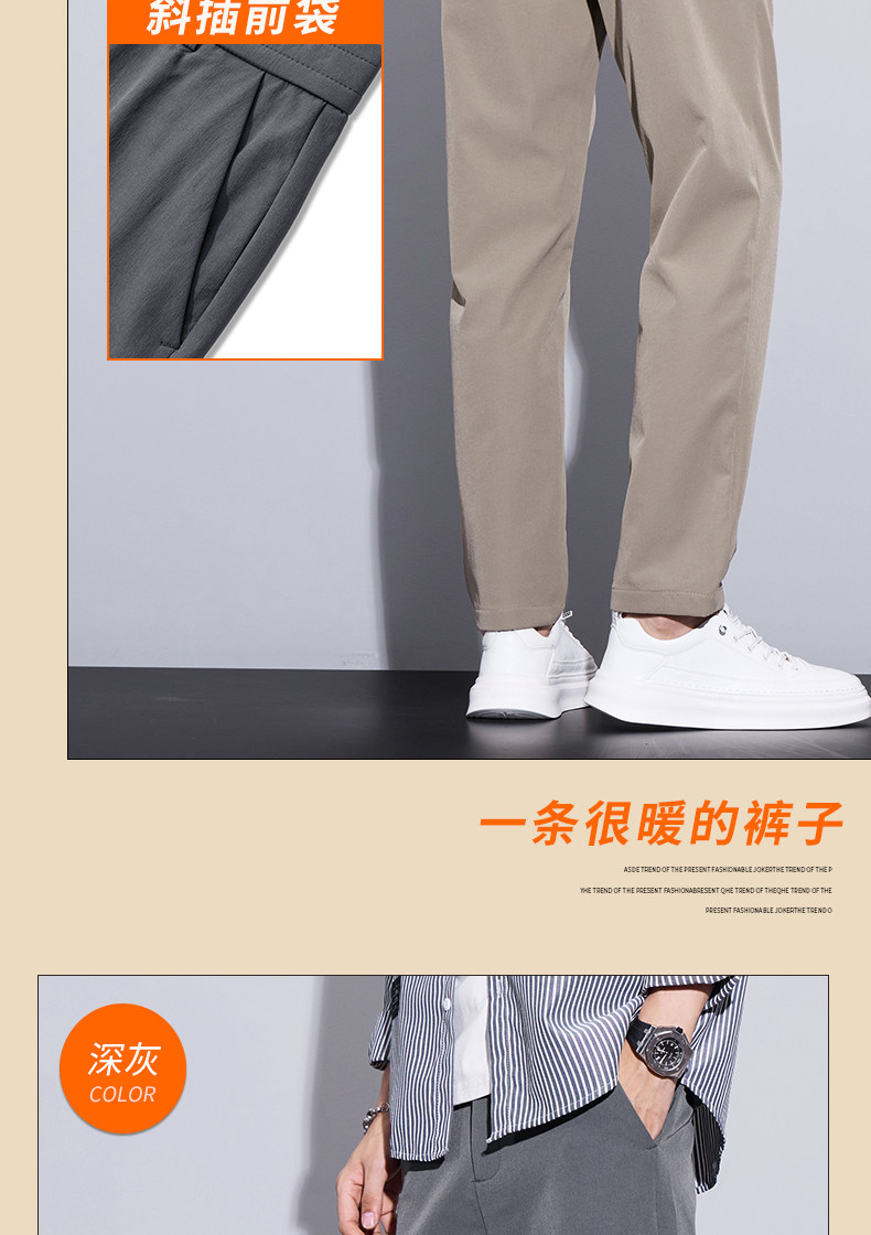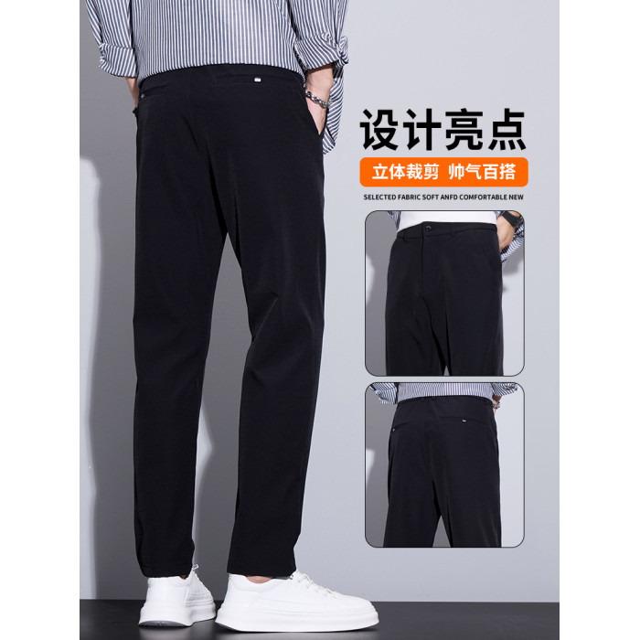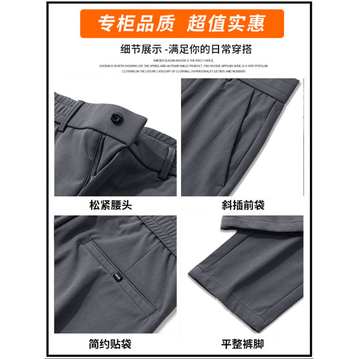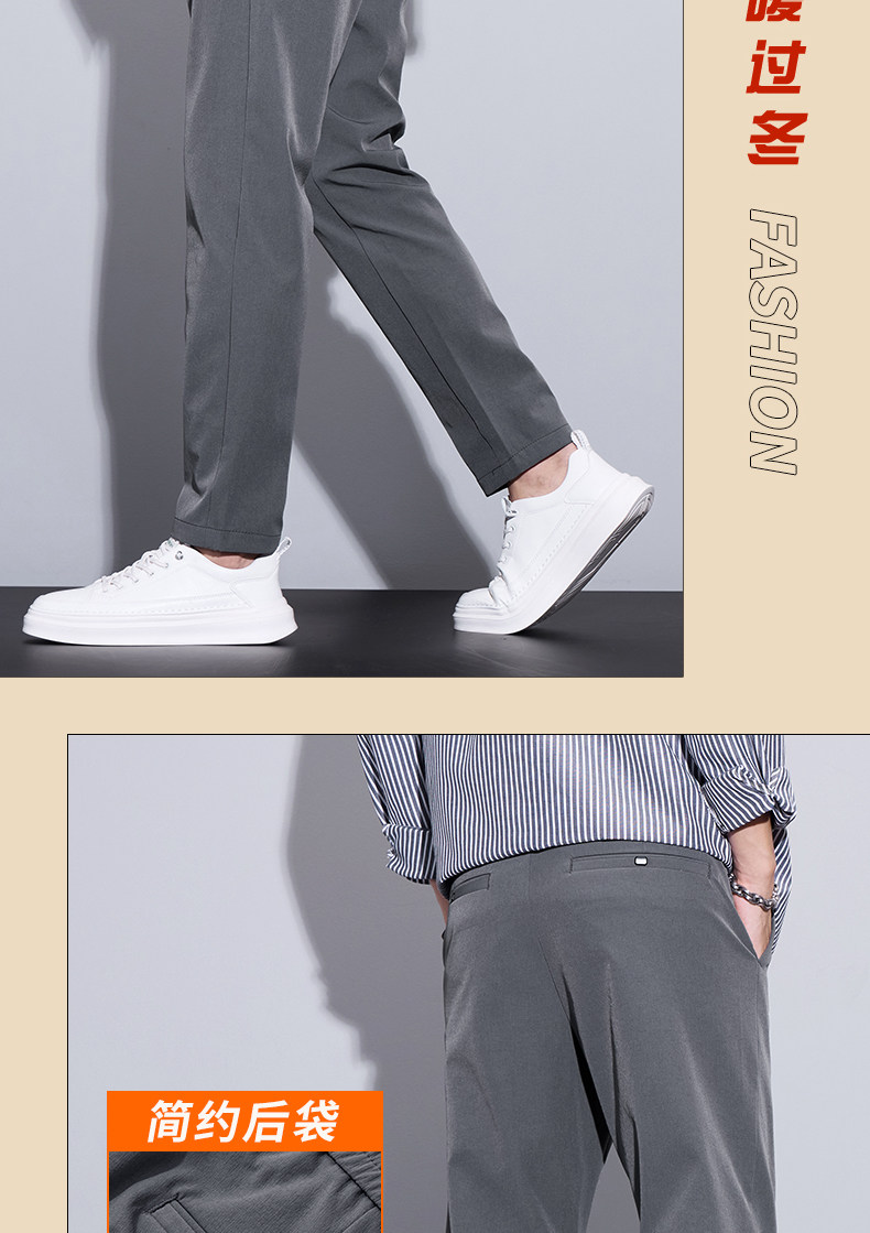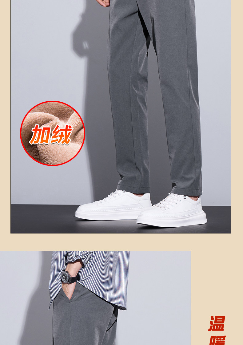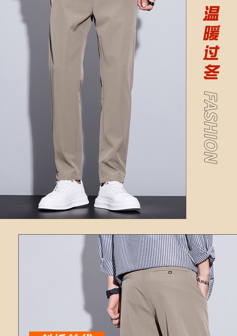 加絨褲子男款秋冬季修身直筒西褲商務黑色長褲加厚保暖男士休閒褲