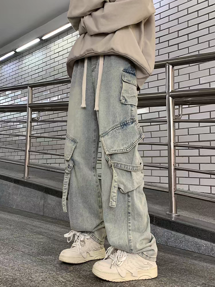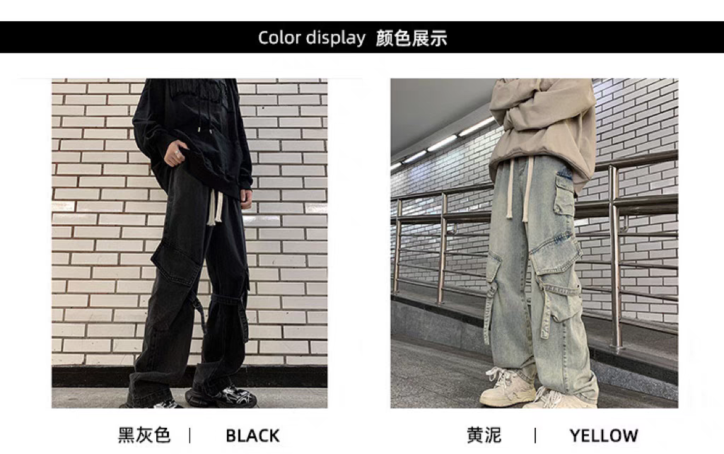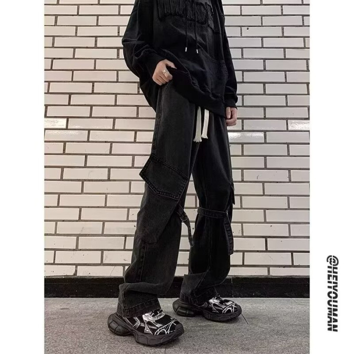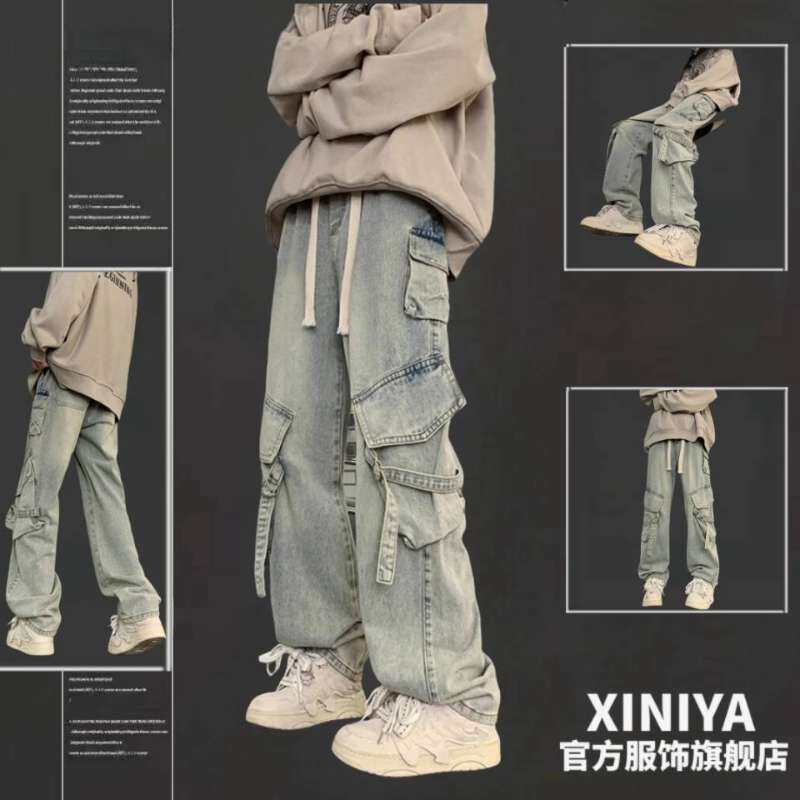 美式工裝牛仔褲男2025新款潮牌直筒微喇褲子vibe復古寬鬆濶腿長褲