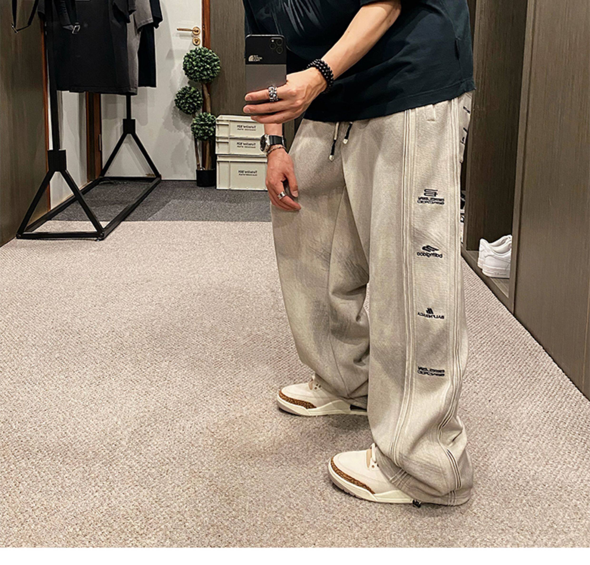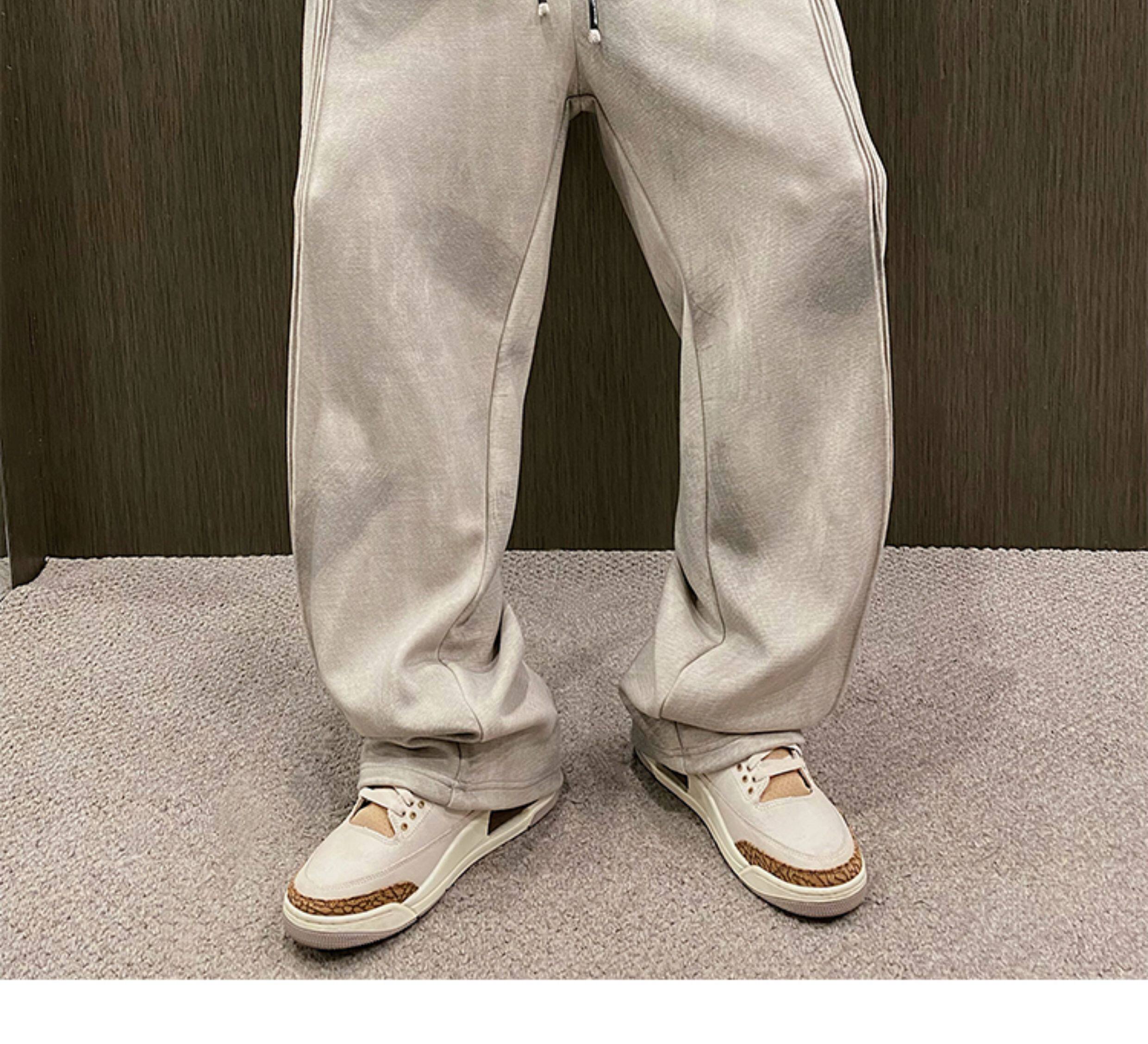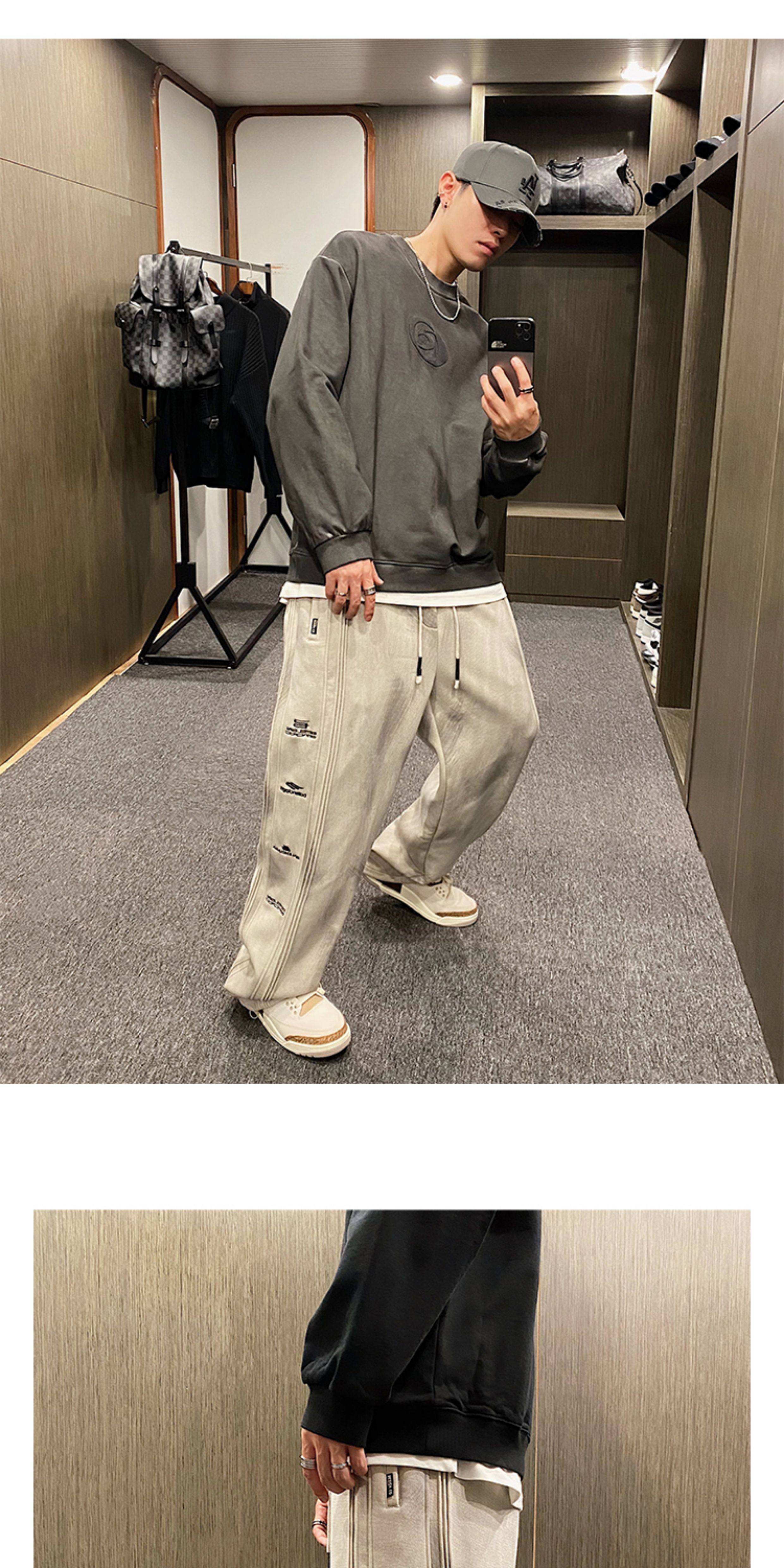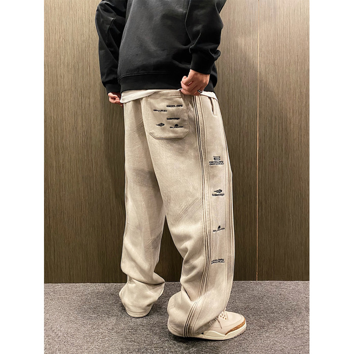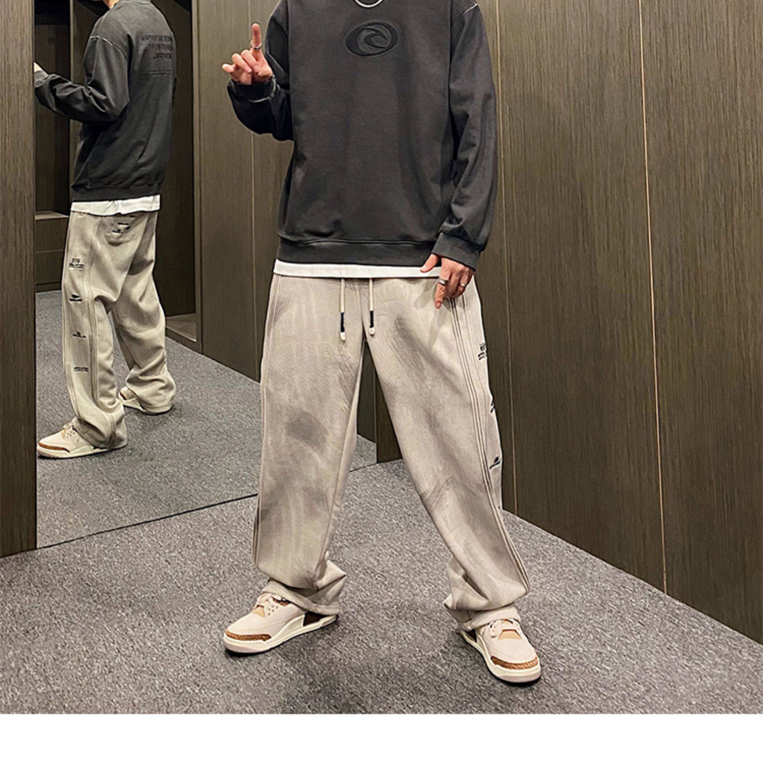 MXD UGLY美式潮牌復古做舊水洗髒髒灰直筒褲男秋冬季加絨抽繩衛褲