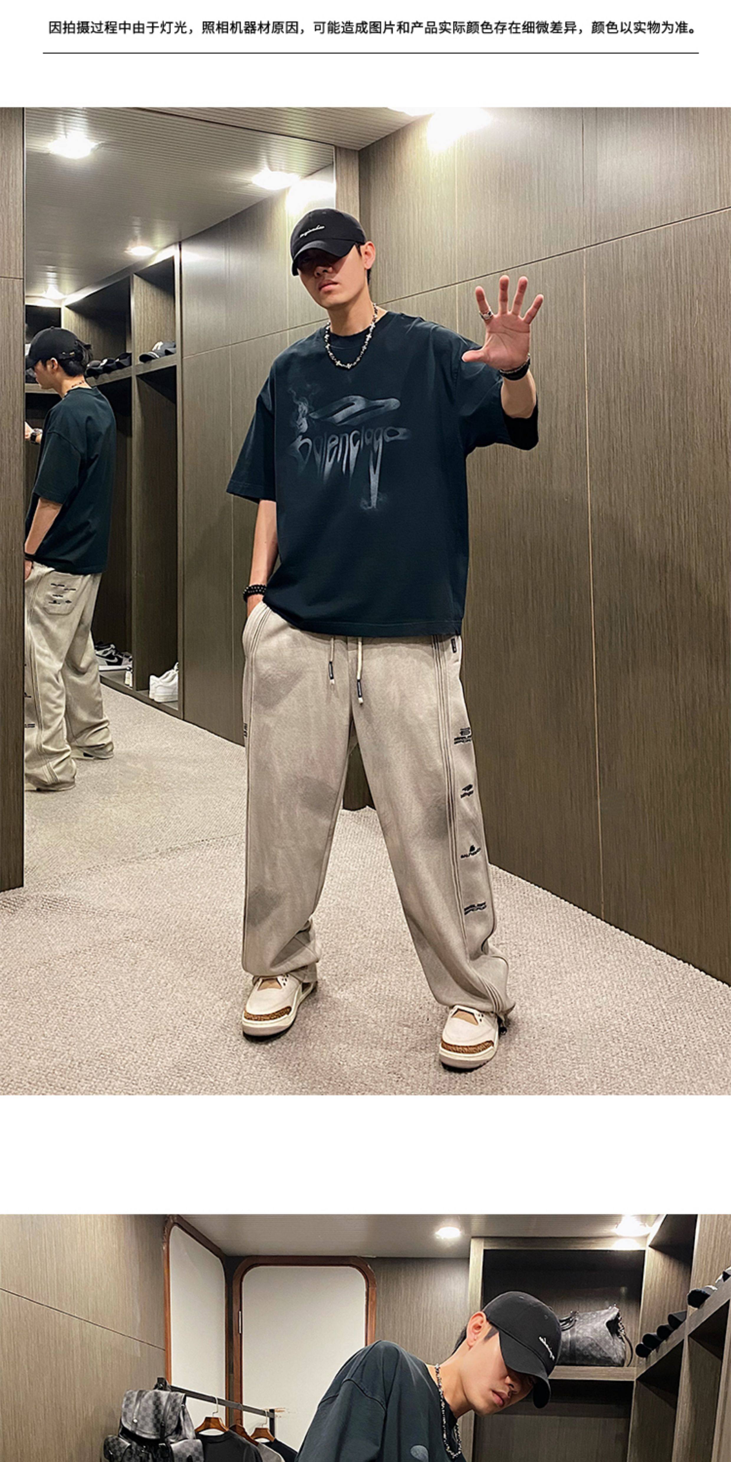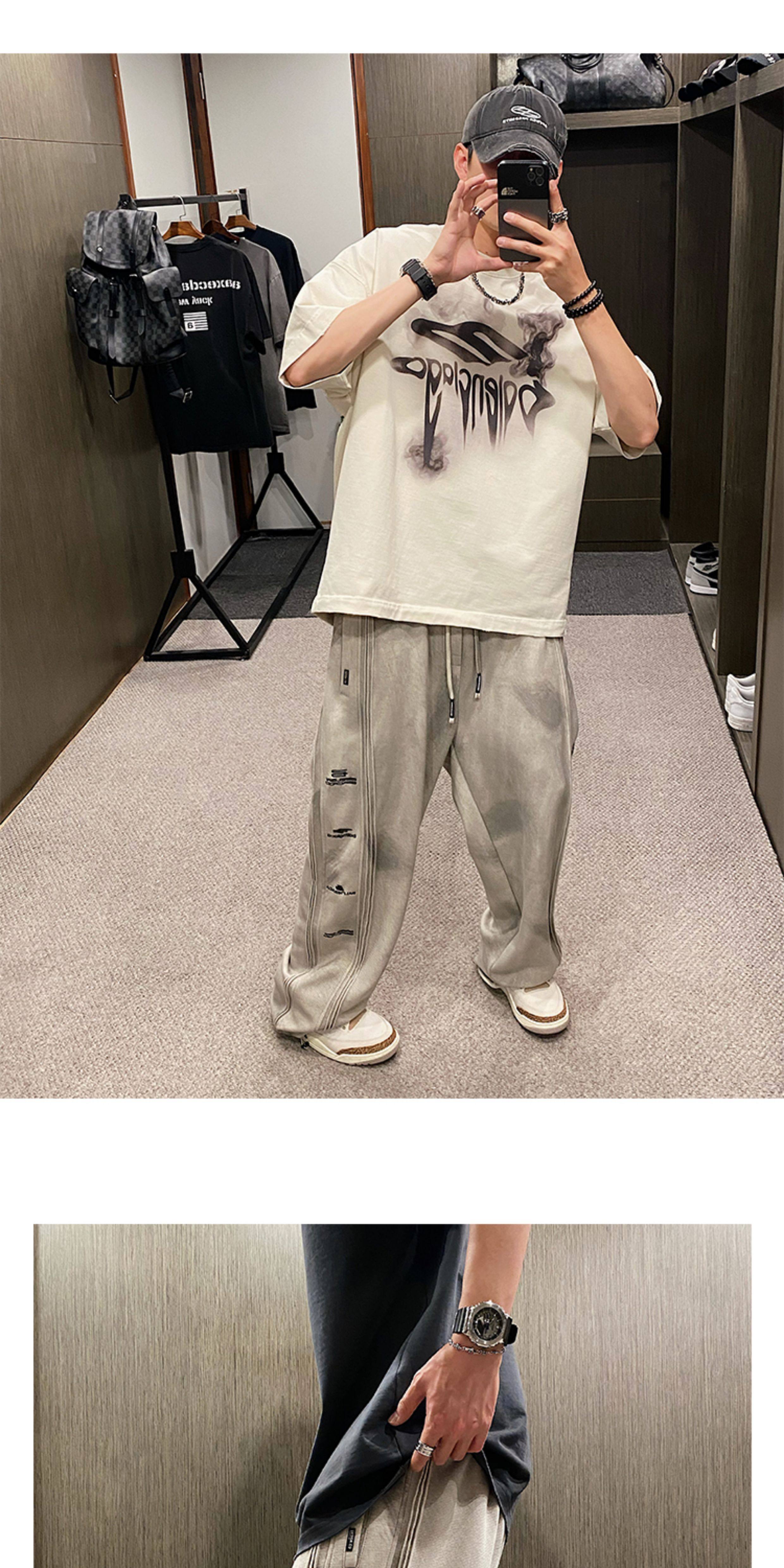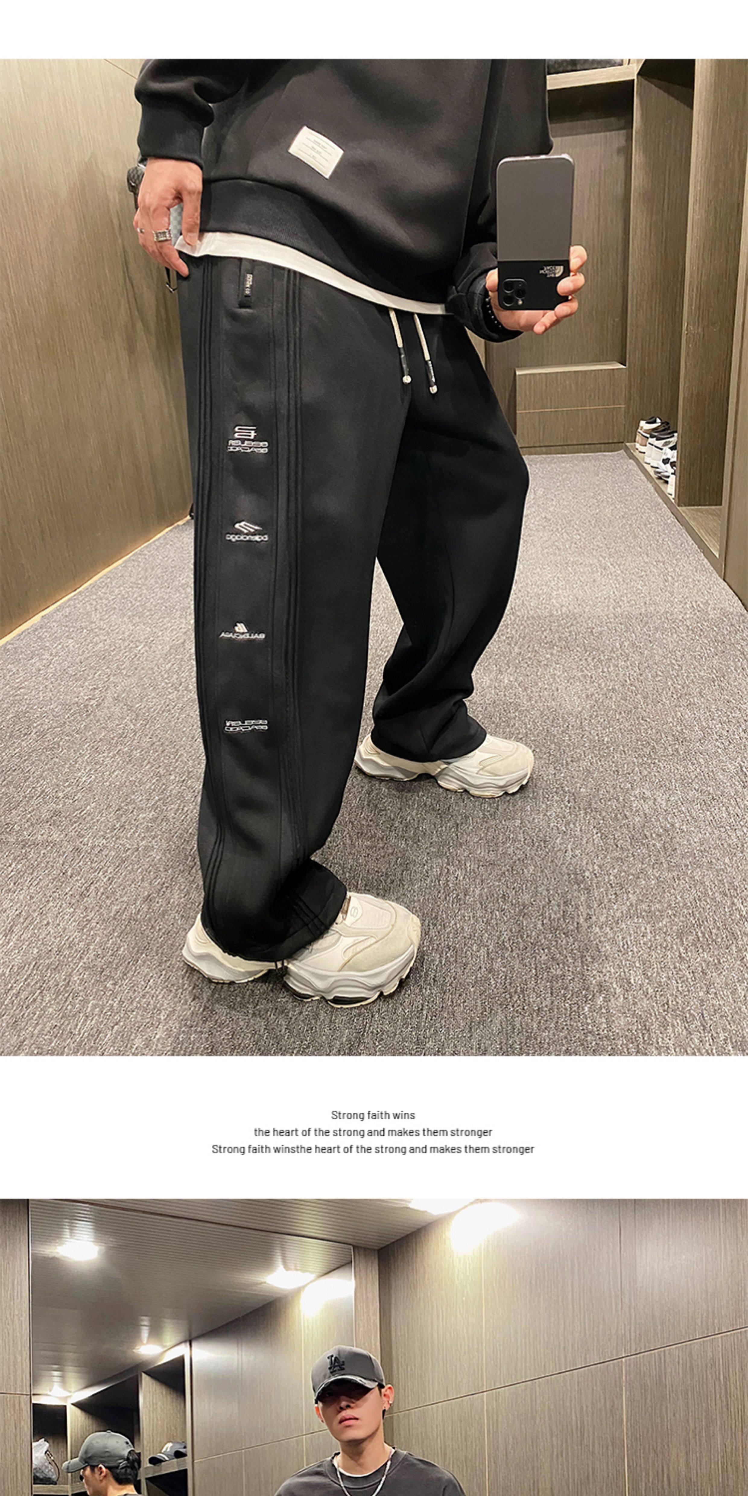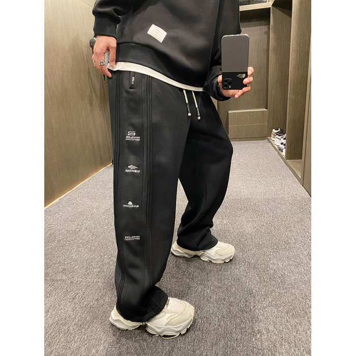 MXD UGLY美式潮牌復古做舊水洗髒髒灰直筒褲男秋冬季加絨抽繩衛褲