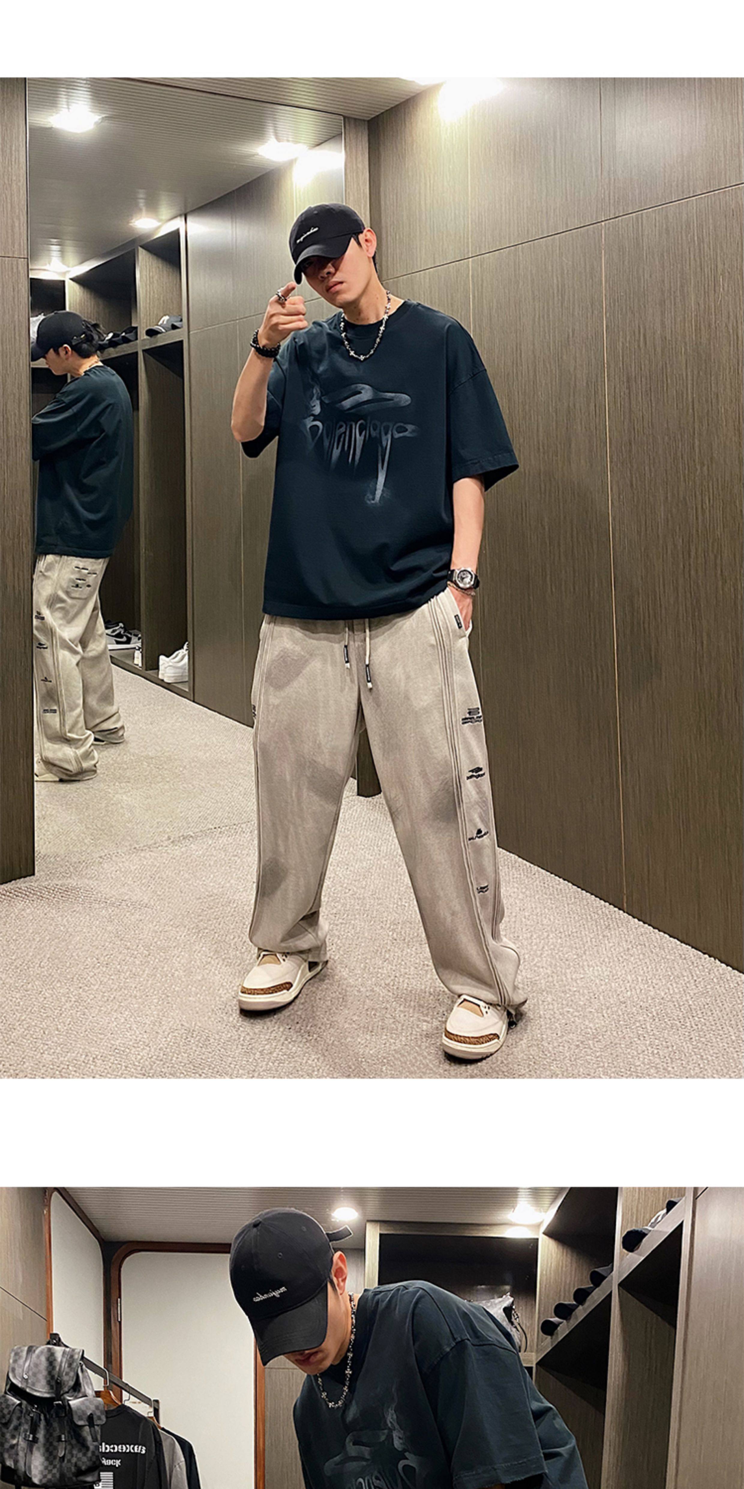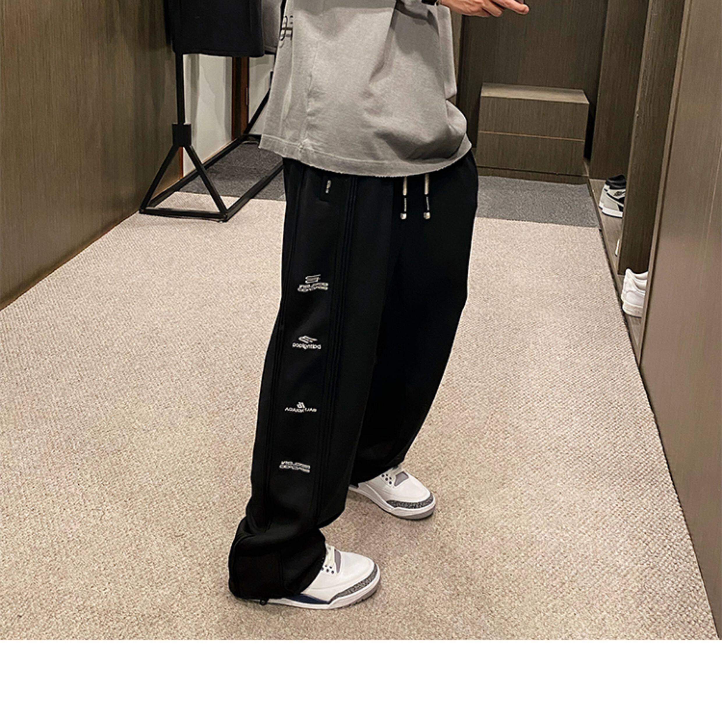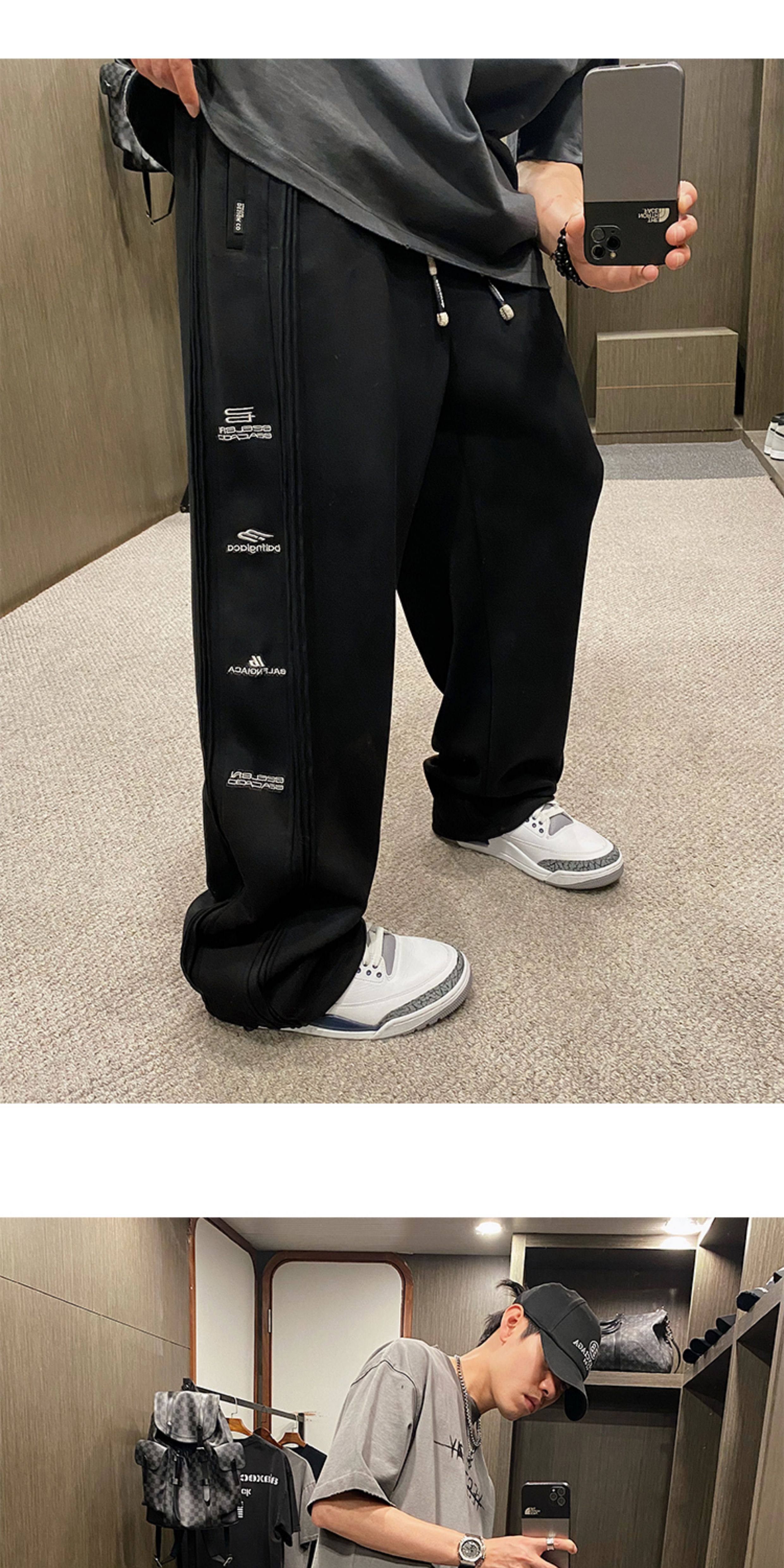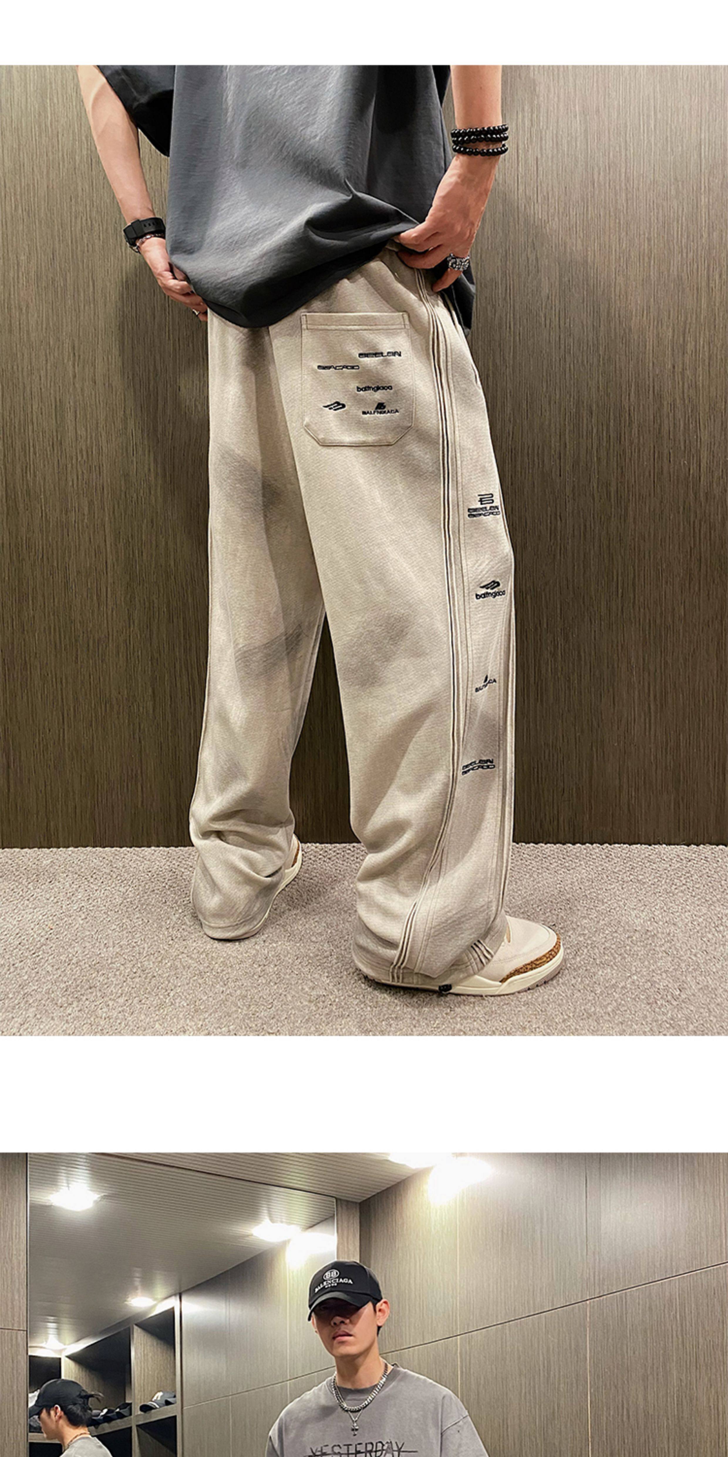 MXD UGLY美式潮牌復古做舊水洗髒髒灰直筒褲男秋冬季加絨抽繩衛褲