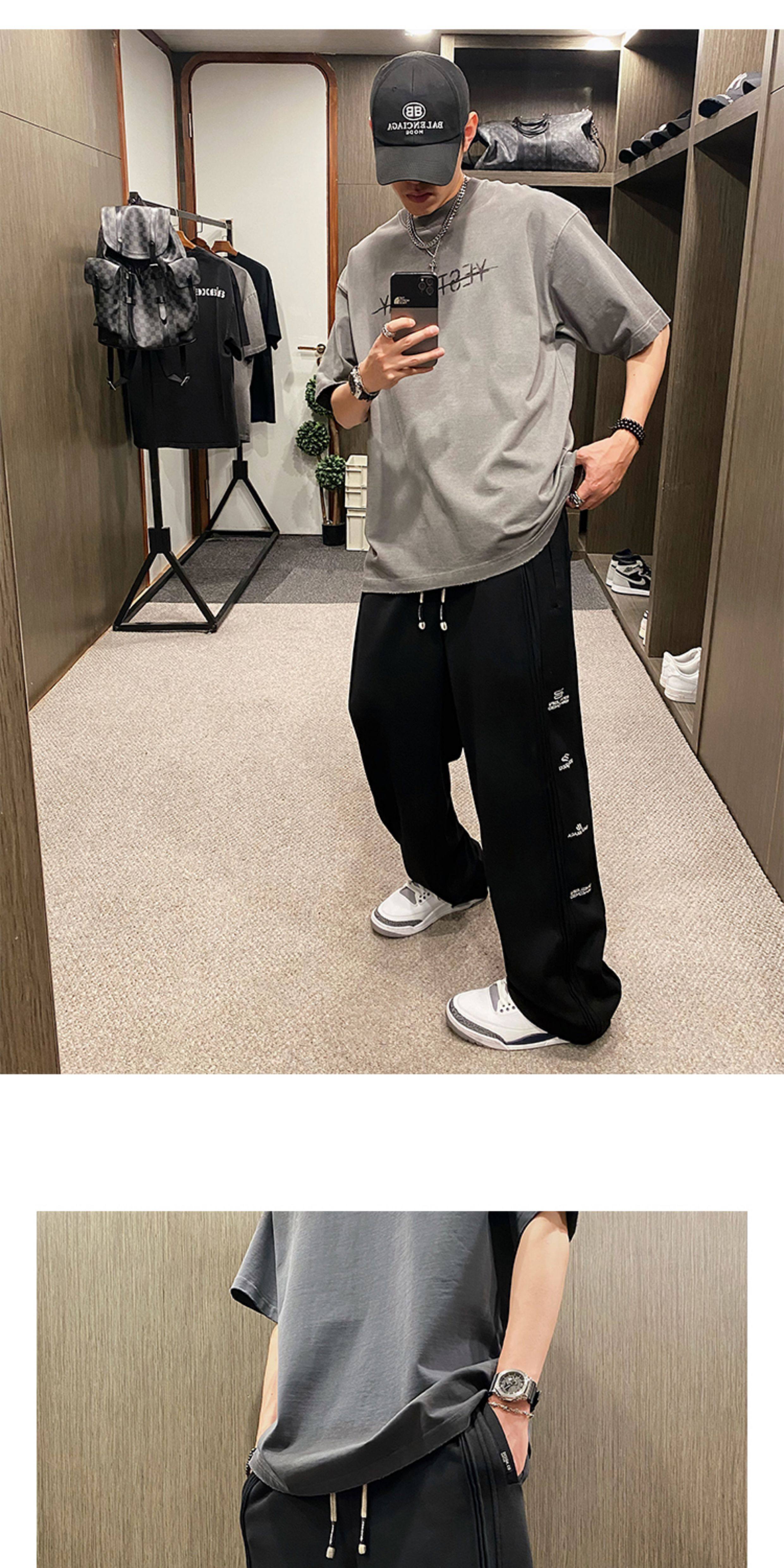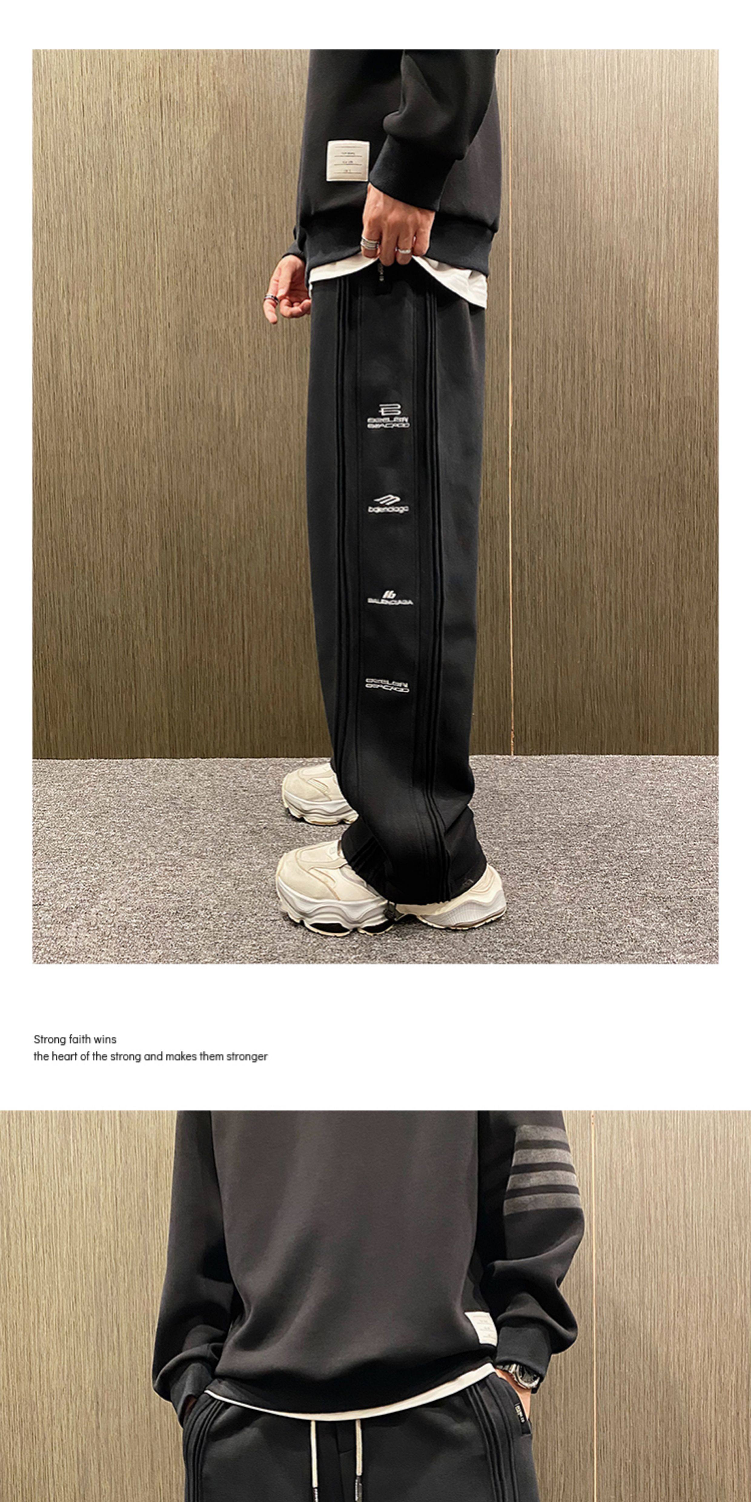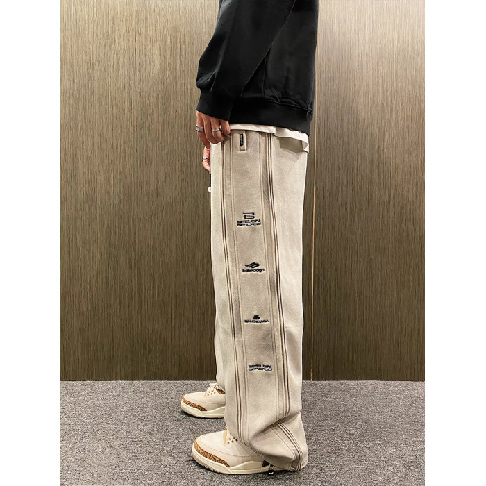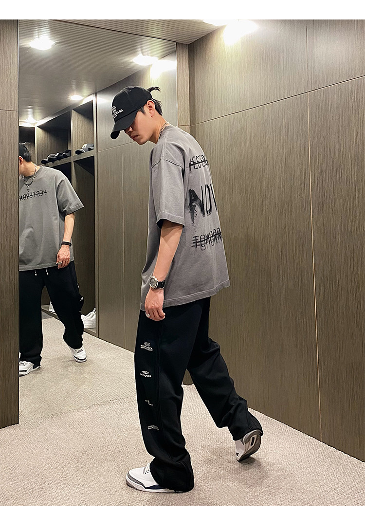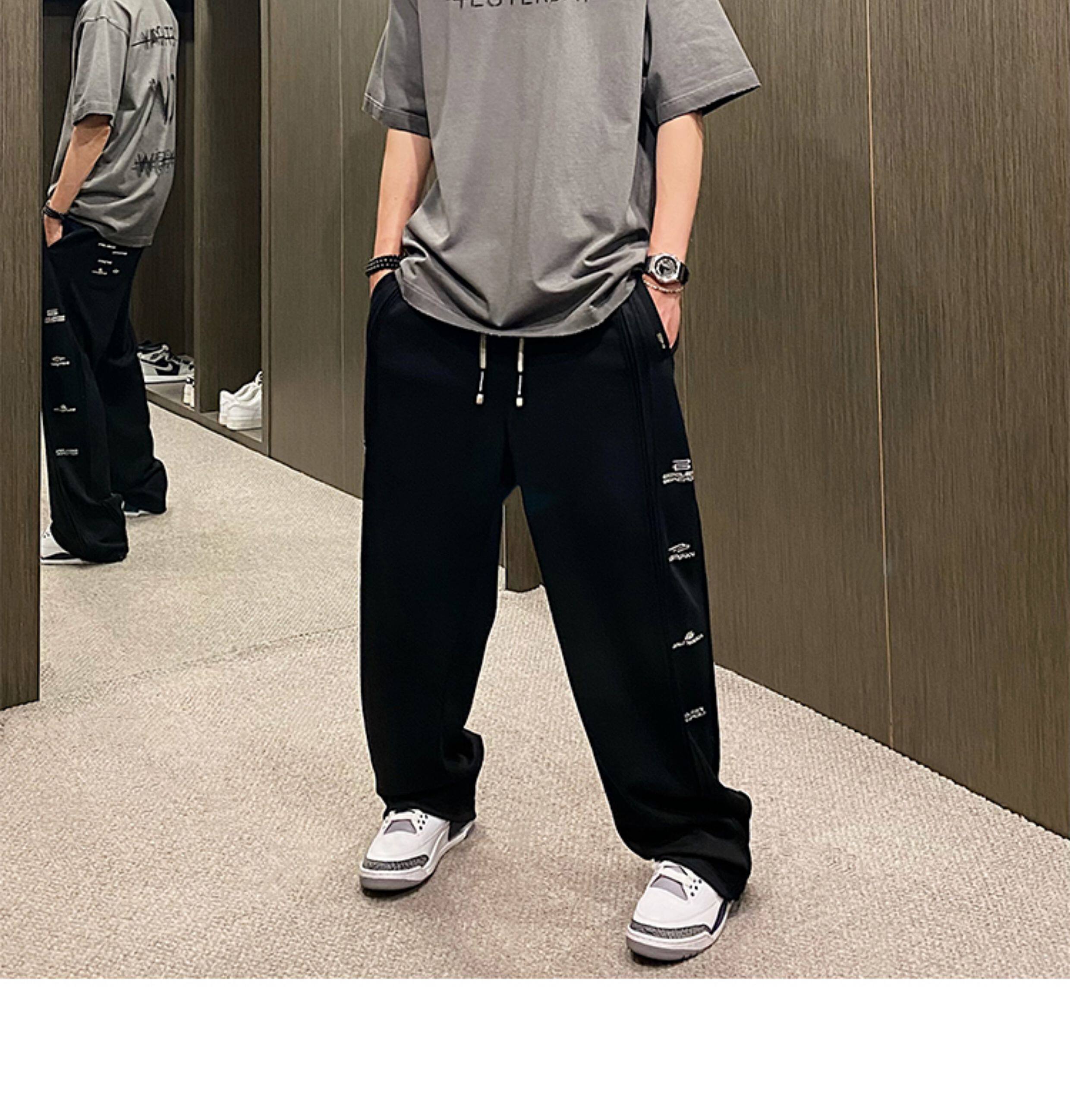 MXD UGLY美式潮牌復古做舊水洗髒髒灰直筒褲男秋冬季加絨抽繩衛褲