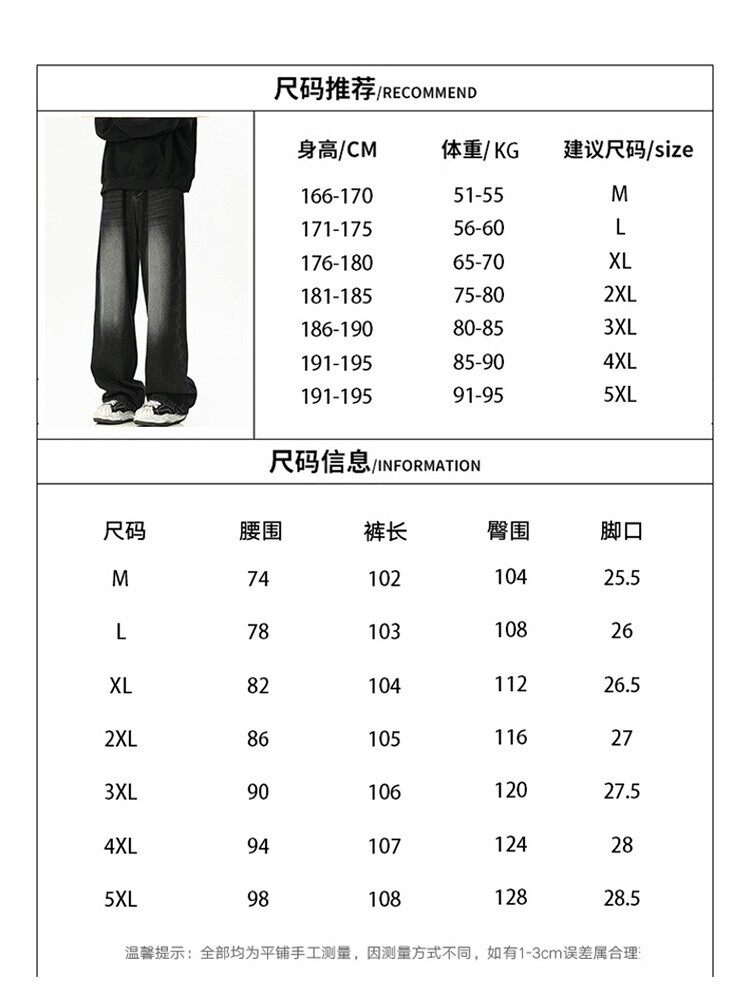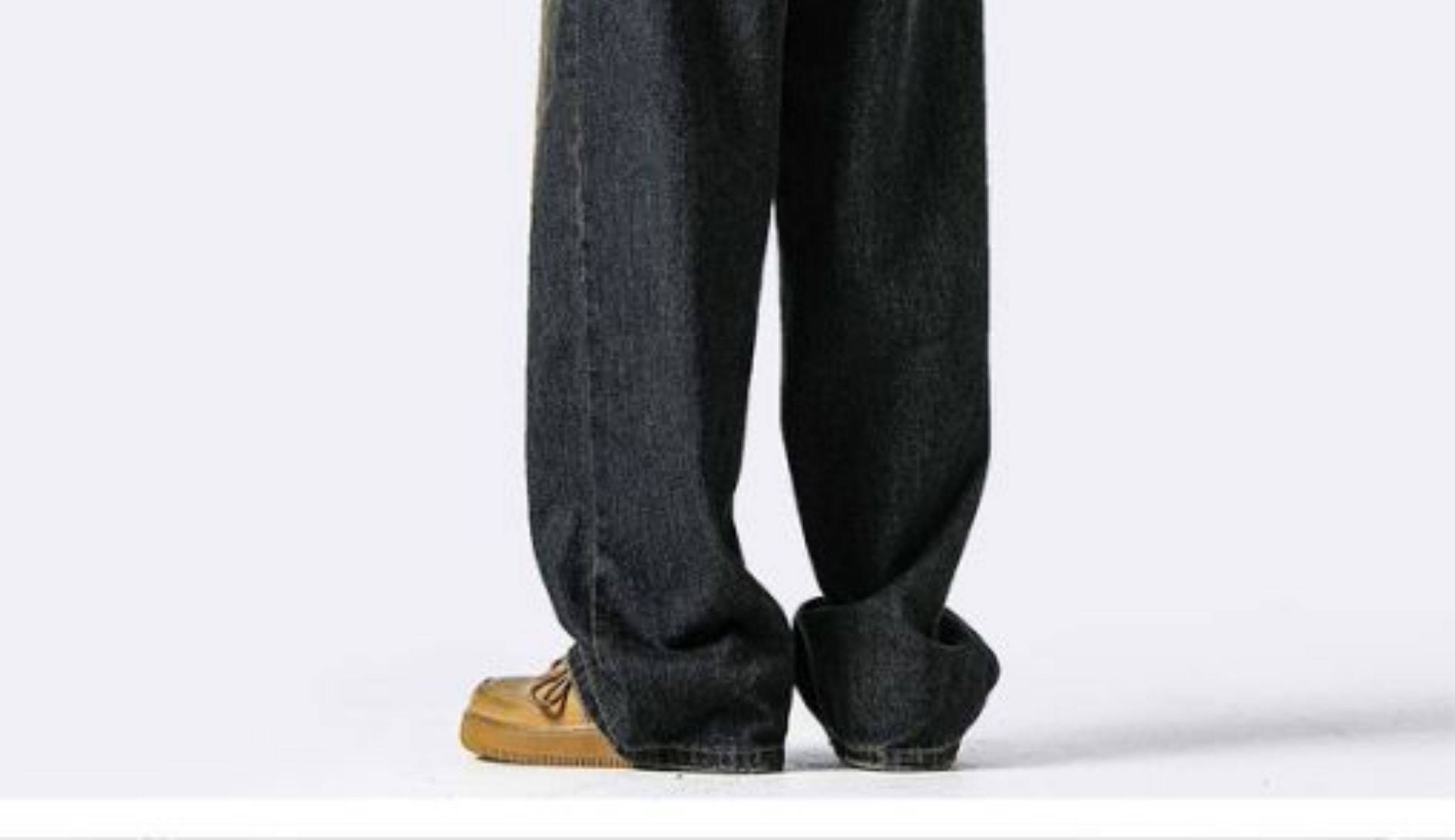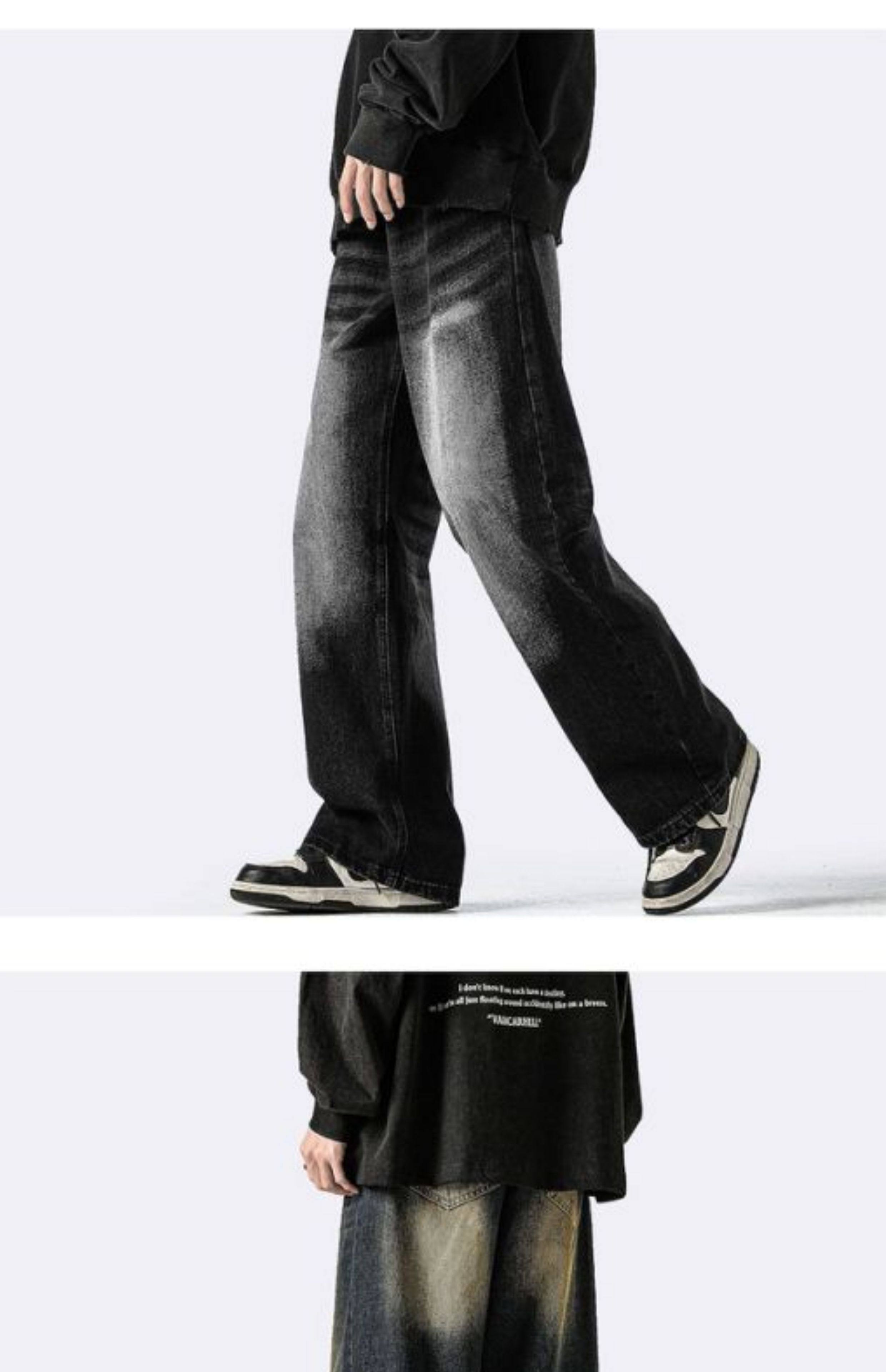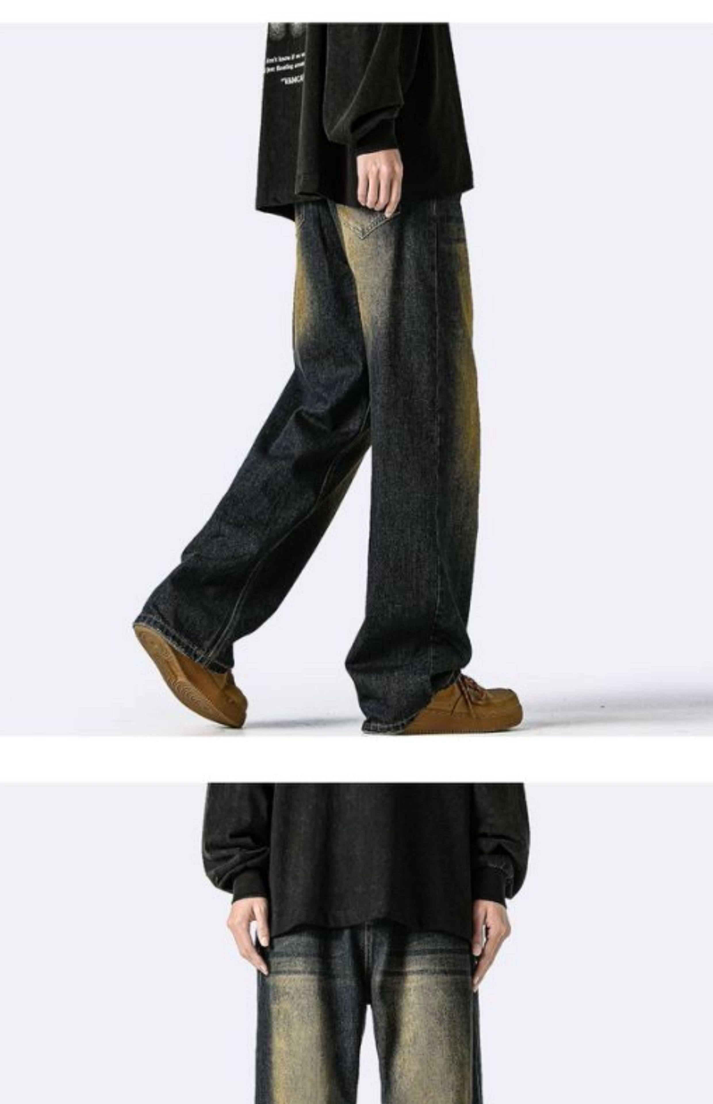 WASSUP KOI復古做舊水洗直筒牛仔褲男秋季美式高街寬鬆濶腿褲子潮