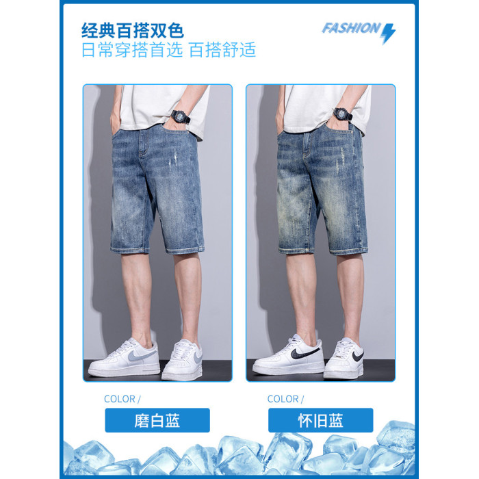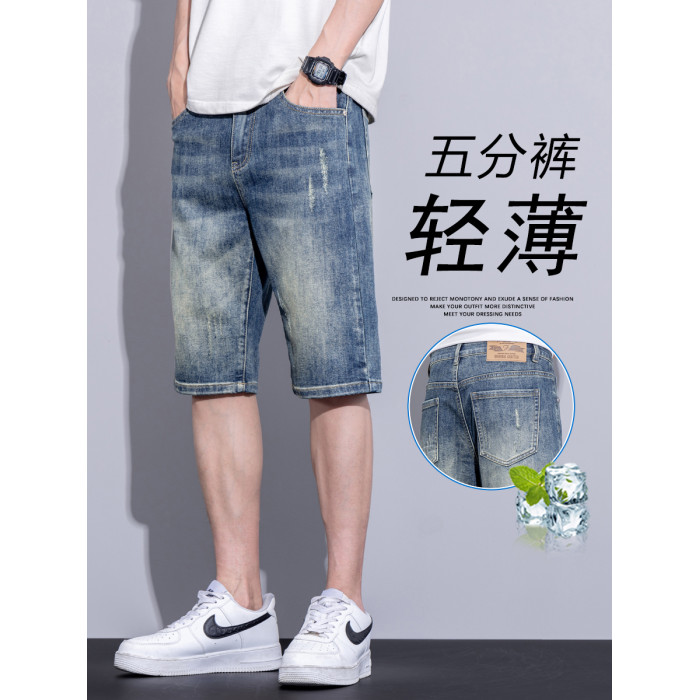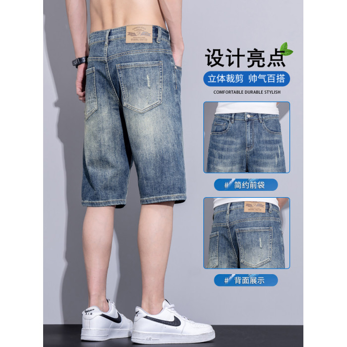 牛仔短褲男士夏季薄款寬鬆直筒五分褲子男生夏天百搭休閒中褲馬褲