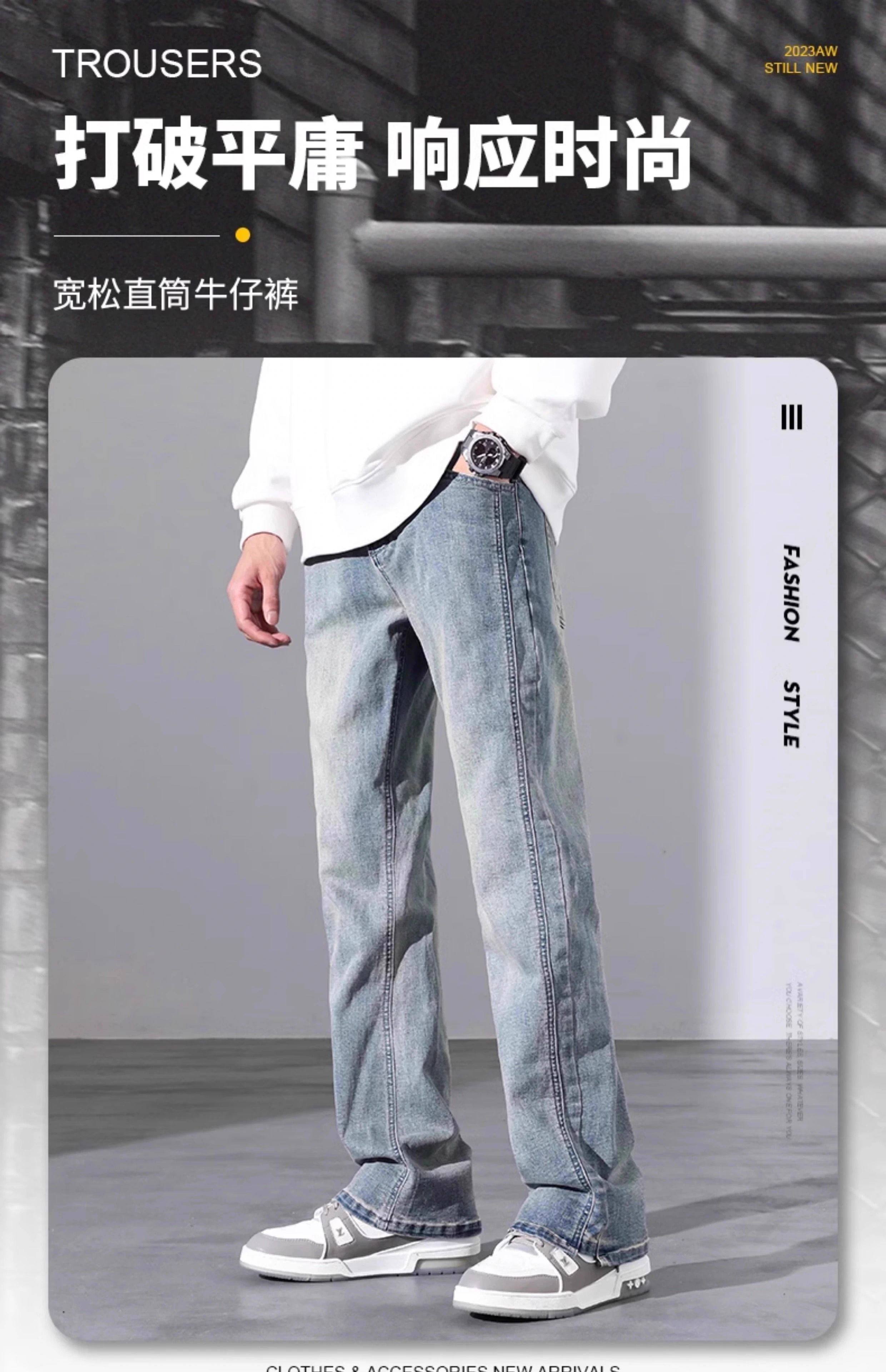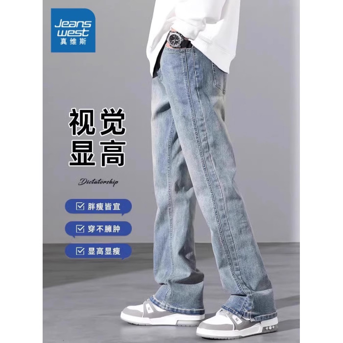 真維斯牛仔褲男士秋冬季2025新款美式微喇加絨寬鬆直筒長褲子男款