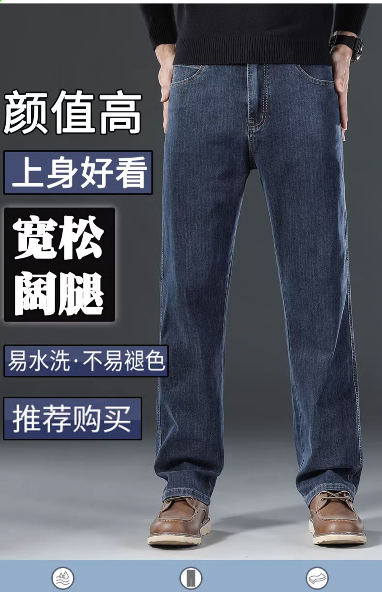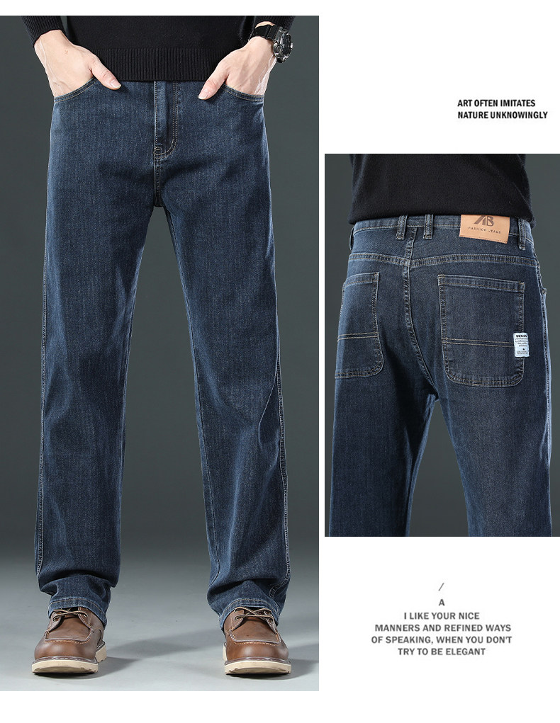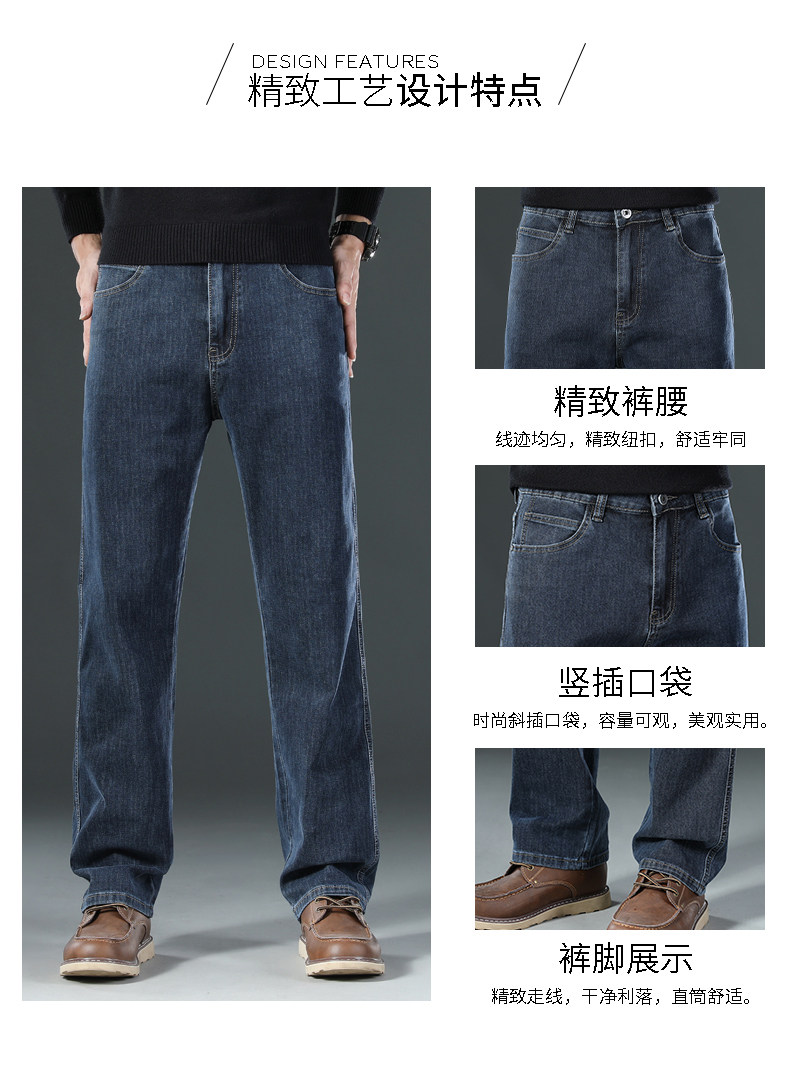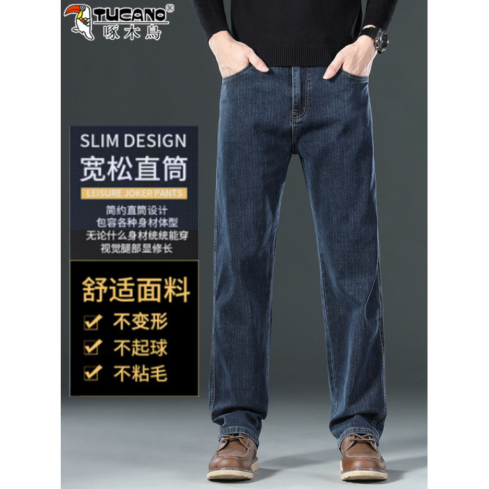 啄木鳥牛仔褲男士秋冬直筒彈力寬鬆2025新款濶腿商務加絨爸爸褲子