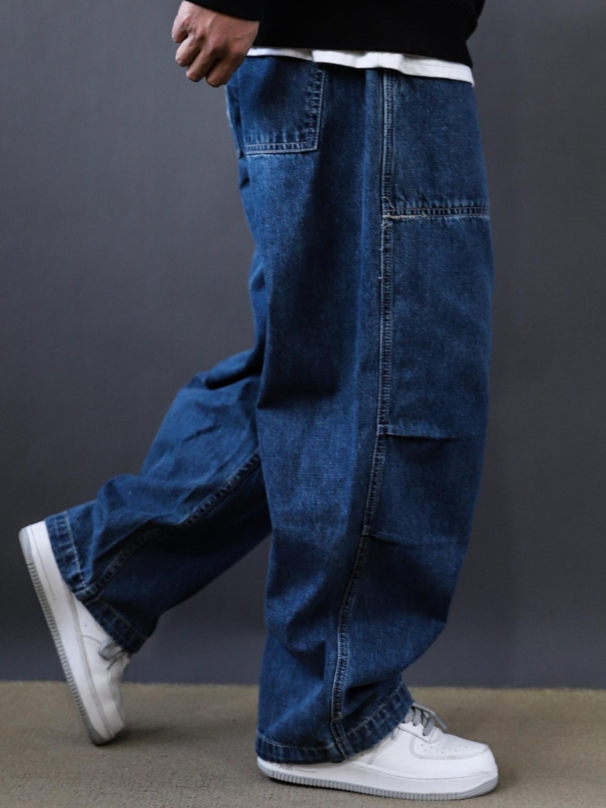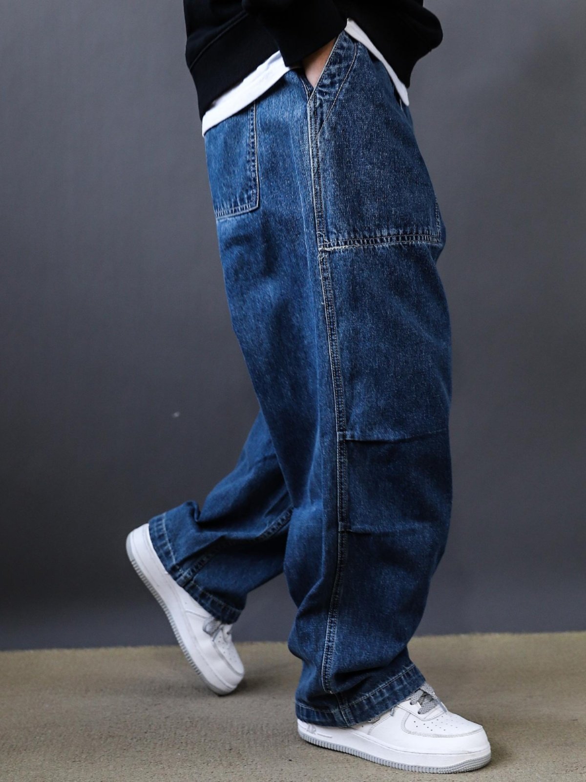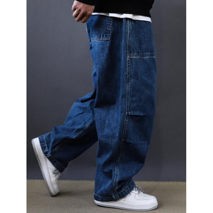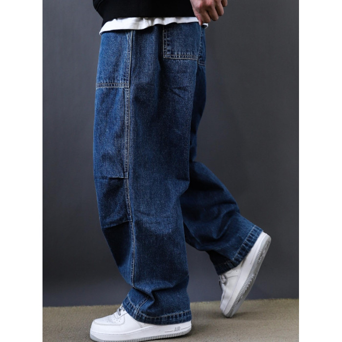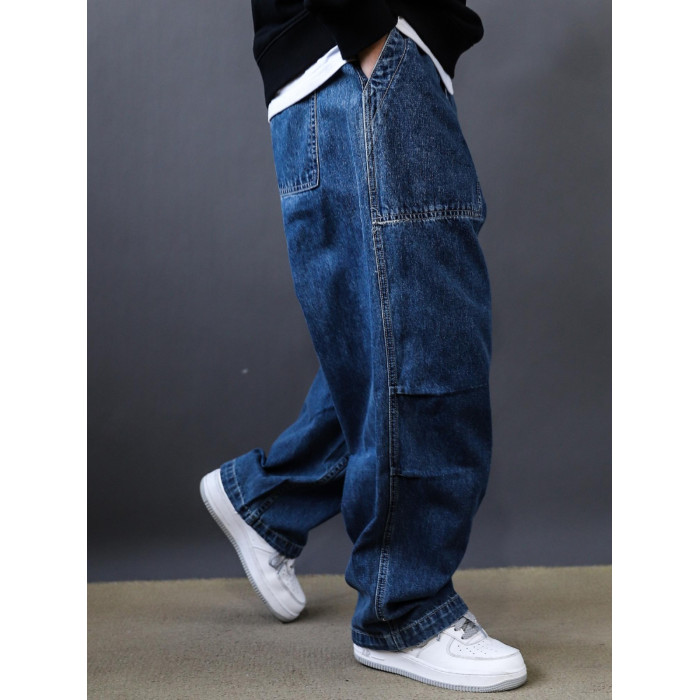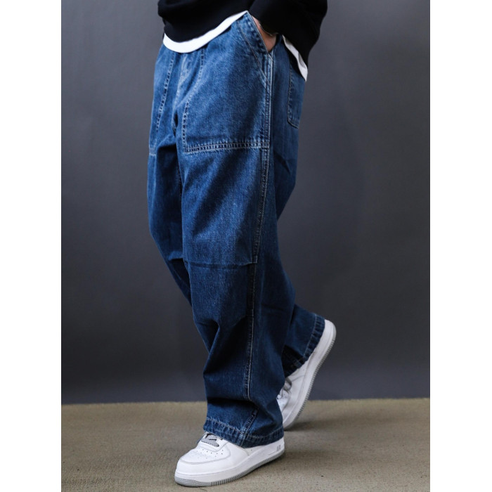 春秋新款美式復古水洗多口袋工裝牛仔褲男士潮牌寬鬆濶腿褲老爹褲