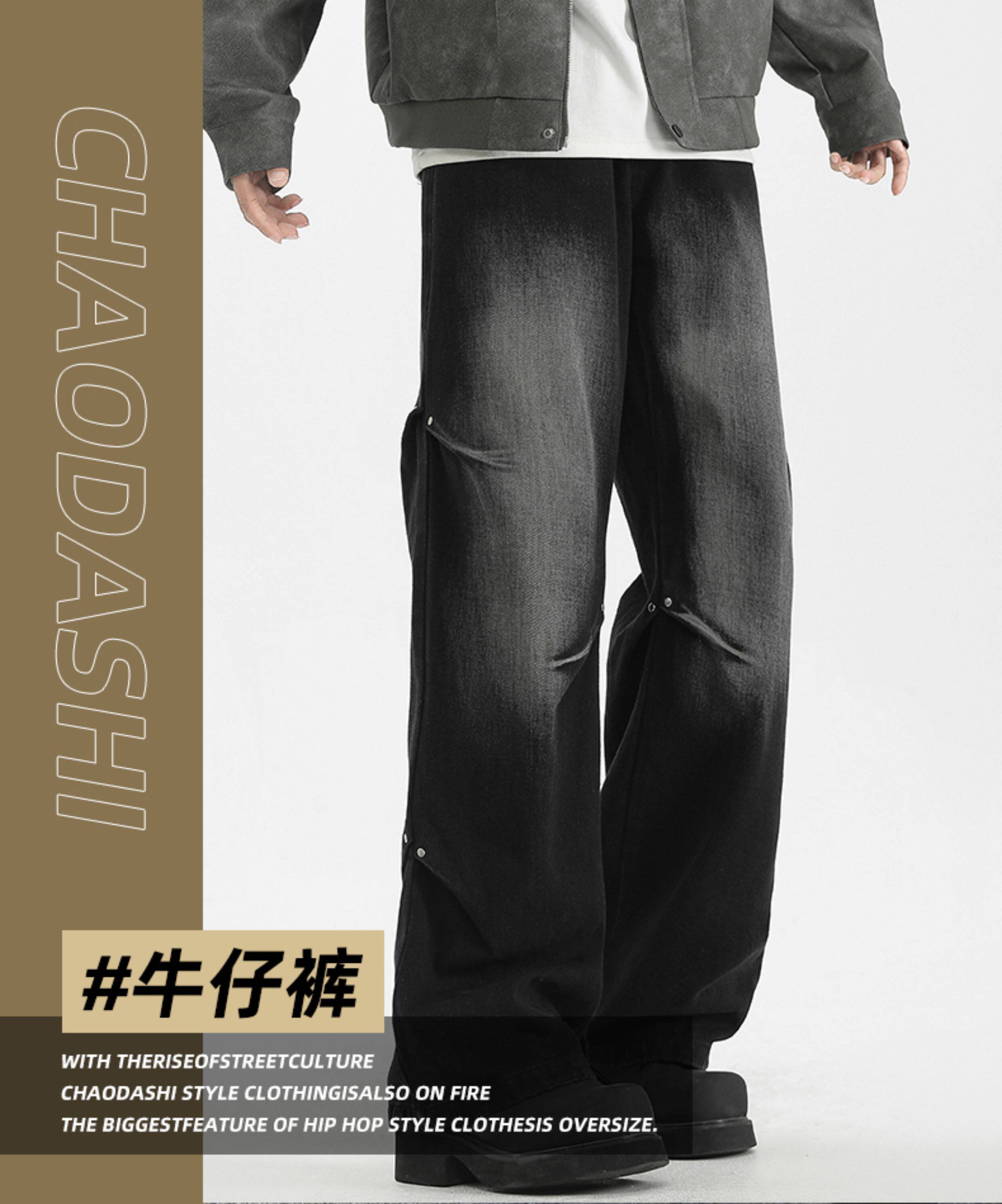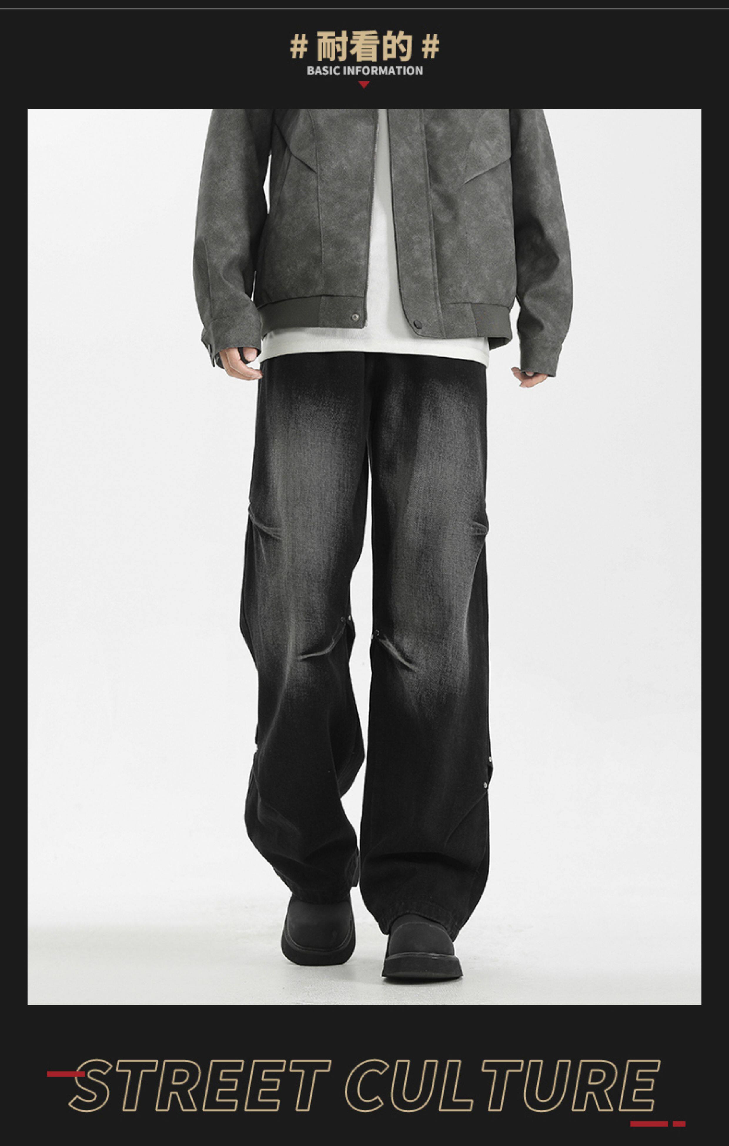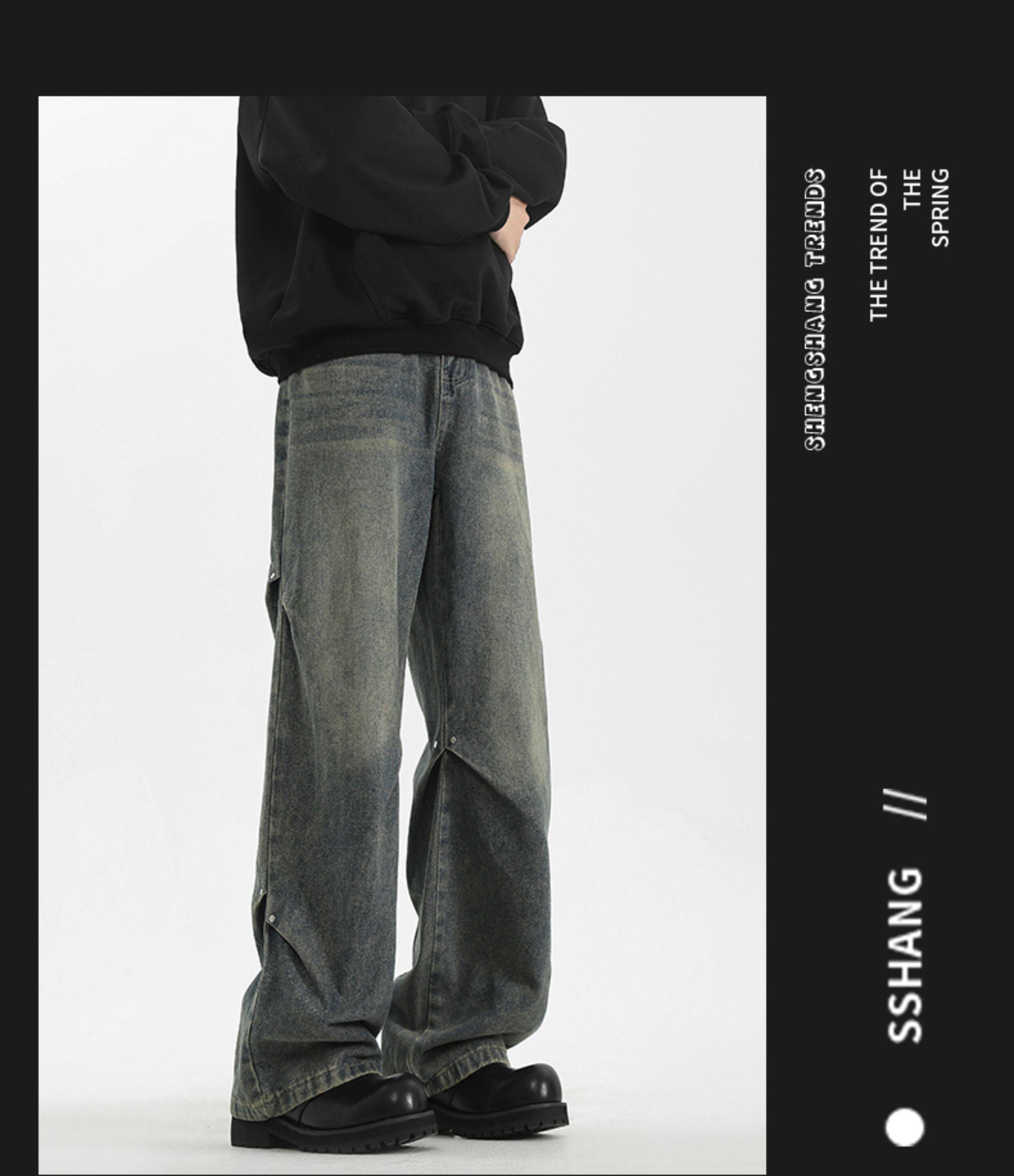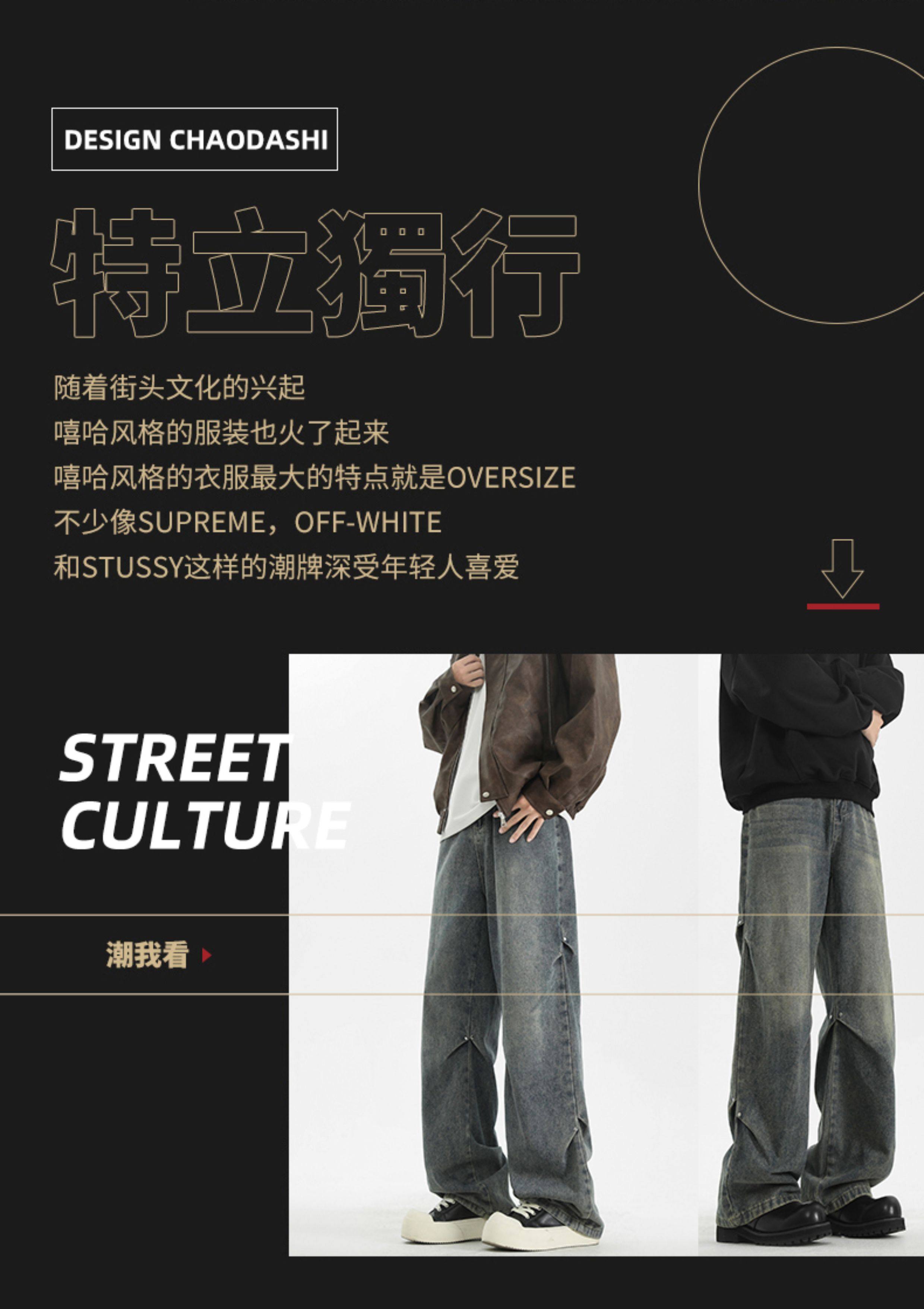 WASSUP美式復古直筒水洗高街牛仔褲男春秋季寬鬆休閒高級感長褲潮
