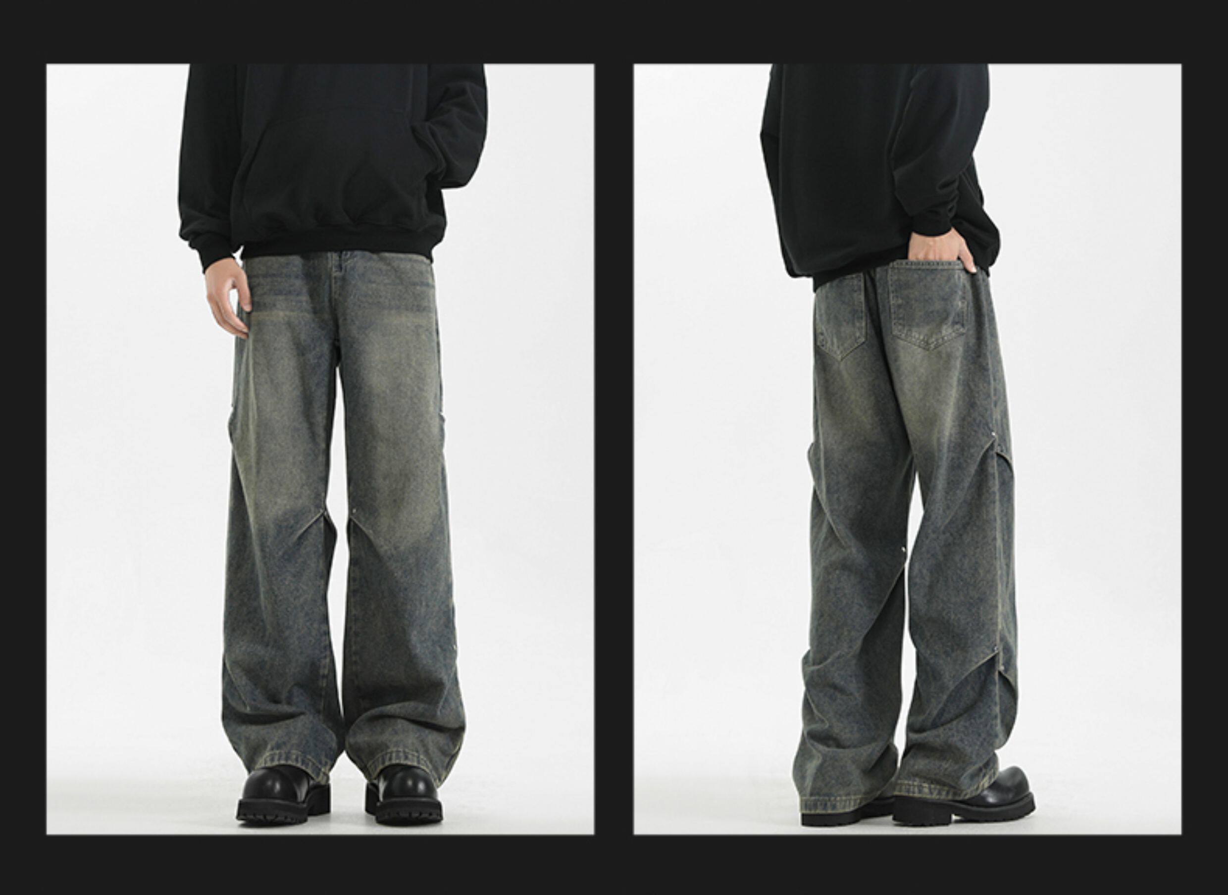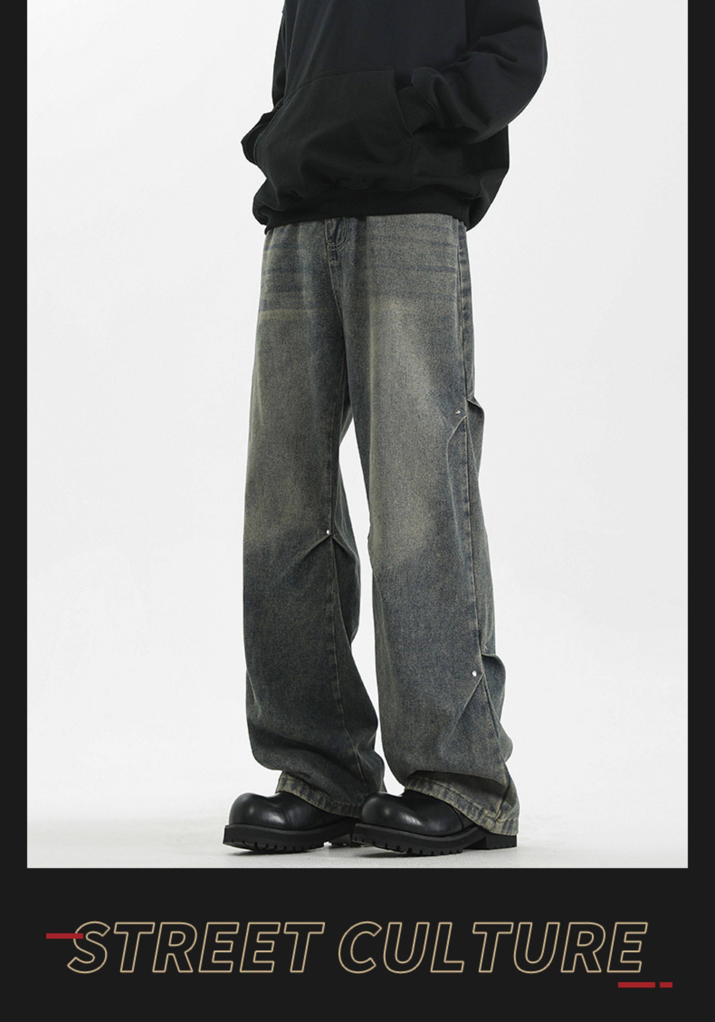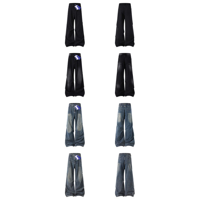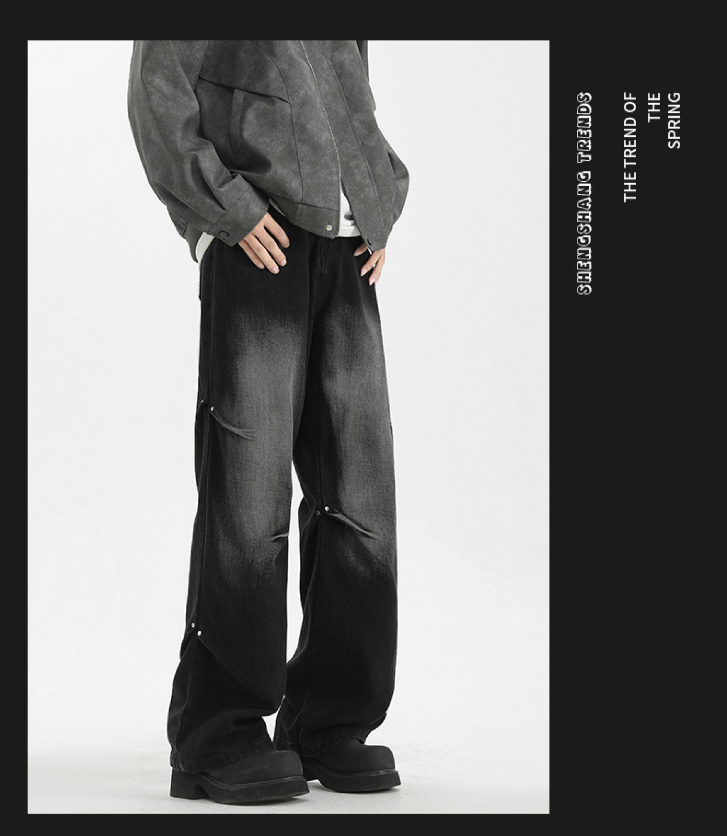 WASSUP美式復古直筒水洗高街牛仔褲男春秋季寬鬆休閒高級感長褲潮