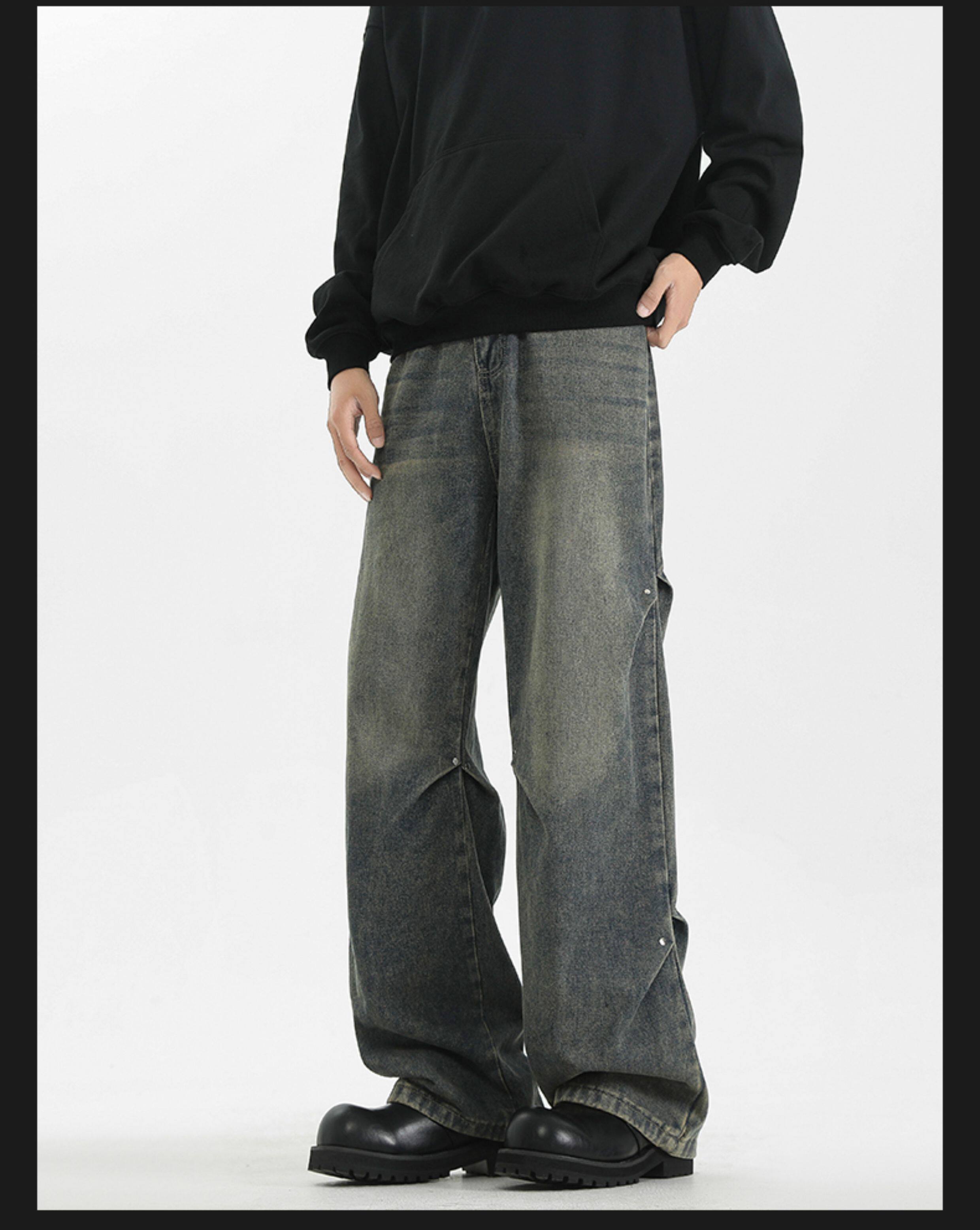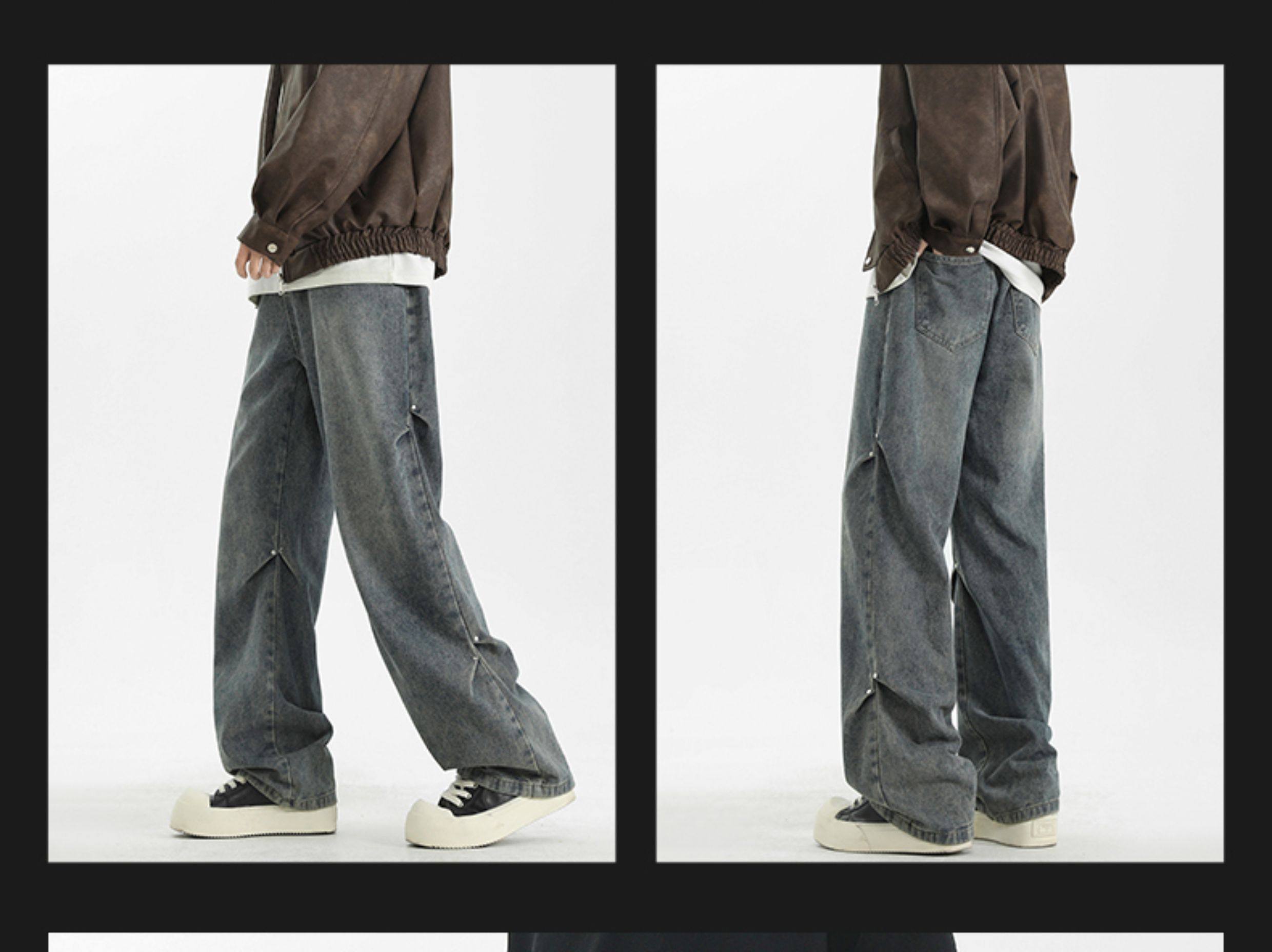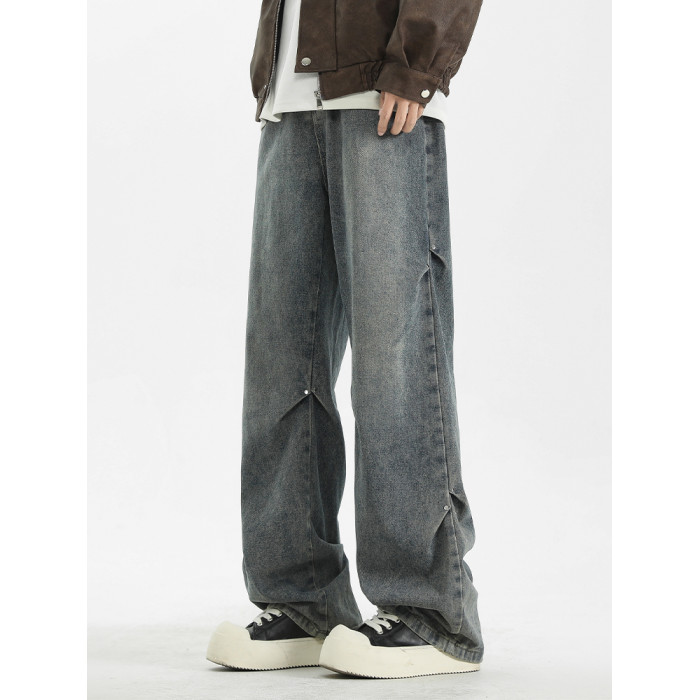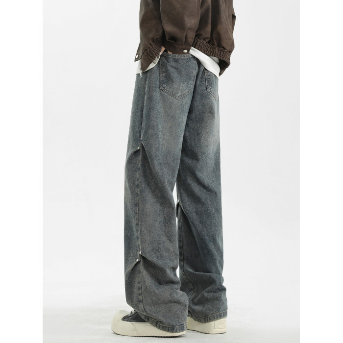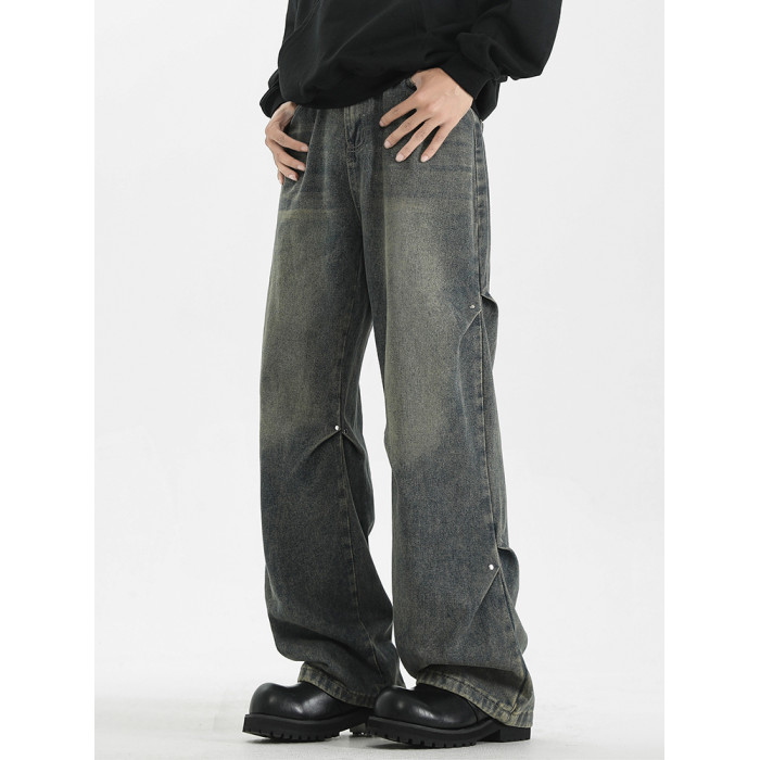 WASSUP美式復古直筒水洗高街牛仔褲男春秋季寬鬆休閒高級感長褲潮