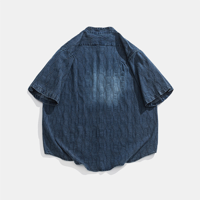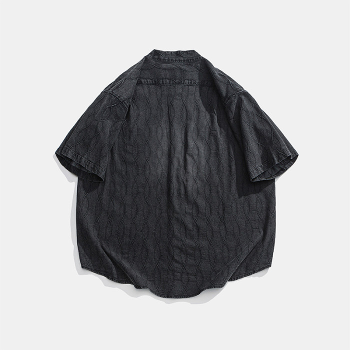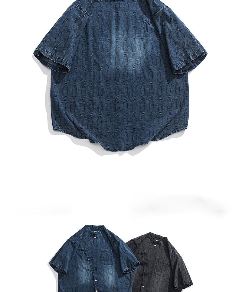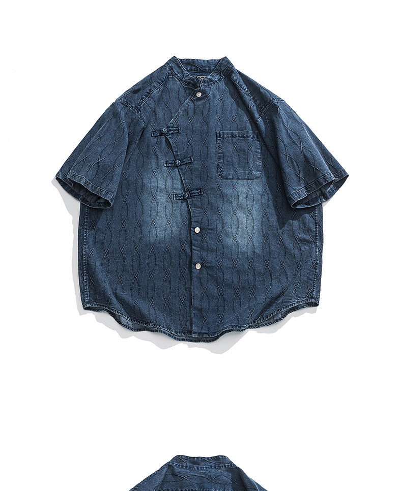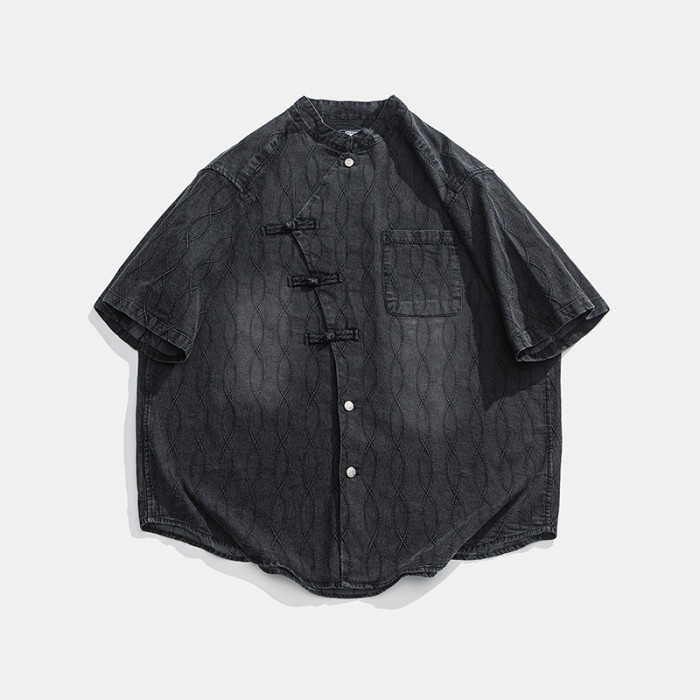 HAODIPAUL美式復古潮牌新中式斜釦設計休閒寬鬆百搭短袖襯衫男女