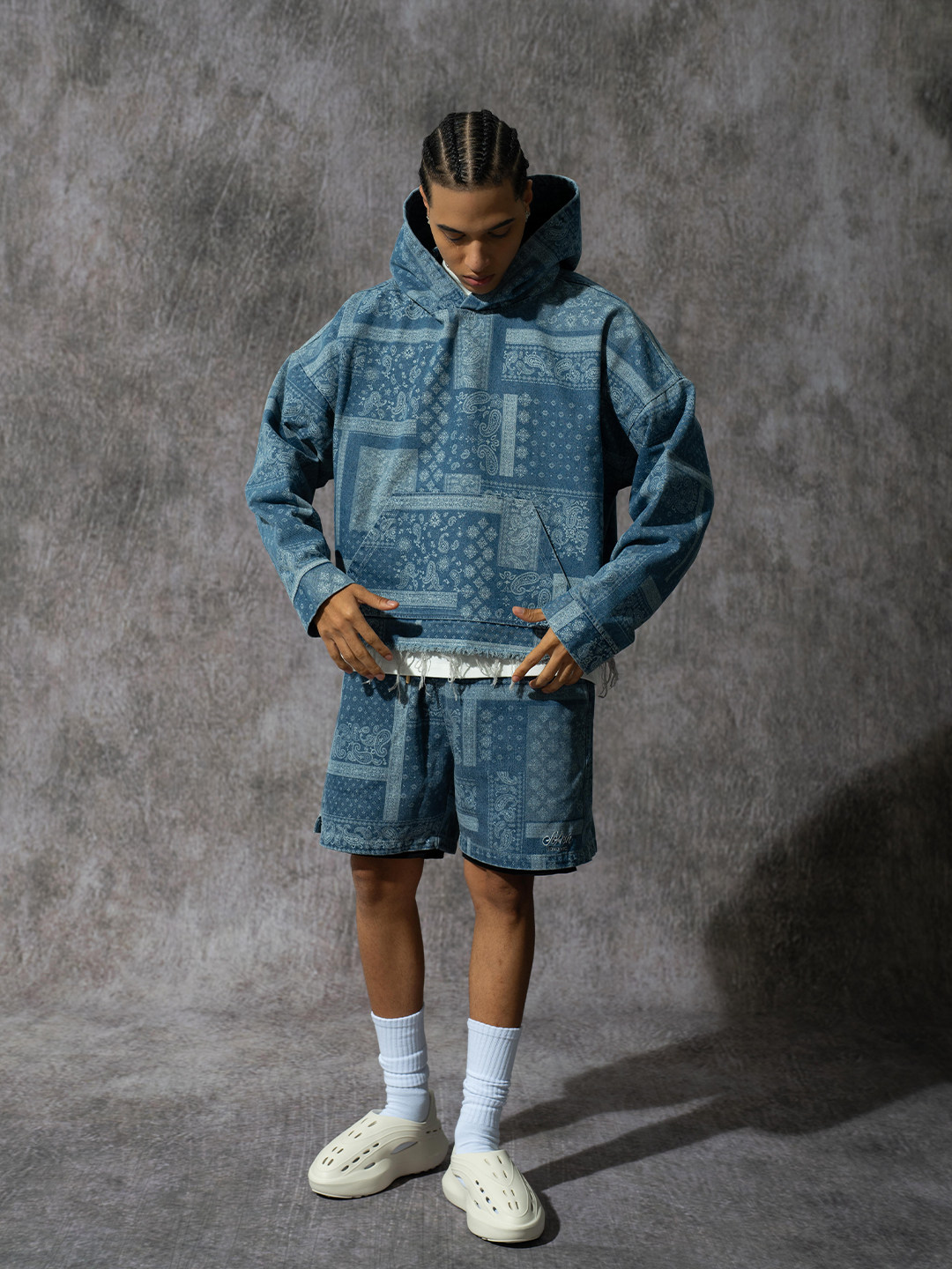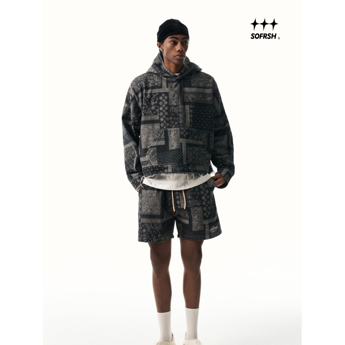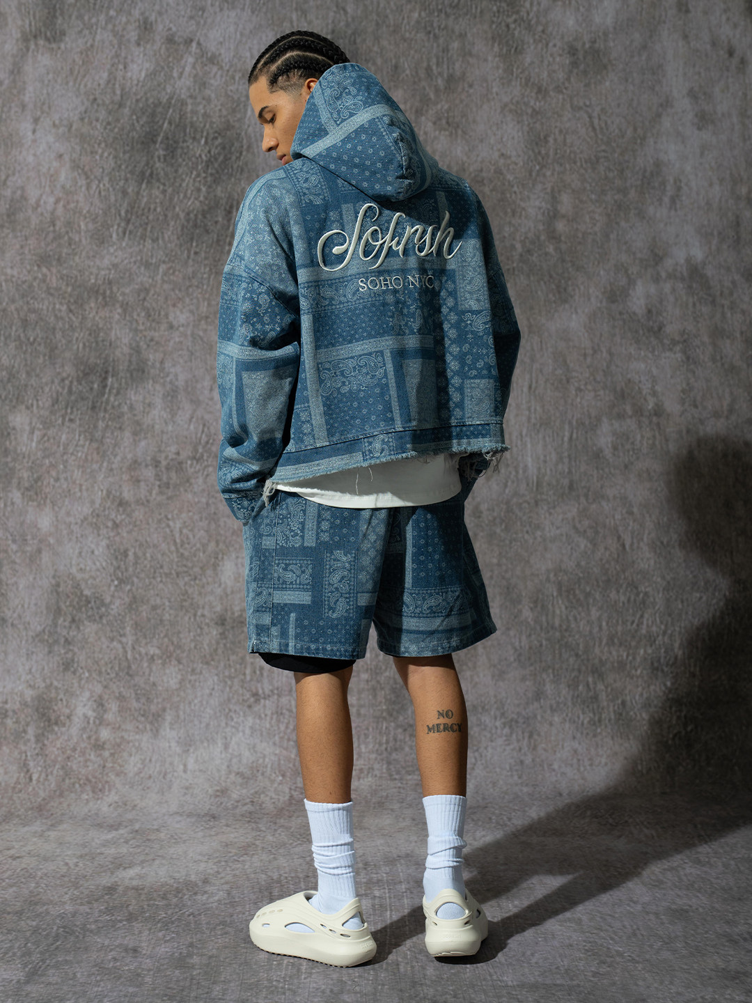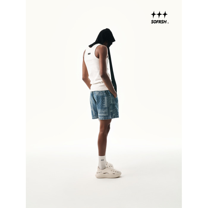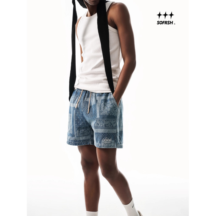 SOFRSH牛仔短褲男美式復古潮流水洗做舊五分褲寬鬆腰果花休閒褲