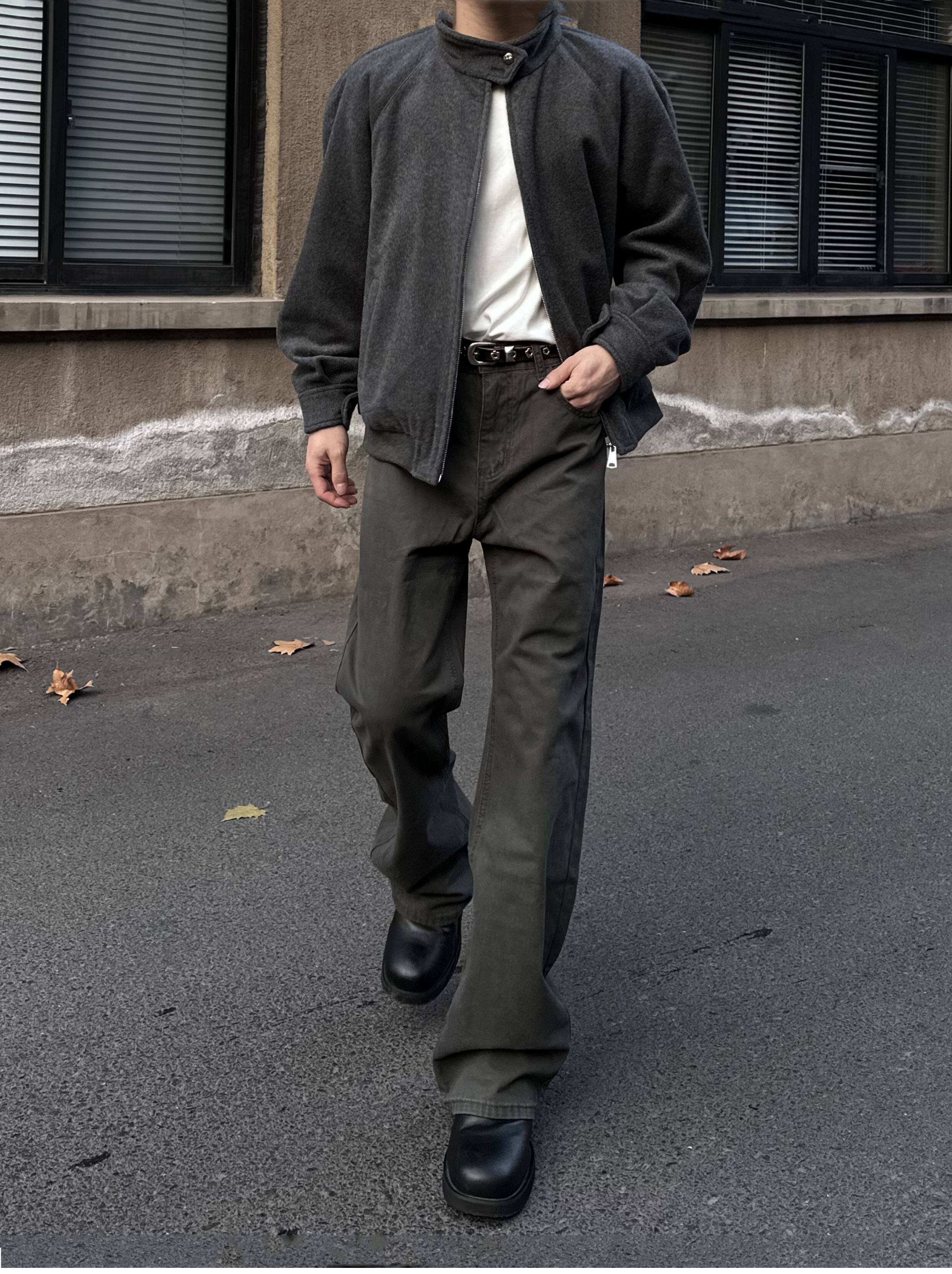 美式cleanfit復古灰綠色微喇牛仔褲直筒顯高顯瘦垂感vibe長褲男女