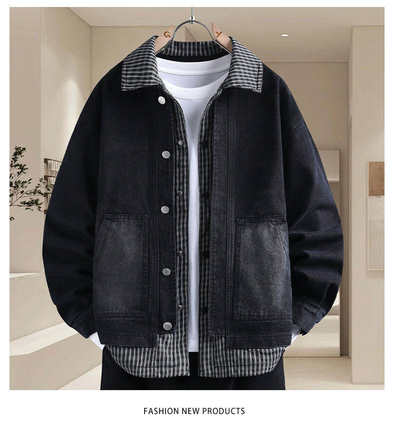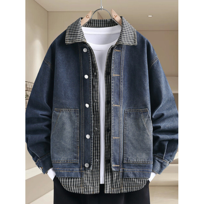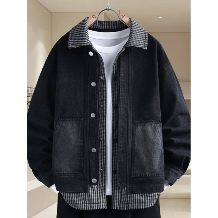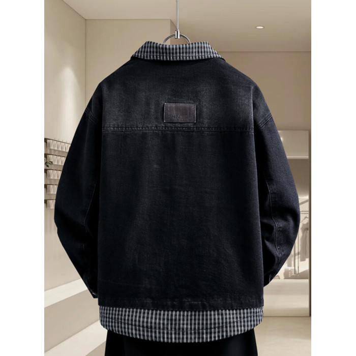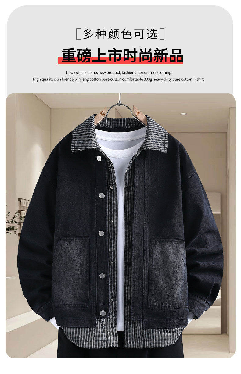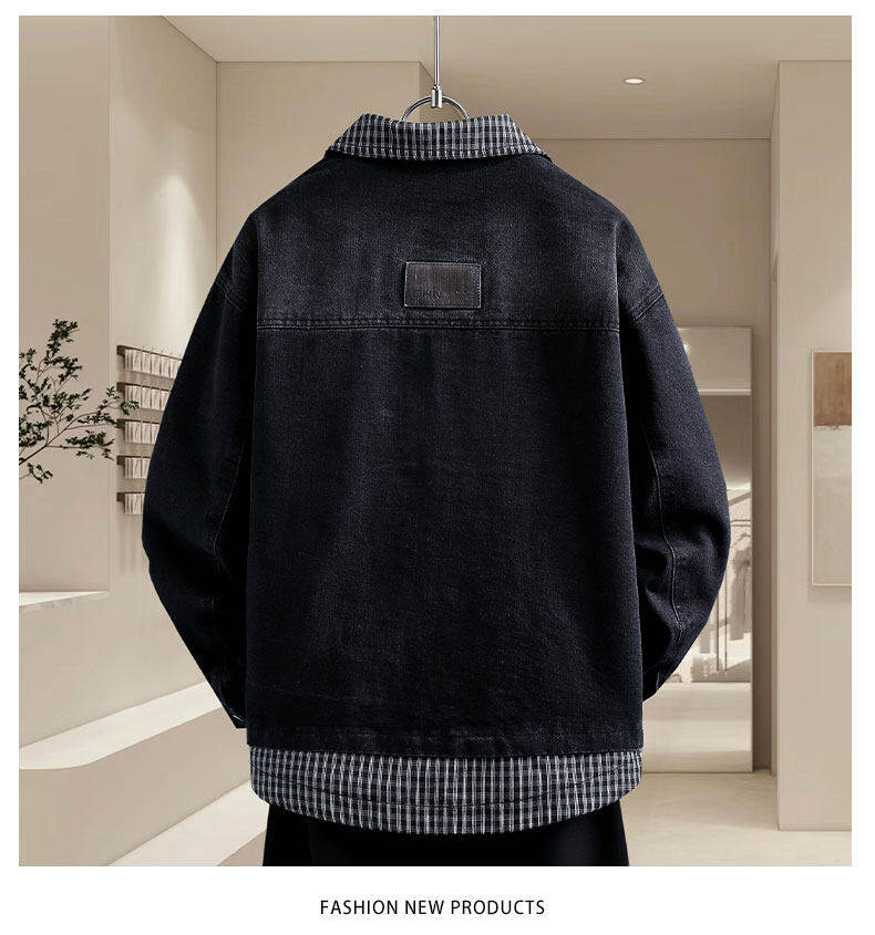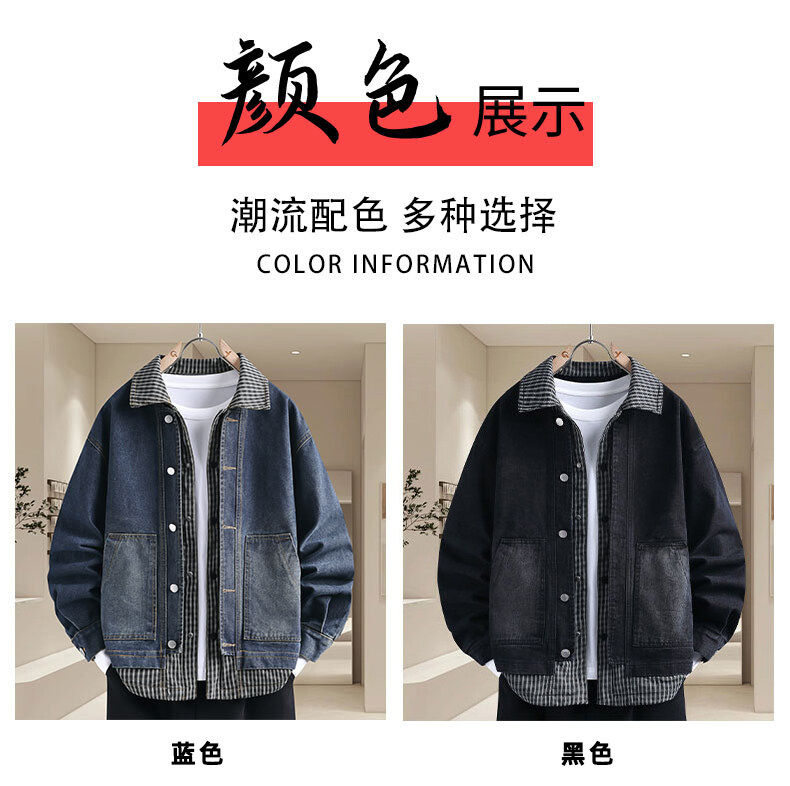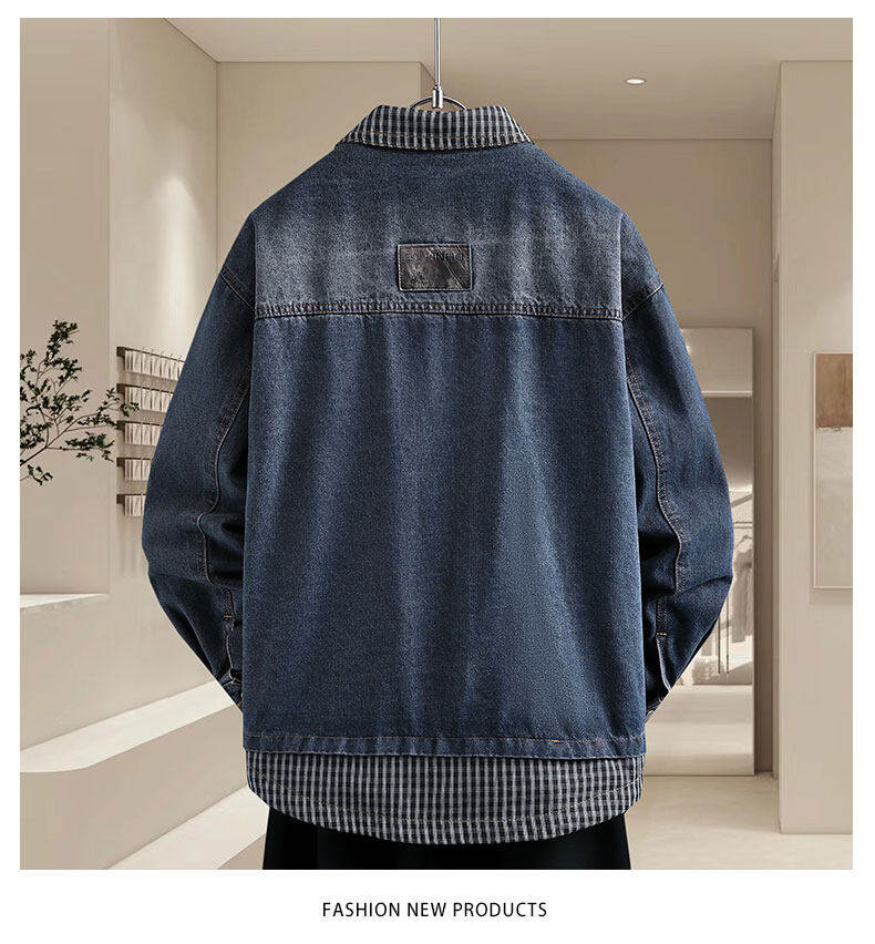 青少年假兩件牛仔衣服男外套春秋季韓版潮帥氣初高中學生休閒夾克