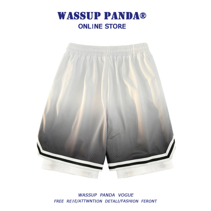 WASSUP PANDA漸變冰絲網眼籃球運動短褲男夏季薄款美式速乾五分褲